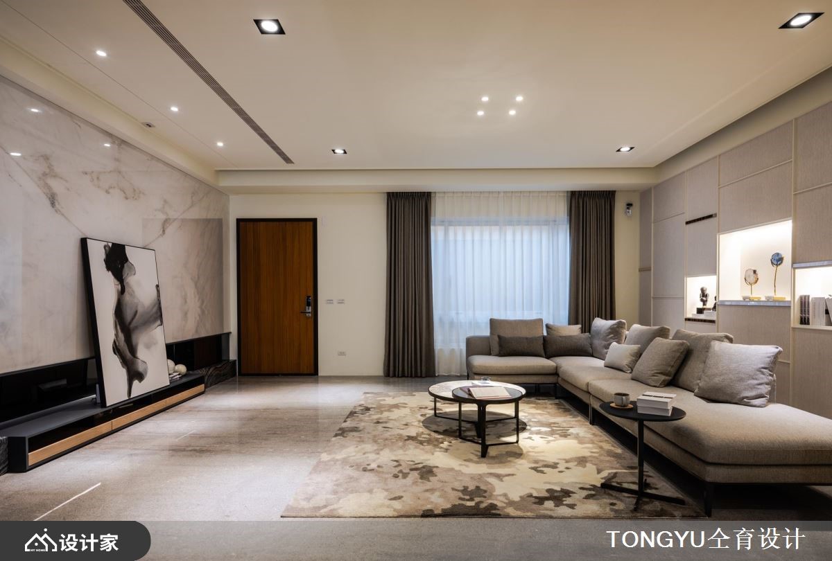 多功能石材电视墙、高规格定制全能居室!380 平米现代风别墅满足全家人心愿