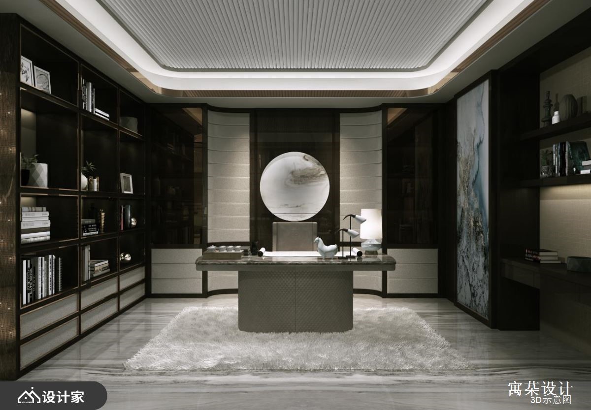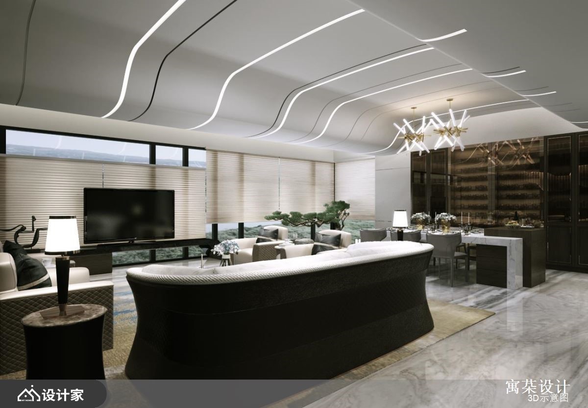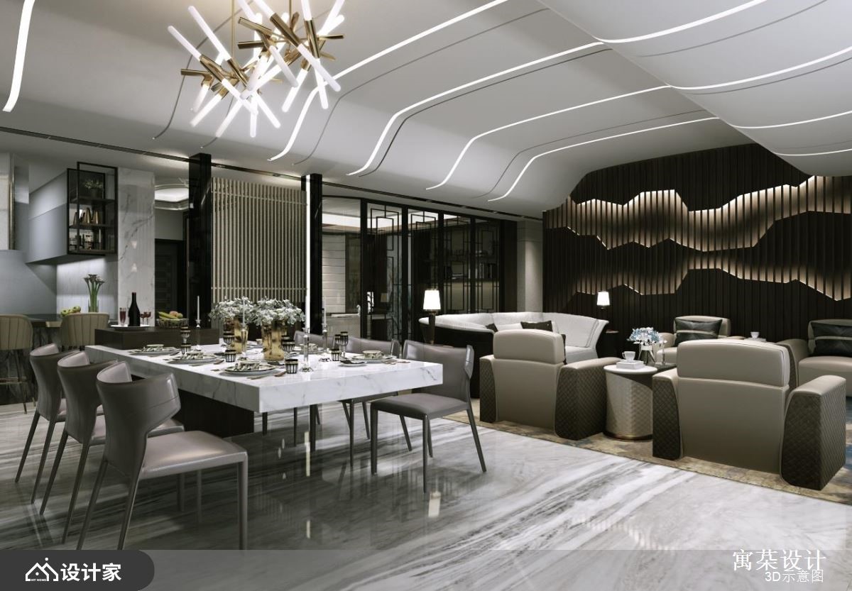 设计师援引大面落地窗之便,发挥好景观优势,使室内与户外串联,延揽丰富的自然之美,并针对天花既有的压迫大梁,运用独到美学手法加以修饰,再融入略显奢华的新东方风格,诠释顶级高尚的豪邸视野,快跟着小编一起来看看吧!玄关处,设计师藉由铁件格栅的规画,美化入口风景;厅区,则在天花板加入独树一帜的造型,引用流动溪水做为概念发想,呈现波动起伏的线条感,沙发墙面更在格栅与灯光的交织下,营造层迭山峦般的联想,以设计带出大自然的美好意象;餐厅配制订制餐桌结合中岛台面,诠释高雅有品味的餐叙氛围,并特意在一旁给予水池、松树造景,隐喻「寿比南山松不老,福如北海水长流」;书房,作为男主人的专属领域,选择用镂空铁件缔造开阔感,以工整对称的格局诠释新东方语汇,而除了置入收纳书柜之外,也刻意安排长形书桌平台,平时可做为陈列收藏的展示台面,往后则可挪作用孩子的阅读角落,打造天伦同乐的书香情境! 小编的最爱 私领域,符合每一位使用者的习惯与个性,像是在主卧室,即选以轻盈浅白为底,佐以立体黑线修饰,形构优雅调性,再搭以深色木地板铺叙,借着下重上轻的合宜比例之中,凝聚好眠气氛!