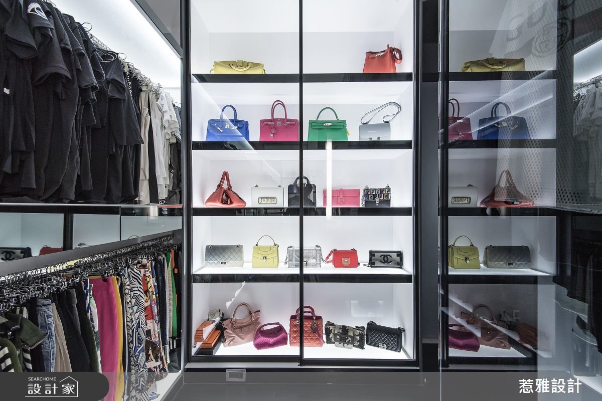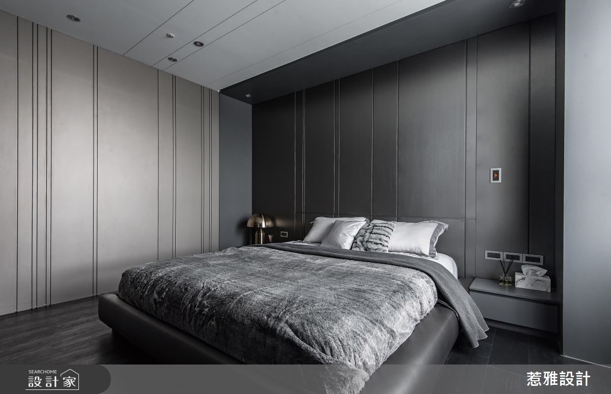 由于非常喜爱设计师夹层的作品,期待家中也能展现如此设计。整体空间以男性为主要的风格定调,调和灰阶与深色木纹,营造出内敛且安定的家屋气息。大面采光的优势,引入充沛的户外自然光,让空间不大且白色为基底的室内更显开阔。白色系瓷砖打造电视墙,半高墙体结合跃层的卧室领域,满足生活机能且让空间充分被利用。中岛摆设界定出餐厨空间,满足平时屋主下班或假日烹调的需求,以及邀请三五好友到家中齐聚一堂的乐趣;中岛上方搭配悬空感的简约吊柜设计,柜体下方以玻璃隔间,不仅强化收纳同时也兼具美学展示。冰箱嵌入壁面的手法,让空间达到宽敞,且形塑流畅的行走动线,而金属质感的冰箱替简约的空间增添一抹时尚质感,擦亮视觉新意。小編的最愛延着踏阶来到居室,透过玻璃拉门与墙面界定内外领域,穿透的特性让公领域的光源也能进入,提高空间明亮度;床头背板以深色木纹妆点,随着嵌灯映照,调和静谧、安定的休憩环境。