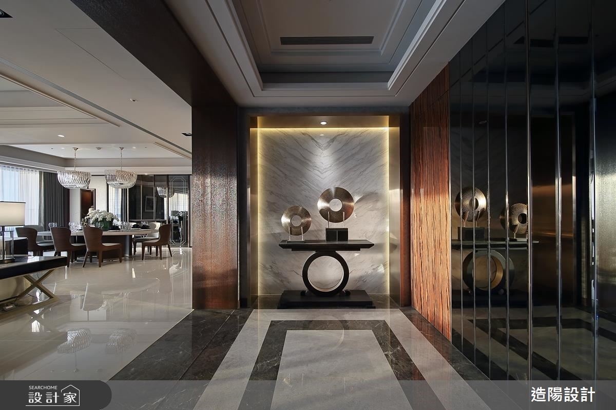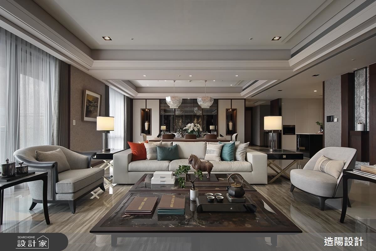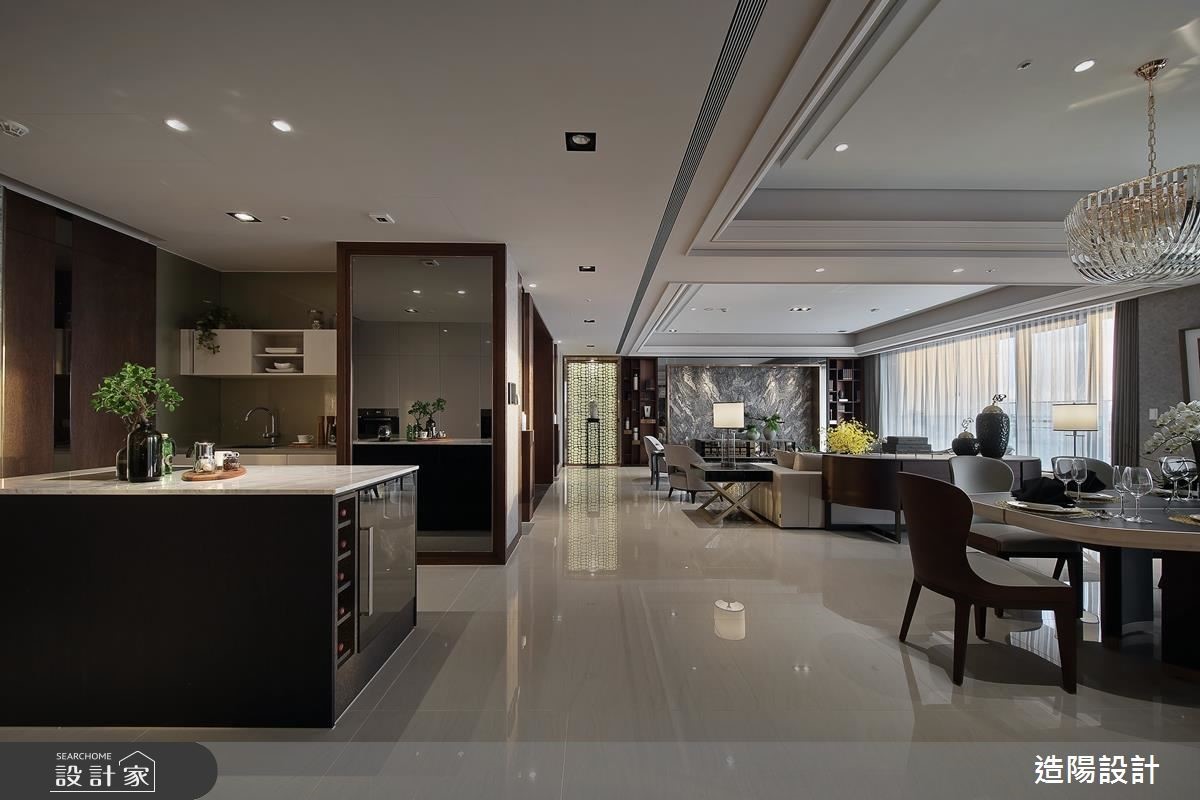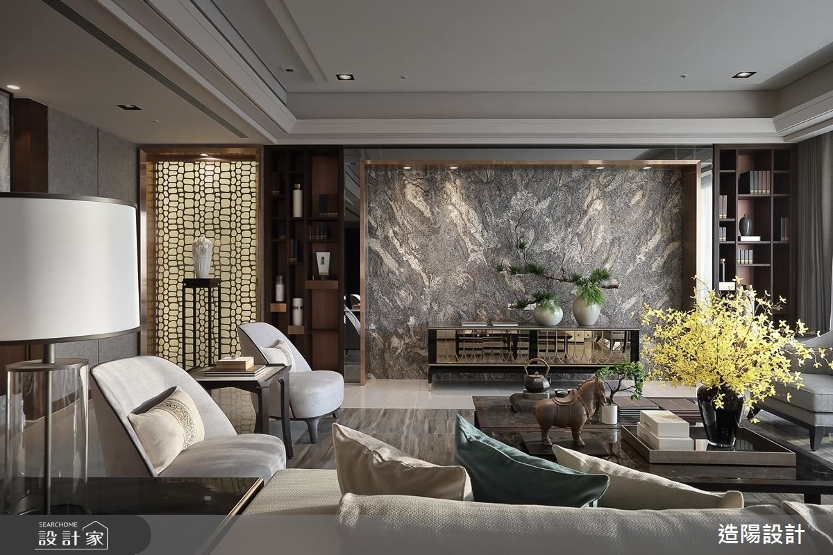 设计师以新东方风为底蕴,刻画出「新东方时尚古典」的室内主轴,以绿智能宅为主体,辅以东方线条于建筑外,内装部分则着重流线,让惊鸿山水间的磅礡与悠远流泄于室内,显尽豪邸气魄,快跟着小编一起来看看吧!玄关领域,于端景主墙加入银狐大理斜纹对花,辗转入内,则可见黄金伊瓜苏石材铺陈的客厅主墙,并以卡拉拉石打造厨房中岛台面,透过经典的天然用材,表现豪邸的大器与细致,呼应山水墨色的构线,搭配着新中式氛围的家具软件,尽显晶亮的奢华感,再加以利落精准的动线,营造充满韵律层次的空间节奏;书房内,采用拓彩岩打造深调主墙,以渲染般的纹理形构油彩堆栈的质感,并运用大面积深胡桃木材质,沉稳中不失张力,搭配雅作画龙点睛,带出深厚的文化底蕴;寝卧内,则给予充裕的生活机能,并透过壁纸营造花鸟语汇,缔造形象栩栩如生、灵动自然的休憩氛围! 小编的最爱 设计师以人为本体,考虑客户生活的习性,将每位业主专属的生活经验融入空间中,给予适当尺度与合宜的动线规划,利用场景的穿透迭层、创造出大户型的广度与深度!