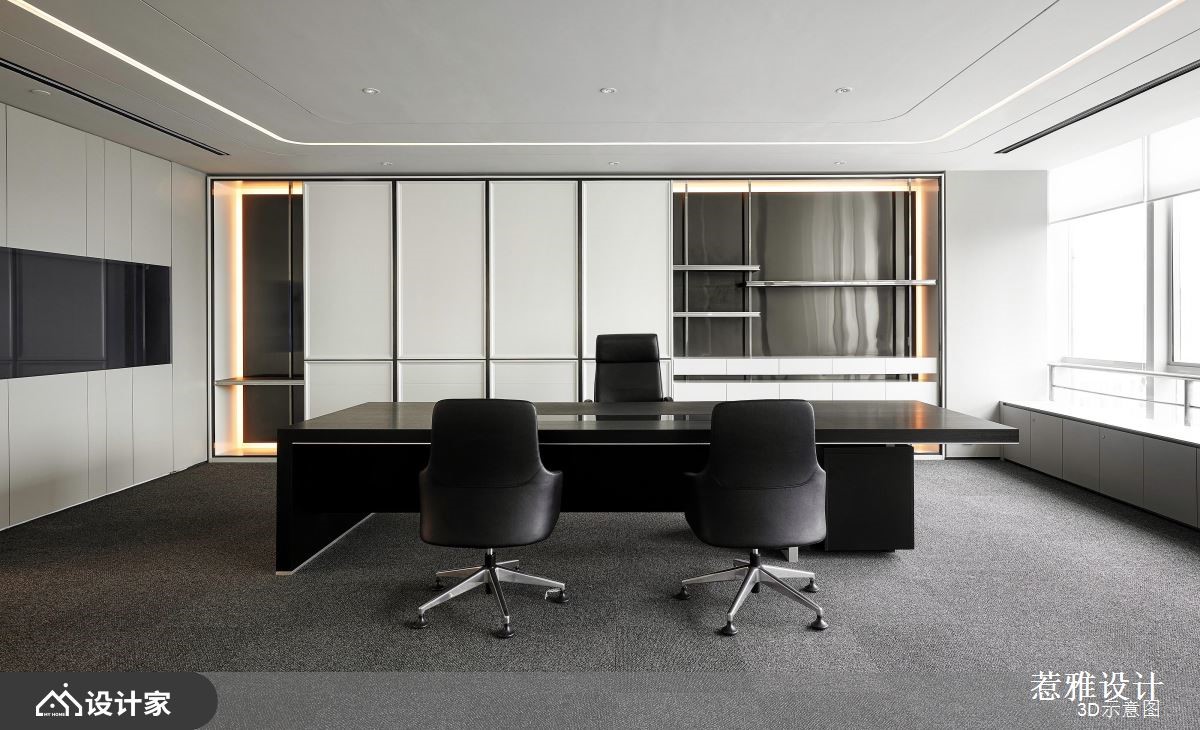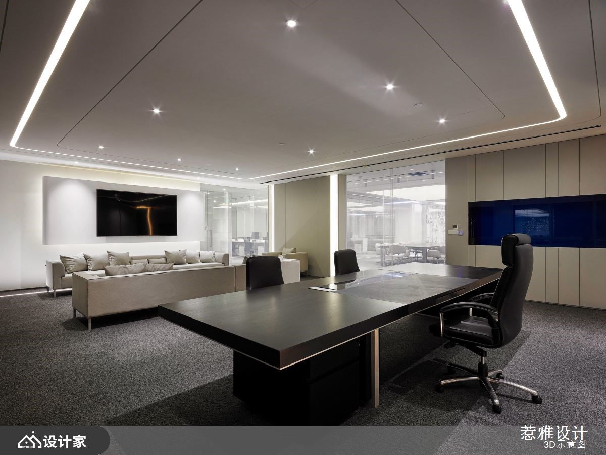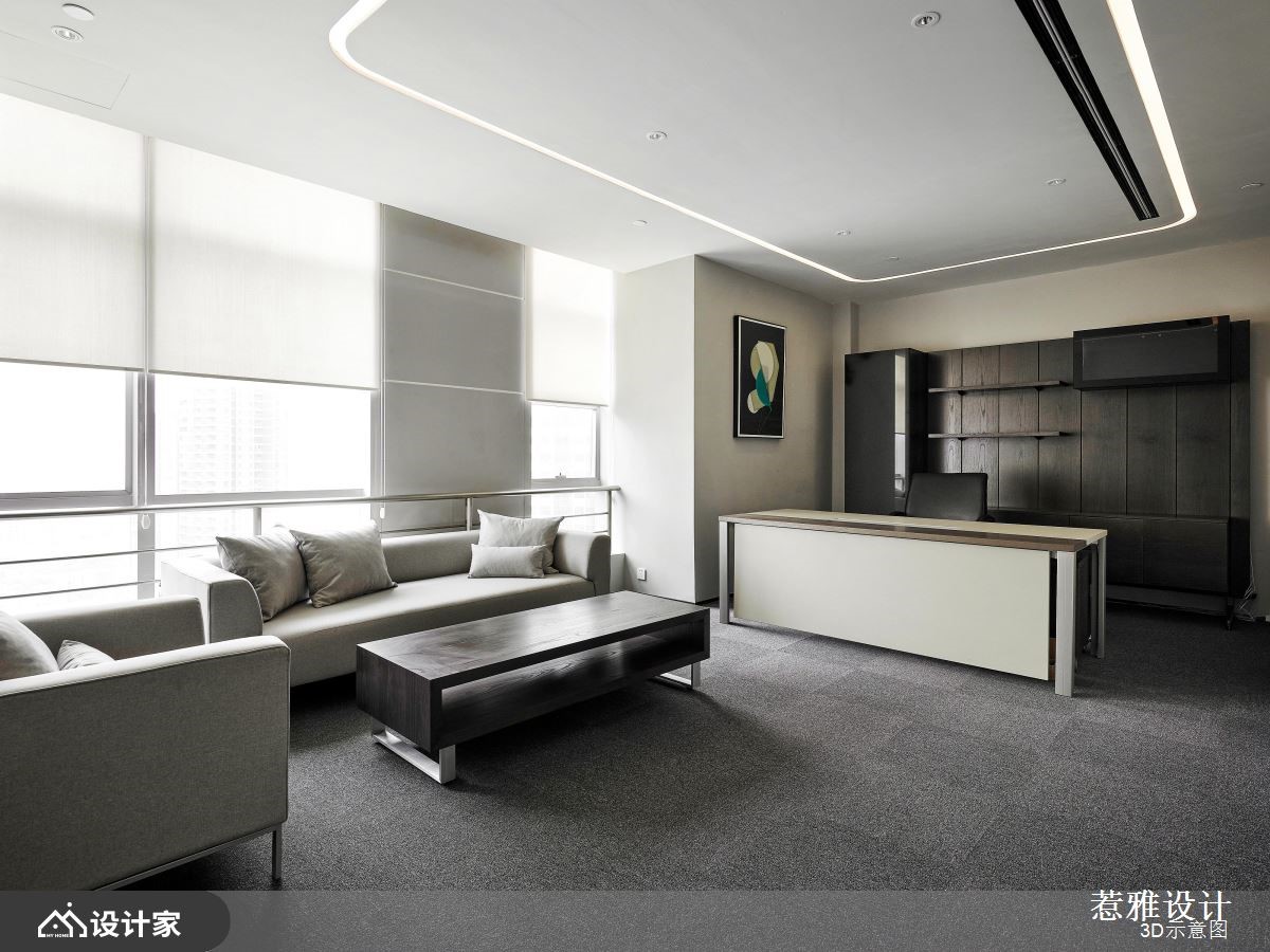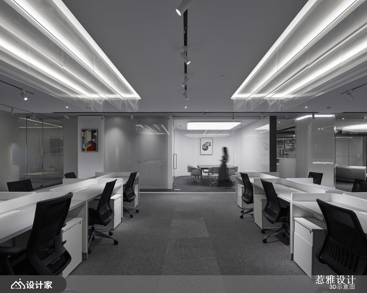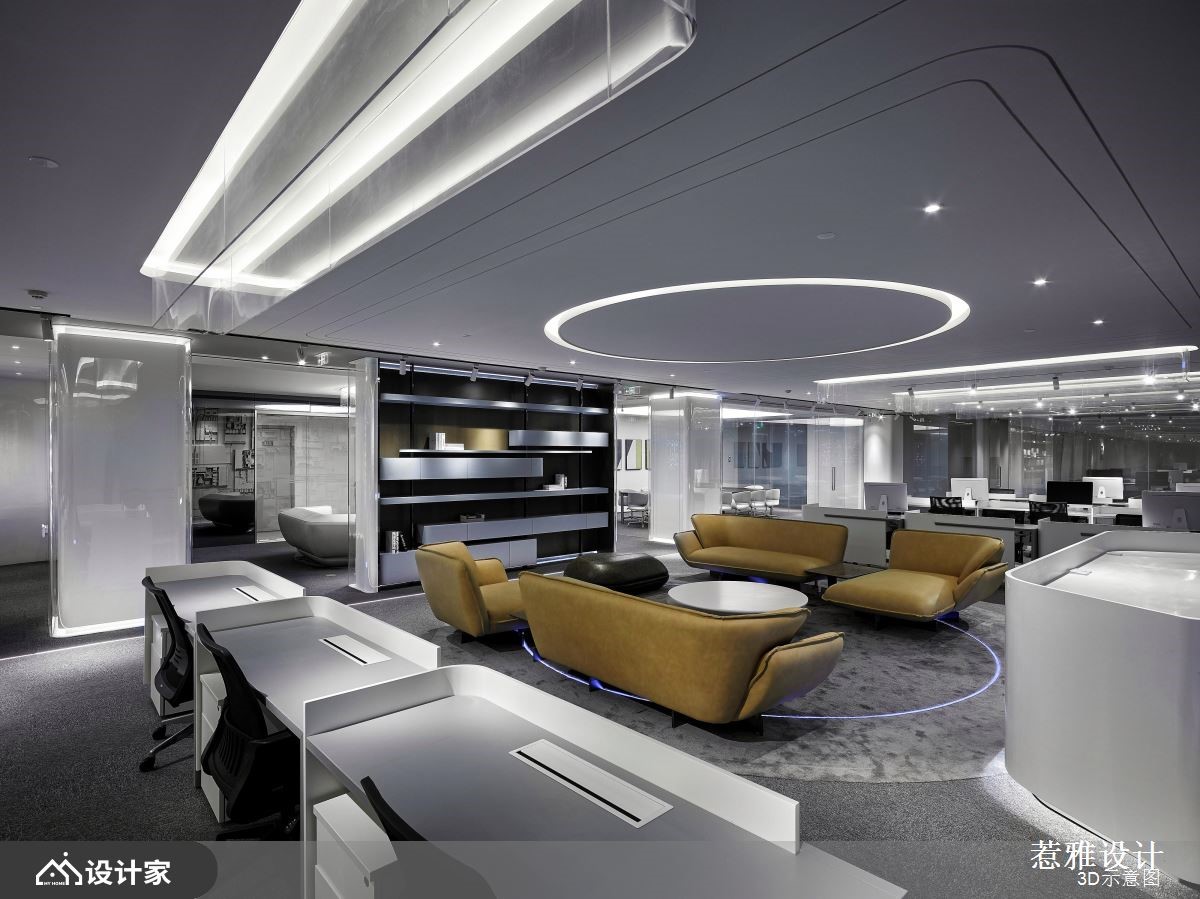 设计师针对挑高区域做出重点处理,运用软膜天花的设计巧思,营造磅礡大器的视觉感受,同时加入纯净白作为底调,让空间整体有如无杂质的素雅画布,快跟着小编一起来看看吧!设计师考虑到天花高度以及设备管线,在兼顾结构完整的同时,也打造独特的空间造型,刻意简化繁复元素的铺陈,维持素净与纯粹感,并加入圆形导角或弧形流线,修饰视觉可见的主要量体,搭配线型光芒的蔓延,串联空间的每一个角落;而入口处的主玄关,则是聚焦亮点所在,设置了一道兼具颓废与前卫感的立面,透过机箱体的堆栈,用以揭示 IT行业公司的发展进程,让电路板自由裸露,如同装置艺术般地展示在访客眼前;茶水间则呈开放格局,配置置中的弧型吧台,饰以彩色渐层电器柜、并搭配精品沙发家具,让休憩领域有如大器客厅般充满气韵!小编的最爱 空间内的白色柱体,于外层覆盖清透玻璃,兼具素净质地且保有通透性,成为颇具巧思的鲜明焦点!