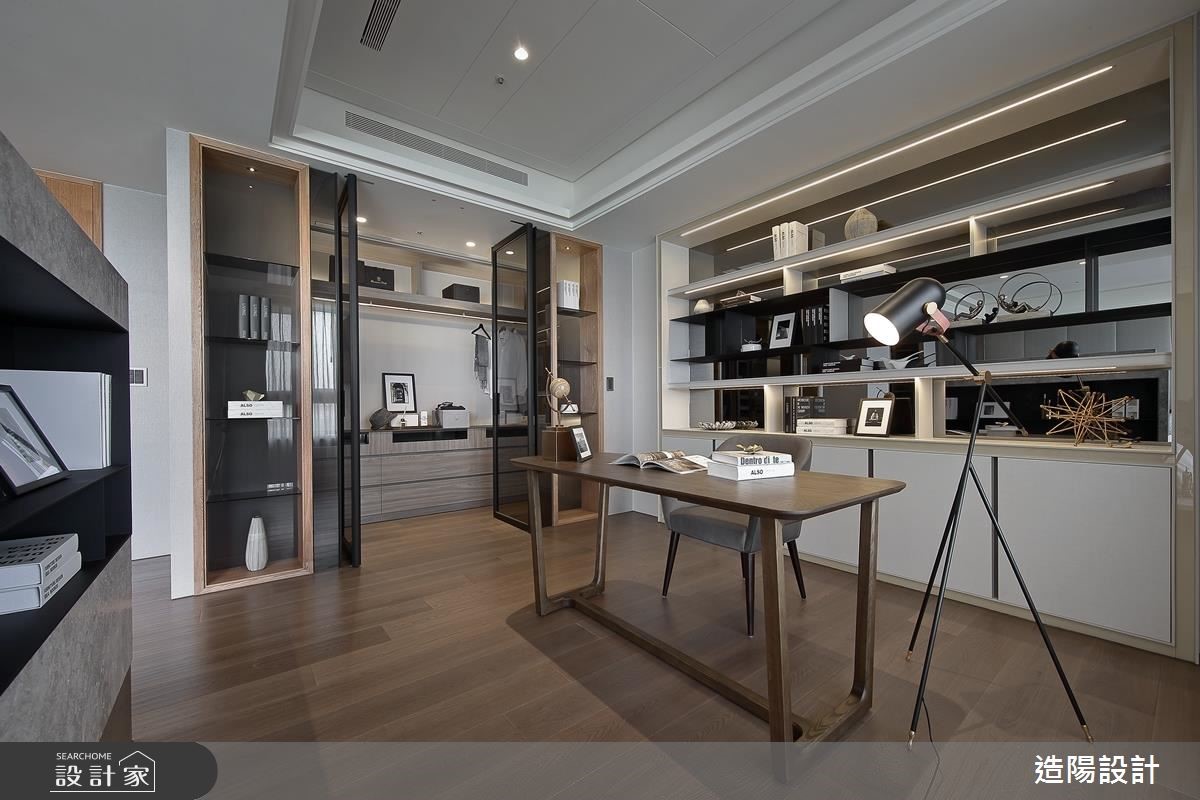 现代风大户型,设计师保留大器的空间感,使用利落简洁的线条铺陈,搭配流畅的动线安排,在细腻的刻划之中,表现出富有内涵的人文豪邸视野,快跟着小编一起来看看吧!客厅区域,规划大面延展的石材电视墙,彰显深刻的天然纹理,形构整体的主视觉焦点,并于其他地方穿插镜面、不锈钢铁件等透亮建材,将人文与现代质感完美相融,色彩分布上,选以白、灰做为主轴,搭配驼色、古巴沙色等暖色调节,形成平衡稳重的风情,在造形上,则运用几何造型量体堆栈,显现虚实的交错转换,变化空间的丰富性;动线划分方面,则将客餐厅、轻食区区划开来,保有各自的空间感与机能性,餐厅更加入复合式餐桌合并酒柜与电陶炉机能,并纳进美好窗景,提供多样化的用餐乐趣!小编的最爱 主卧内,使用大地色系为主题,且打造专属书房与更衣室,在多进式的机能配置之下,呈现五星酒店般的使用情境!