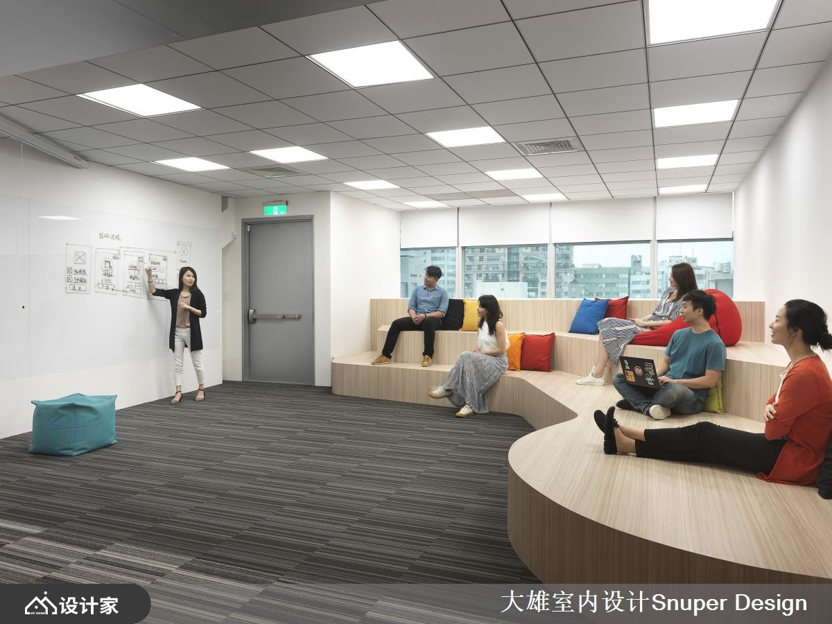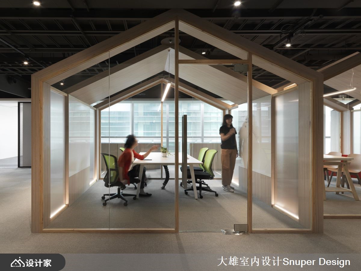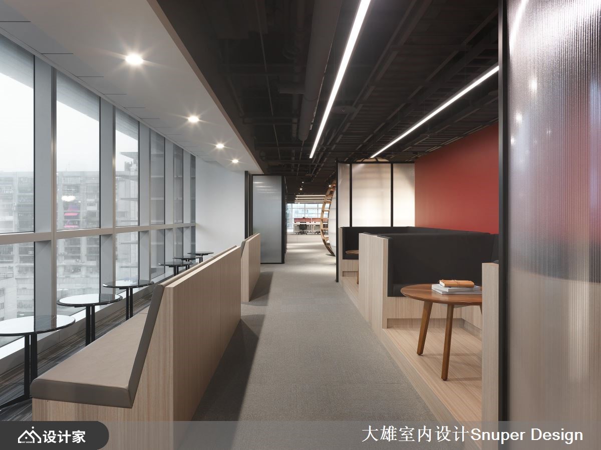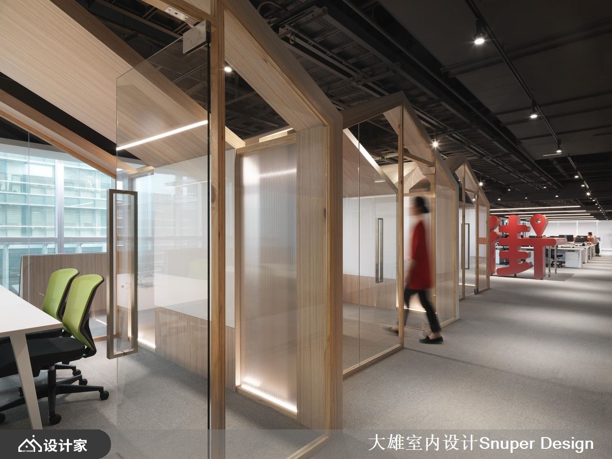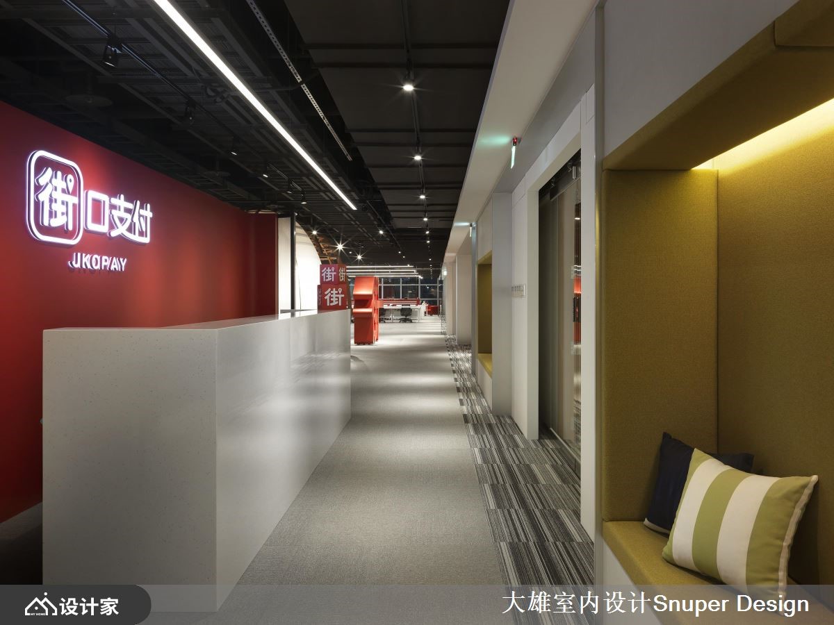 好的写字楼设计,才能让创意源源不绝!这间1742平米的空间是新创公司街口支付的写字楼,设计师将胡同街道的概念融进室内,具体呈现红色Logo的热情活力。【立体Logo,成为鲜明的形象吧台】户外光线透过玻璃进入长形空间中,使人感受宽敞明亮的氛围,而大型立体的「街」bar设计,除了彰显公司的内涵以外,也能变成员工休息沉思的吧台区域。柜台以鲜明的红色,定义品牌形象,前方设置芥末黄的等候飘窗,后方则是宛如咖啡厅的座椅区块,可以在此做进一步的接待工作。贯彻胡同街道的意象,设计师运用小木屋的设计理念,规划出一间间的小型会议空间,就像是小小村落般聚集在一起。蛋屋则是象征灵感的诞生,员工可以在里面阅读、放空或交谈,激发出不一样的创意火花。而大会议室则是以罗马剧场的形式包装,打破呆板的空间框架,可以容纳更多人共同讨论交流。小编的最爱用餐环境配置长形吧台与跳色的单椅,让人可以在工作忙碌到一个阶段,轻松地坐下来欣赏窗外美景,享受盘中的美食。