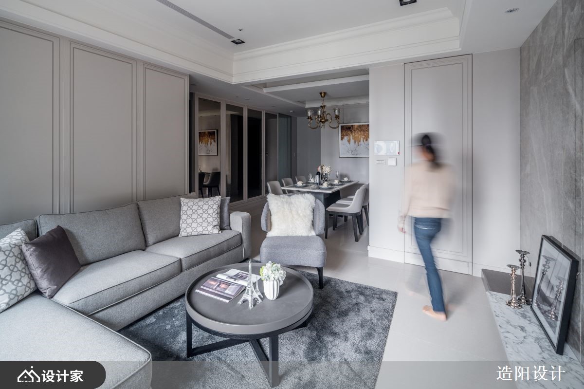 美式风新成屋以穿透式材质保有开阔,点缀大理石、镜面和线版吐露低调奢华的优雅气息