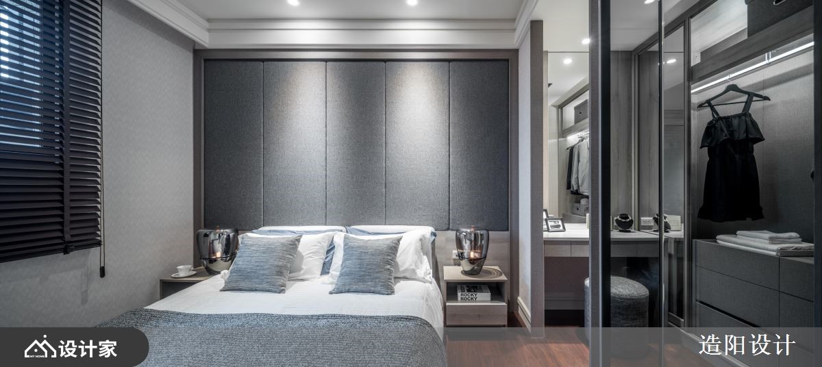 设计师透过简洁的现代美式风修饰,以细致线板柔化空间表情,并巧置储藏室、更衣间等取代零散柜体,透过美形收纳与风格美学,打造久居不厌的优质住宅,快跟着小编一起来看看吧!空间整体以浅色铺底,营造明亮干净的调性,搭配茶镜门片的妆点,使场域里外相互辉映,打开了雍雅透亮的生活风景,而简单却富有层次的线板,则蔓延于天花与立面,适度添注华丽时尚感,柔化空间刚硬感;餐厅立面刻意留出小格状的展示柜空间,藉此陈列装饰品,把墙面刻画得更为立体,并规划专属储藏室取代柜体,让生活杂物、大件物品可集中收放,避免零碎柜体的陈列;主卧,配置玻璃屏风隔断划分更衣间、睡眠区,并让窗光恣意流动,营造室内敞亮度,床头则藉由线板刻划完美比例,展现对称端庄之美!小编的最爱 另一间卧室采以衣柜串联层架、书桌和卧榻,再配上灯光烘托,以一体成形的机能规划,打造温馨实用的房间视野!