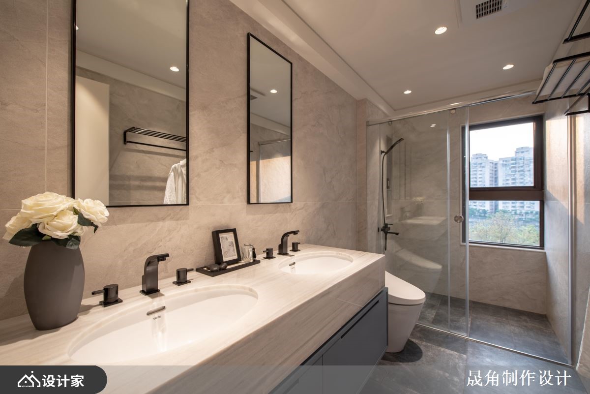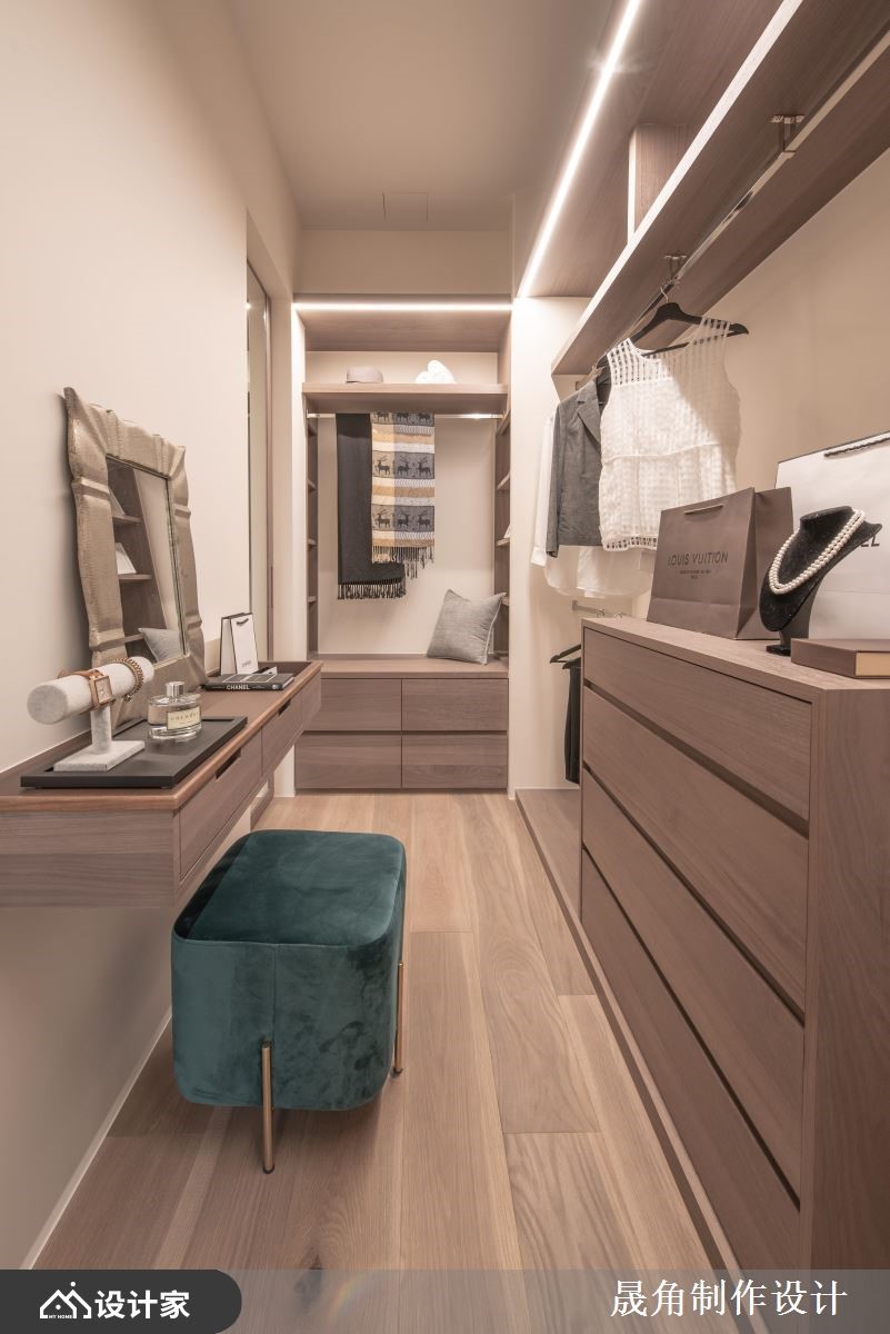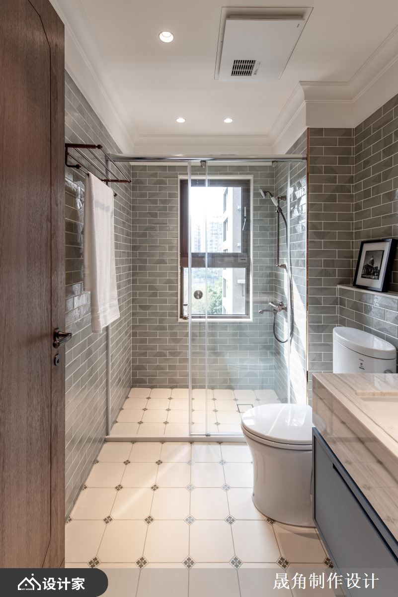 149平米二手房拥有双面采光、通风良好的优势,却因为原格局的规划不当,导致视野狭窄,设计师以光的叙说为改造核心,运用格局思考的转换和贴近业主喜好的色彩配置,为夫妻俩呈现百看不腻的自然面容。 【沙发换个位置,重迎自然绿意】 改变原先一开门就见沙发的尴尬规划,设计师将沙发与电视墙的位置互换,让业主能够面向开阔的室内空间,在阳光的点点洒落下,享受惬意无负担的放松时光。考虑女主人爱好大自然的人格特质,居家以青柳绿为视觉基底,加上砂质粉麦色大理石花器,使绿意能够贯穿内外,营造一种温暖和煦的清新氛围。 书房则是由原来封闭的客房所变更,条纹玻璃隔断带有轻柔的欧式古典框线,让光线可以自然穿透,同时提供业主阅读沉思的自在一隅。主卧延续整体的木质调性,圆弧的床头造型除了给人被拥抱的安心感以外,也能够随手摆放眼镜、小物品。更衣间则采取开放式的柜体设计,帽子、围巾、衣物分层收纳,让女主人享有精品展示的优雅格调。 小编的最爱 客浴选择若草绿的三角斜纹砖妆点立面,搭配古铜色的花洒,呼应公领域的自然绿意,仔细一瞧,还可发现藏有收纳的细心;主浴则以双洗面盆的设计,帮助夫妻俩掌握早晨的行色匆匆、夜晚的相伴相依,为两人的甜蜜加乘。