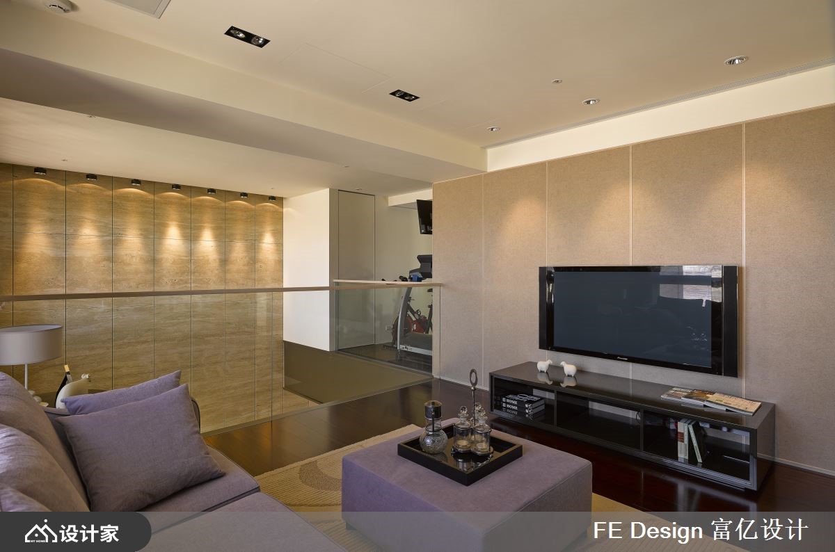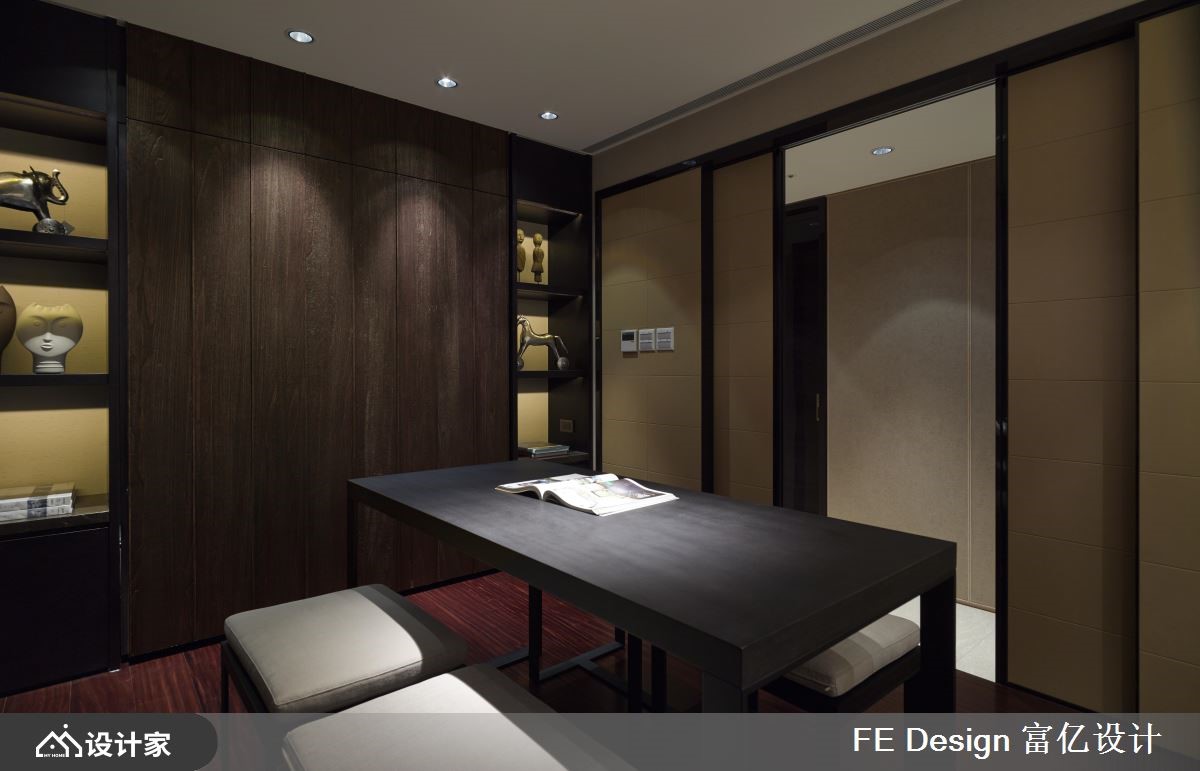 设计师透过现代风作为挑高独栋楼的空间底调,藉由材质与线条与彩度的减化,挹注净雅、利落的空间视野,并连结不同楼层的互动,联袂室内的动线与机能,让豪宅不仅仅只是铺张,而是充满深度与气度,快跟着小编一起来看看吧!玄关进门处,特地规划深色钢琴烤漆门拱,衍生框景聚焦效果,并促成柳暗花明的敞阔感,使人步入客厅后,可深刻感受到卓越大器感;于客厅主墙铺叙延伸向上的天然洞石,并让窗帘跨越上下两层楼,以简洁立面串联挑高感,所有的视听设备则藏进了直立式机电柜中,兼顾了收纳与美观;餐厨场域,则呈现宽敞的开放式规划,采用玻璃拉门取代传统门片,串起光线且兼顾阻绝油烟的效果,同时整合厨具设备并串联吧台,划出流畅的机能动线;上层则额外规划起居小客厅,可用于小憩或家庭聚会,定义不同的社交区块!小编的最爱 功能房外部连接了户外空间,让内外形成一体,兼具了客房、赏景、休憩、书房等多主题,并促成绿意和日光的美好交流!
