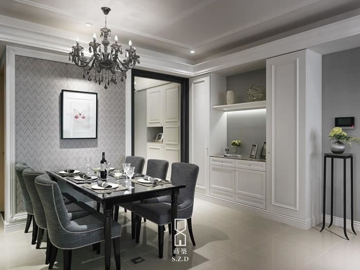 中性的灰色调成为家居主色,彰显屋主低调内敛的性格,以法式古典风铺陈,在华丽的墙纸铺陈、古典线条的描绘、水晶吊灯与风格逸品的装饰下,营造出贵族般的度假居所,散发优雅动人气息。