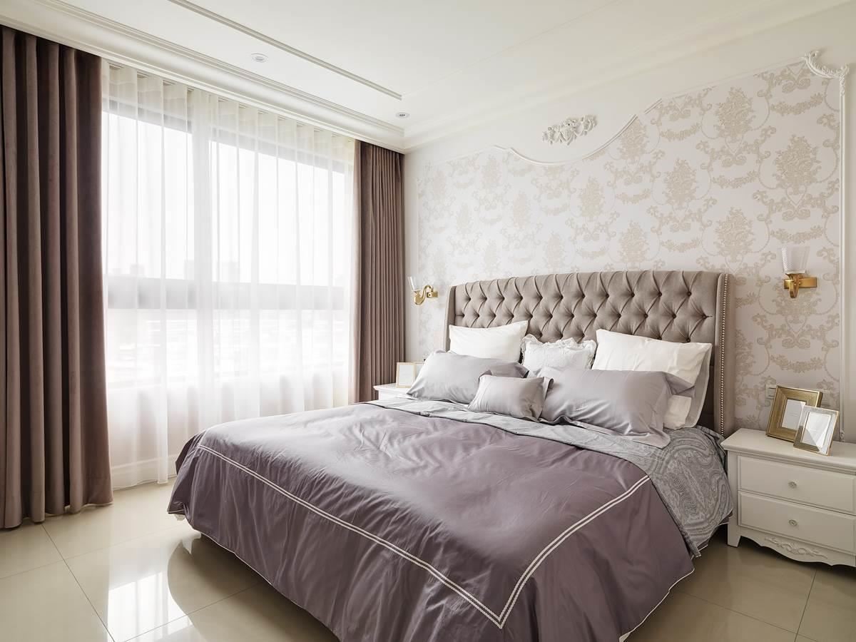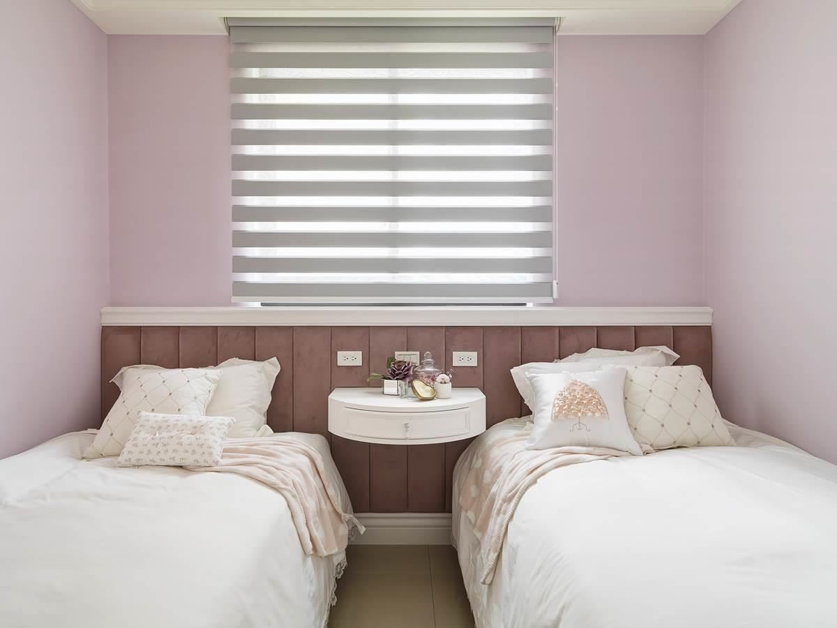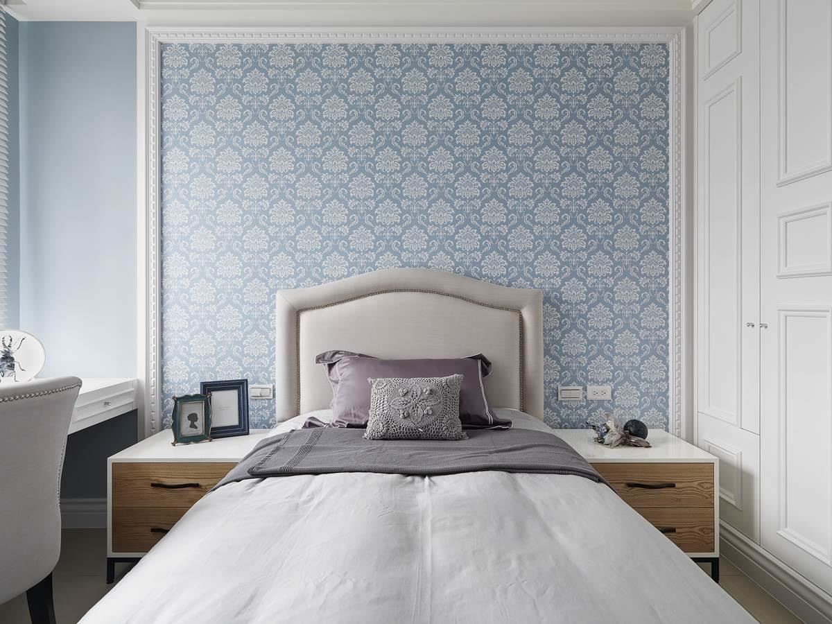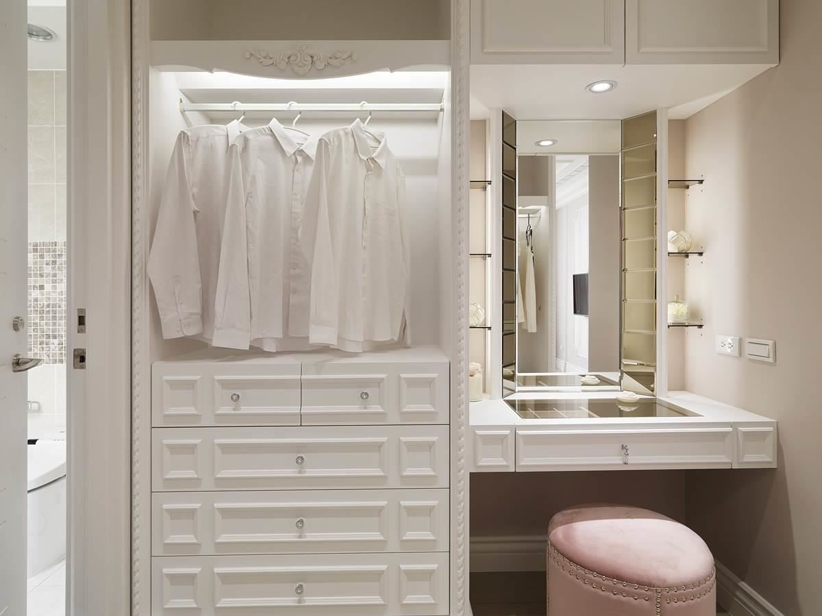 不同色彩与古典细节诠释居住者的品味与性格。一抹粉色调妆点主卧的甜美浪漫气息,印花、条纹与线板交织而成,更衣室更以雕花装饰柜体,满满的开放式衣柜与穿衣镜设计,一圆公主梦。