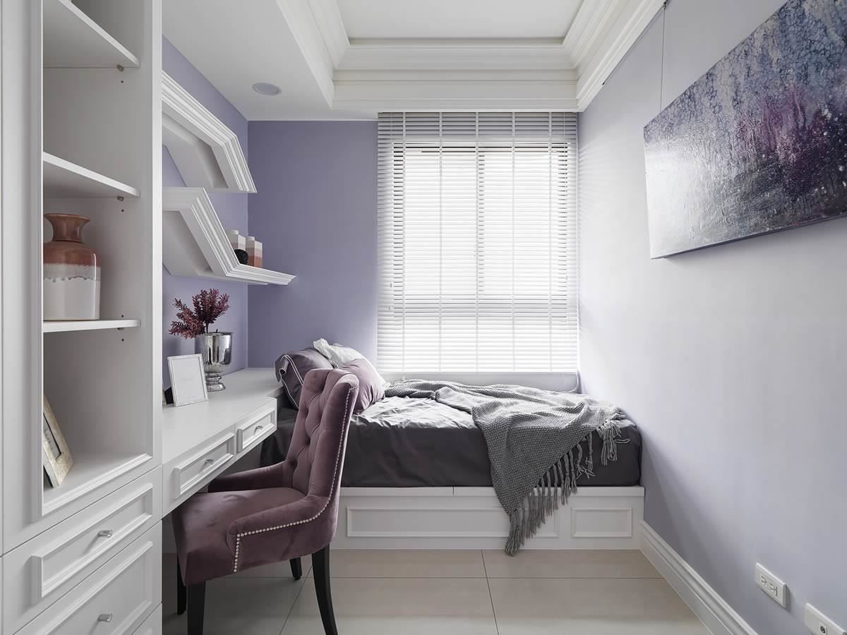 男孩房与女孩房则分别轻洒蓝、紫、粉色彩,洁白的线板穿梭其中,激荡古典新意,伴随艺术画作、风格对象陈列,编织各自的一帘幽梦。