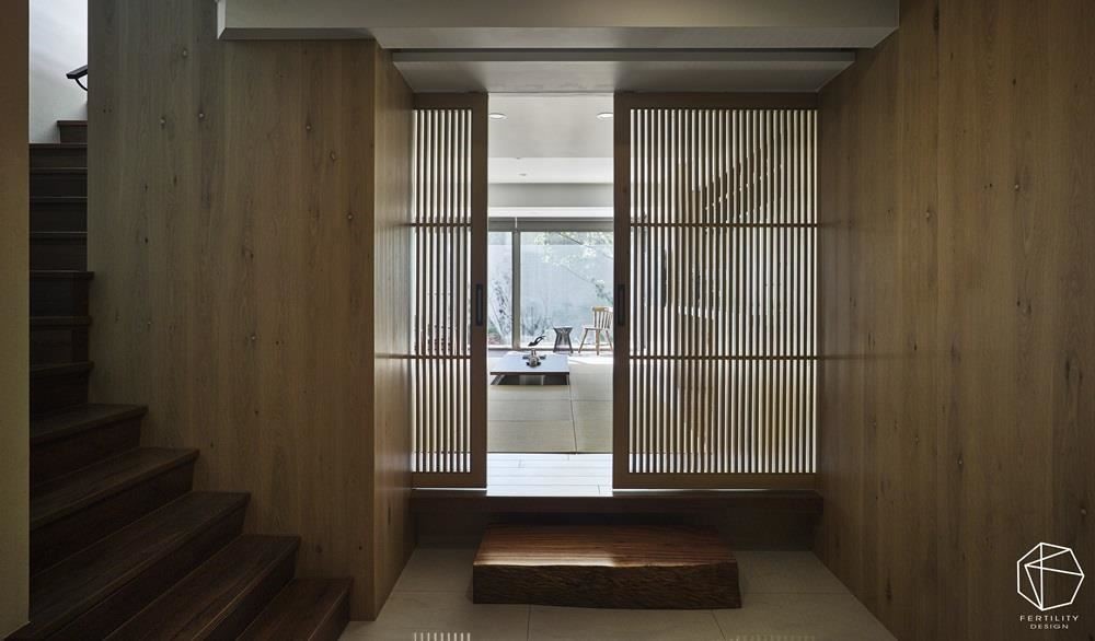 格栅式的拉门除了兼具隔屏,也能顺势规划端景,以素雅简练的木格栅,为空间带入明朗气息,透过利落线条注入轻盈的空间感,让光线、空气得以恣意流动,形成室外与室内的悠远深度,做出聚焦视觉效果。