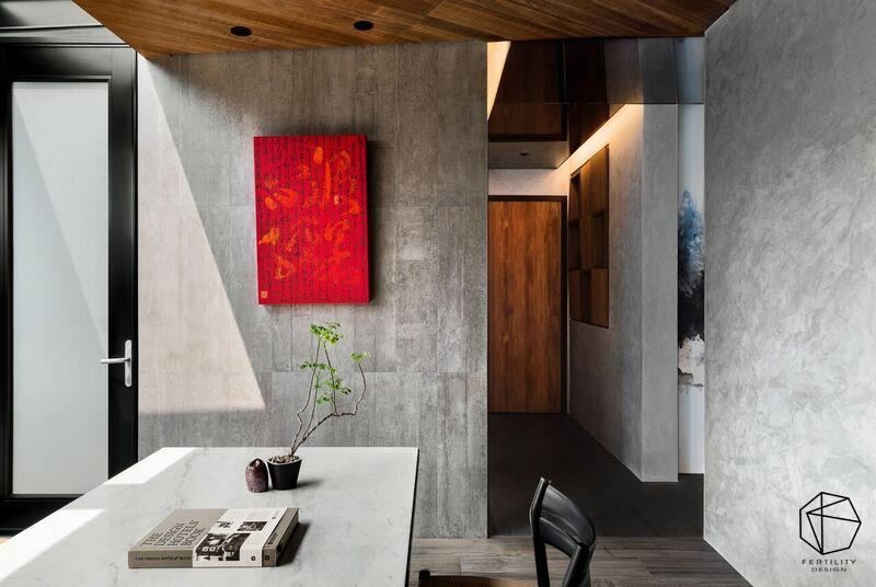 要打造端景,除了透过远景、近景的营造,其实在温文背景之下,搭配一幅色彩绚丽的画作或家具,也能够形成美丽的聚焦端景,像是以灰墙为衬底、红色画作作为主角,即能创造强烈的对比感,营造空间看点。