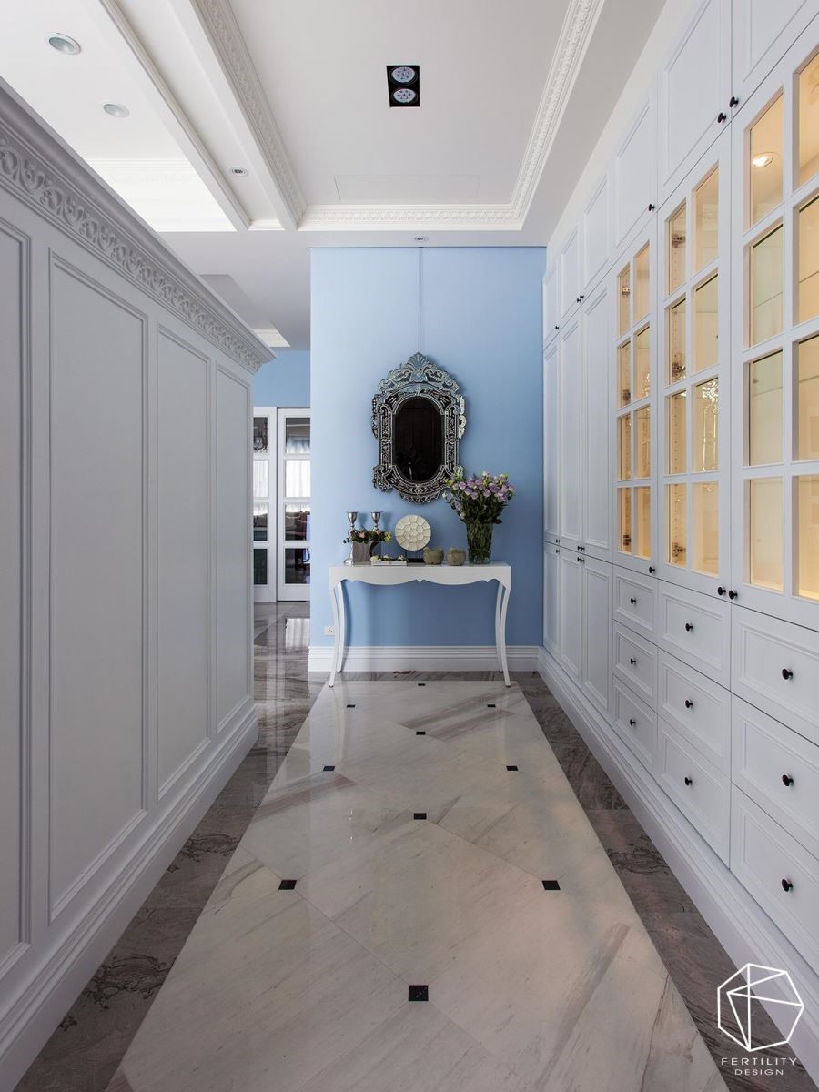 玄关,是住宅的起始部分,也是室内外的过渡与衔接,具有缓冲的作用,作为家庭门面,往往需要美好的第一印象,在此摆放一张欧式端景桌,能够替长廊式的玄关制造亮点,瞬间美化视觉感受。
