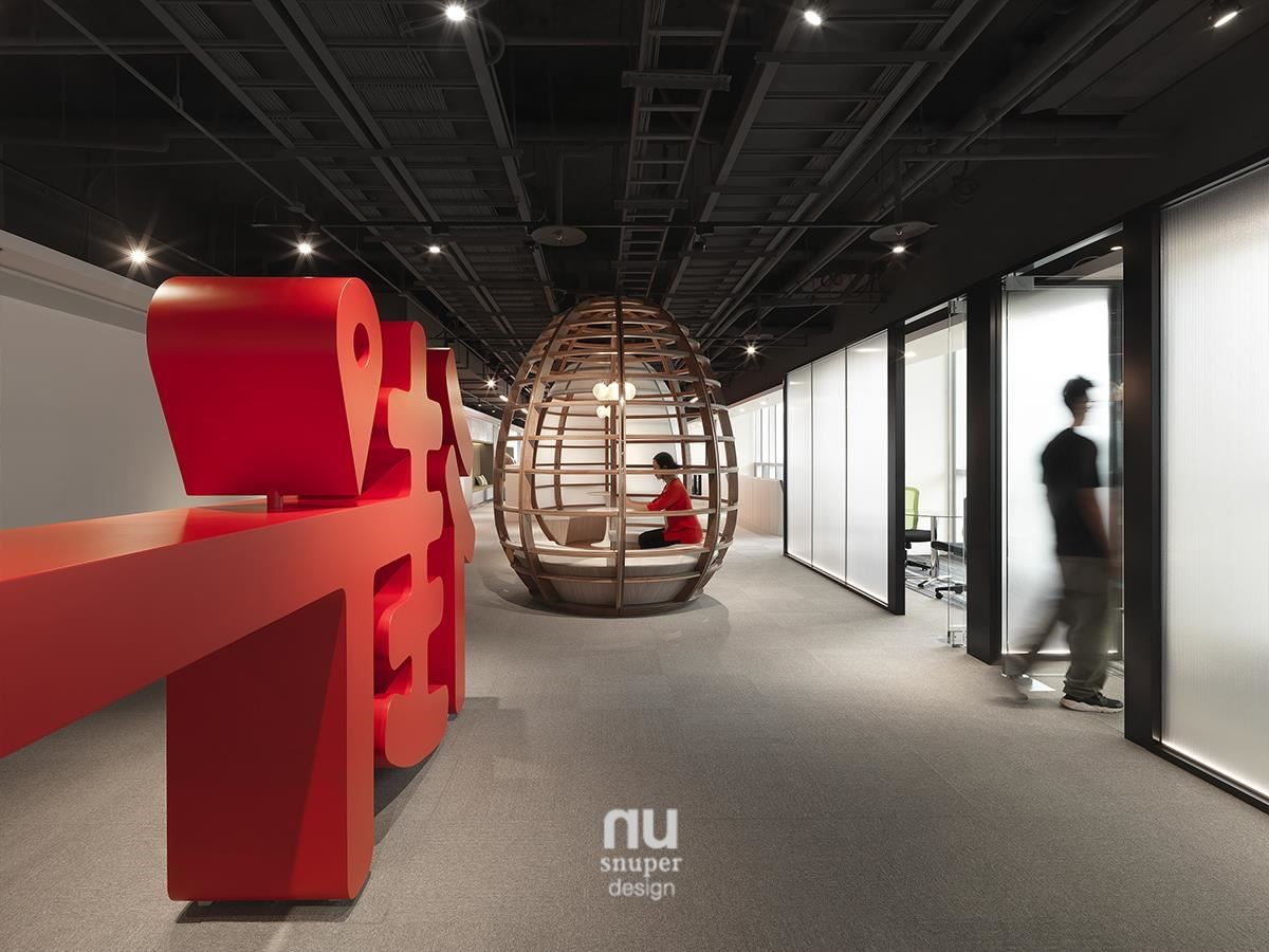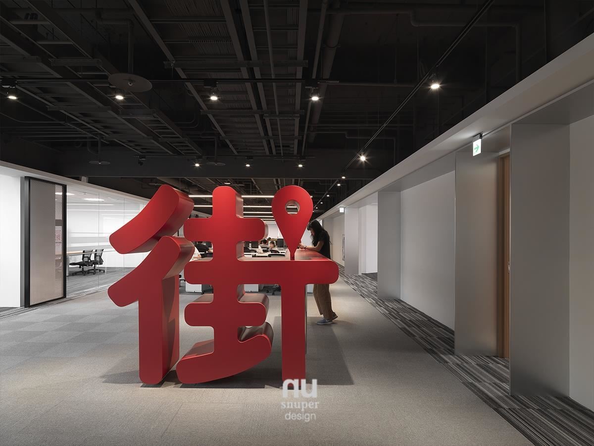从企业商标“街口支付”中获得灵感,亮眼的红色调成为空间的主色彩,更延伸街口的“街”字,放大成为街Bar,不仅是视觉焦点,更是一张创意独特的吧台,可在此进行快速的会议、交流及讨论,在空间里撰写品牌故事。