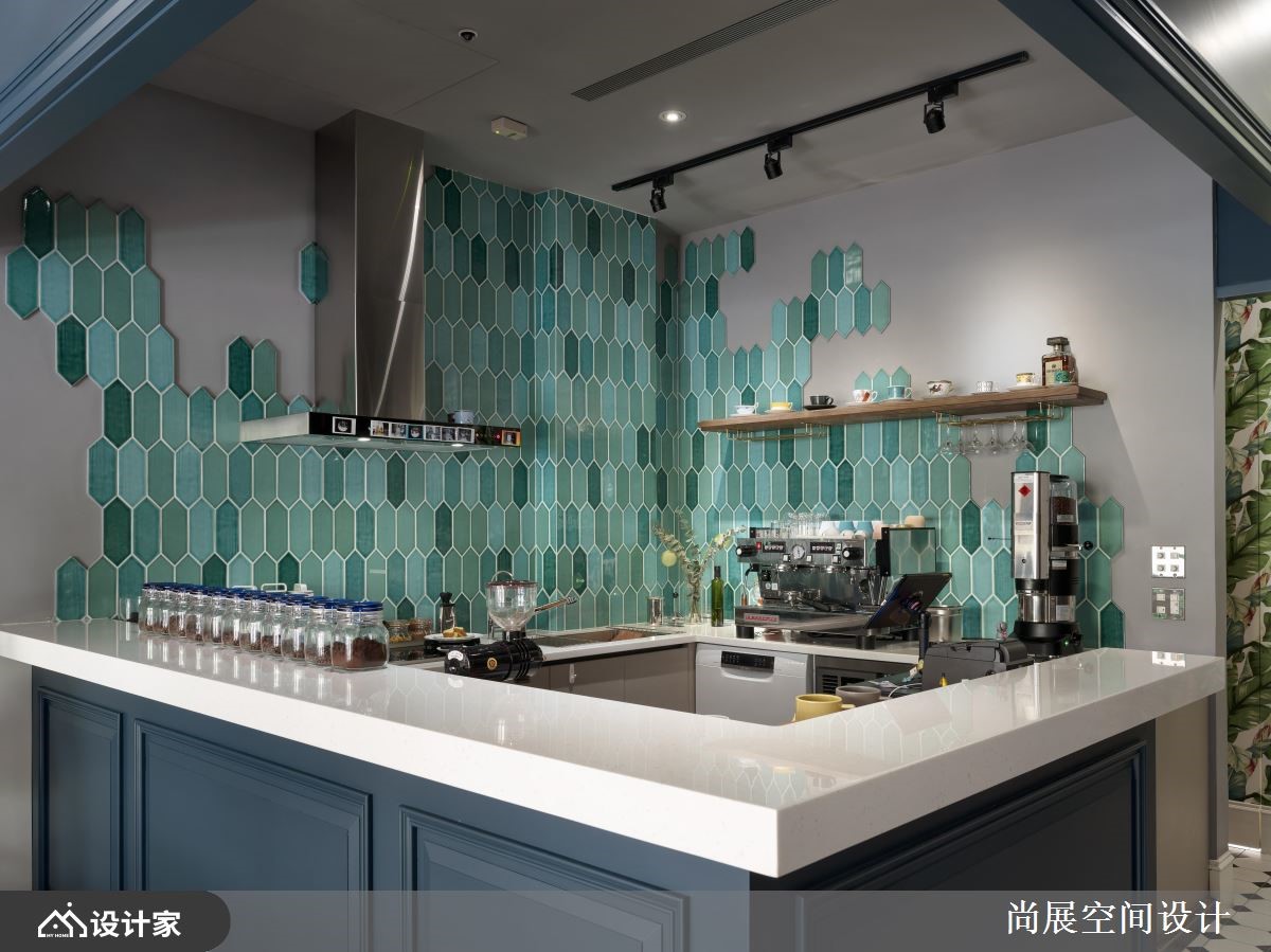 小編帶你看好宅 二手房空间打造成咖啡馆,设计师引用低奢美式古典风作为定调,并依循着店面位置,坐落于城市的边陲地带,营造出有如个人招待所般的隐密性,形成一座穿越秘径才能抵达的咖啡庄园,快跟着小编一起来看看吧! 空间选用深蓝色做整体印象,于内部配置一座大面积吧台、断开整个长型空间,并选用深浅蓝色蜂巢砖铺陈壁面,刻意做出不规则的拼贴处理,创造墙面的趣味表情;同时在天花板、家具部分加入温煦木质,与沁凉蓝色形成美好呼应,营造出森林、溪水的大自然想象;格局则呈开放视野,不做过多的变动,但舍弃美式风常见的装饰天花板,在空间中做一些造型处理,像是在天花装上轨道钨丝灯,搭配挑空的空间感,将美式风与工业感元素美融合,缔造中古屋的亮眼新风貌! 小编的最爱 店内更在右侧动线安置庄园式的玻璃装饰窗,以木皮做饰边,搭配娴静的灰底背景,打造犹如奇幻世界的神秘出入口!