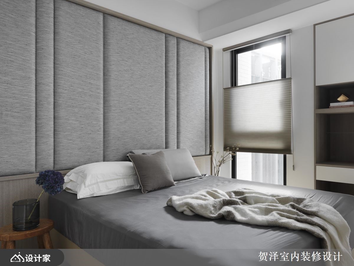 本案为现代风大户型,同时也是小夫妻的新婚宅,空间设计起点源于父亲赠予的两张实木桌,设计师以这份家具礼物做为灵感起源,透过现代风的美化,营造温润兼具与沉稳的空间质感,快跟着小编一起来看看吧! 玄关,规划聚焦的造型屏风,藉由不同走向的木纹、各式玻璃拼凑而成,勾勒出入口处的吸睛亮点,并形成若隐若现的遮蔽效果,带出暧昧美好的空间想象;客餐区域则纳入美好的自然采光,与整体的黑、灰、白调和,缔造温和细腻的生活质感,并串联客厅与开放书房,规划局部穿透的书柜立面,在开放或封闭的门板之间,以异材质相互搭接,呈现多元的收纳机能表情;餐厅以实木餐桌作为主角,衔接简洁的开放式吧台,兼具轻食厨房与餐厅等用途,温馨且实用;主卧,巧妙遮蔽了床头开窗,藉由灰色布面的大面积延伸,营造简约舒适的床头表情! 小编的最爱 以蓝云白天为主题的新生儿房,以窗面导入柔和日光,并在墙面加入趣味图案与装饰,构成视觉亮点!