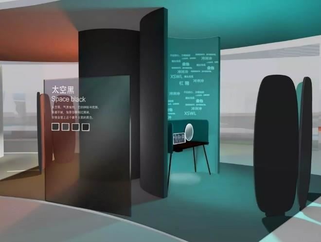 黑色,无光的境界,如黑洞之神秘,无边包容的存在。以黑色系空间来诠释网友之间无限可能性的沟通关系。通过网络穿越现实边缘,穿越人群焦虑,与屏幕另一端的人产生交集,呈现现实隐藏和虚拟展露间矛盾对立的状态。