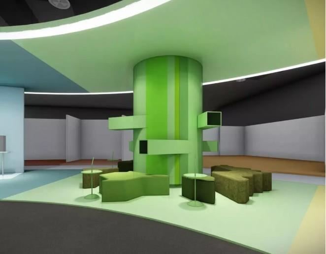 “公共”既属于“人民”,公共空间需要呈现一种包罗万象又井然有序的沟通环境。冷色系的蓝调色彩沉静笃定,能够弱化公共环境的中不同个体的情感需求,营造一种充满秩序感,令人沉静内省的氛围。