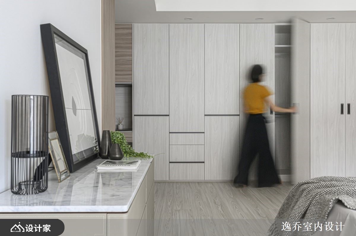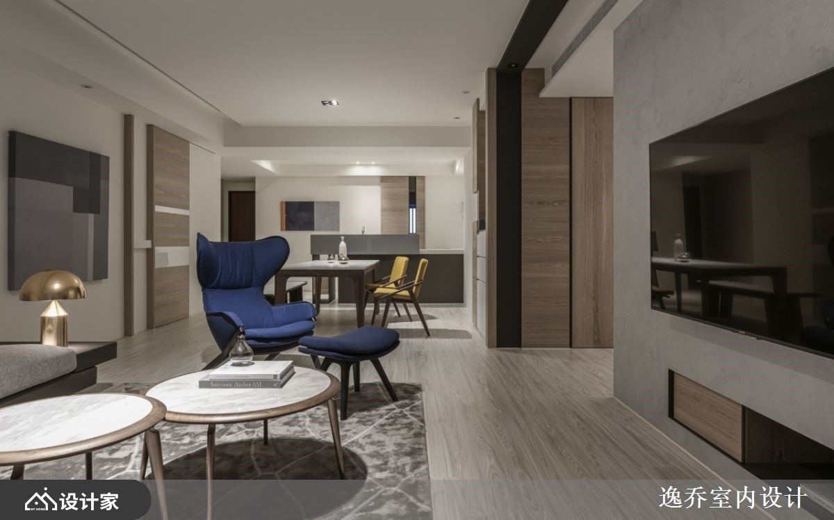 205平米现代风大宅透过异建材的拼接,呈现出灰阶空间的层次感,并适时地加入活泼鲜艳的软件,让家居在冷静的气质中跳脱出愉悦感,创造优雅动人的生活篇章。【善用黑色框线,放大电视墙视觉】玄关藉由六角花砖界定出明确的落尘区,柜体的几何线条与艺术品的陈列,在镜面的反射下,展现不凡的入门端景。轻踏上超耐磨地板,来到开放式的客餐厅,黑色框线放大威尼斯特殊漆电视墙的视觉,墙面在日光中散发灰色的高雅质感,而灰色沙发与各色软件的搭配,精妙地点亮空间的生命力。 餐厨空间延续整体的简练主轴,为避免过多色彩的干扰,只在餐椅做清爽的跳色;靠近玄关侧的收纳柜刻意留空,无论是当作佛堂使用,或是摆放艺术品都相当适宜。厨房的轻食吧台利用色块、建材的切割与拼凑,跟主墙上的画作相互映衬,使抽象的优雅美学,漫步在整个生活领域。 小编的最爱 主卧衣柜设置大小不同的收纳空间,让整面墙拥有更丰富的收纳机能,同时于衣柜边角的位置嵌入书桌,让空间多了一处阅读角落。儿童房以嫩绿色为空间主调,呼应孩子的天真气质,也保留许多空间给孩子玩玩具、读故事书,方便未来能够依据需求变更家具配置。