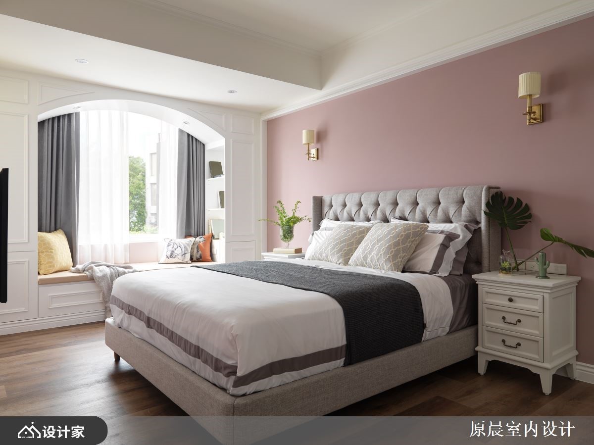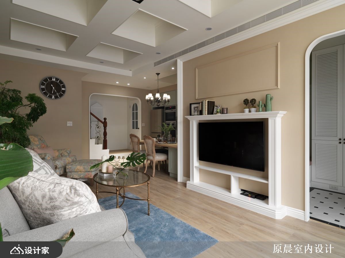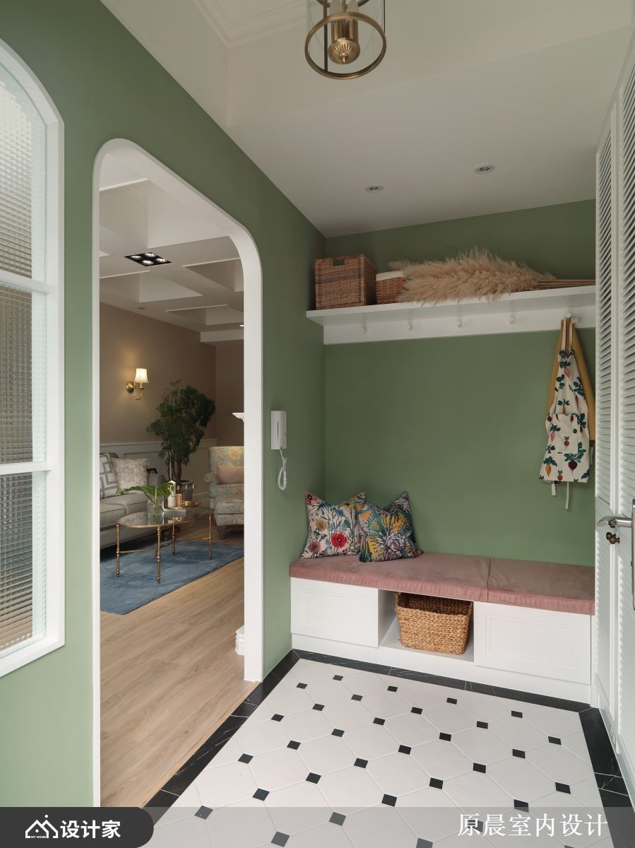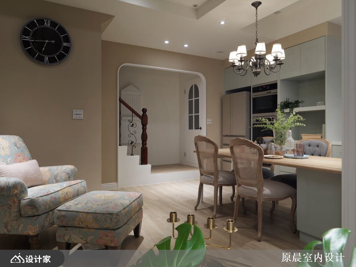 设计师重新规划独栋楼,增添空间层次及动线趣味性,并藉由木皮、铁件、镜面等材质挹注美式田园风底蕴,让屋主夫妻开启全新的生活想象,快跟着小编一起来看看吧!设计师重划场域,挪出部分围塑成入门玄关,搭配灰阶草绿的墙色铺叙,作为过渡转圜的入口空间;客厅电视墙采用仿壁炉造型,增添美式风韵,针对天花的大梁问题,则透过格状造型创造假梁,提升整体的视觉质感;同时考虑到厨房纵深不足,配置开放式的厨具设备,搭佐餐厅的清新木桌椅,串联餐区的美好互动;主卧房内,采用深粉色作为主色,赋予个性主题,且规划窗边卧榻,替室内增添更多休闲机能! 小编的最爱 次卧房室,则透过蓝色铺陈主视觉,赋予舒适沉稳感,并划出卧眠区与书房、更衣间的流畅动线,形构出宽敞、功能兼备的生活环境!