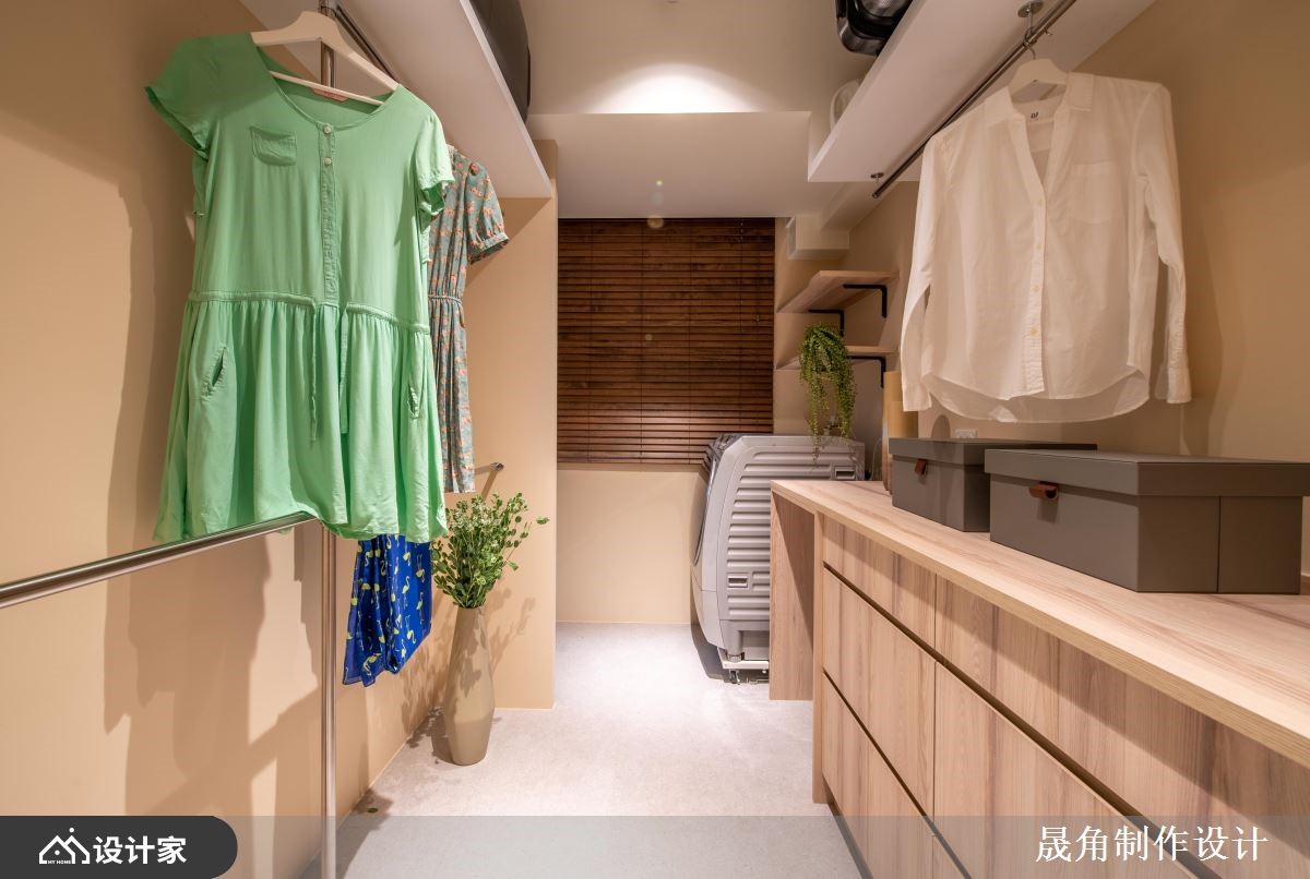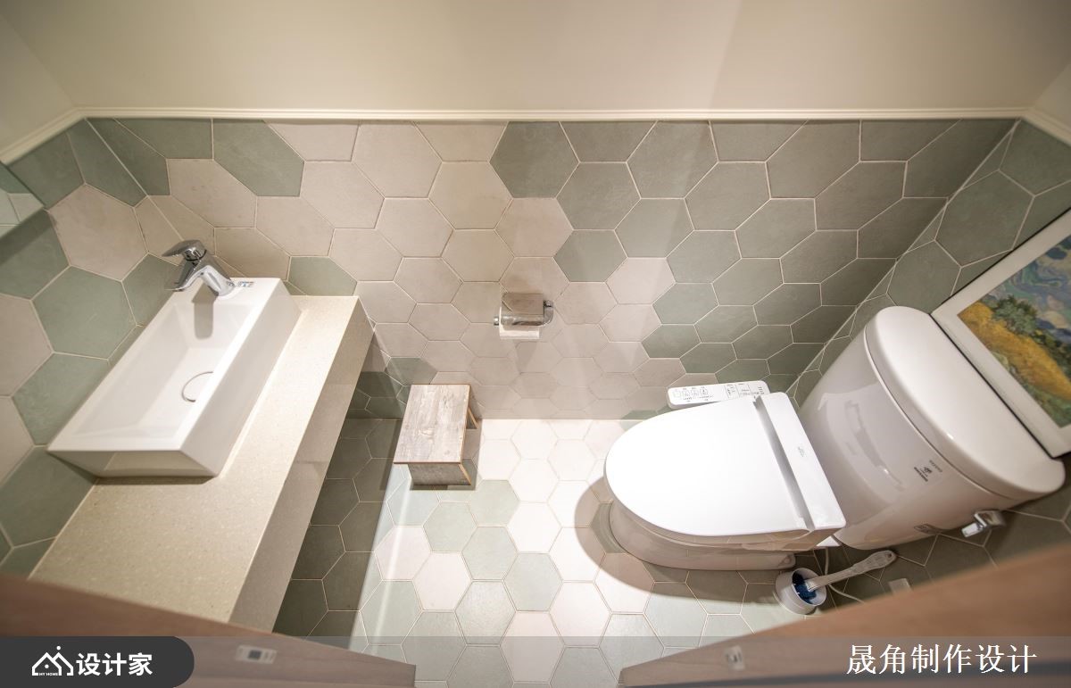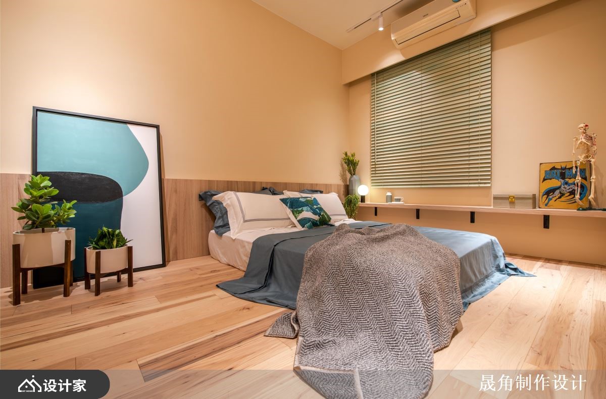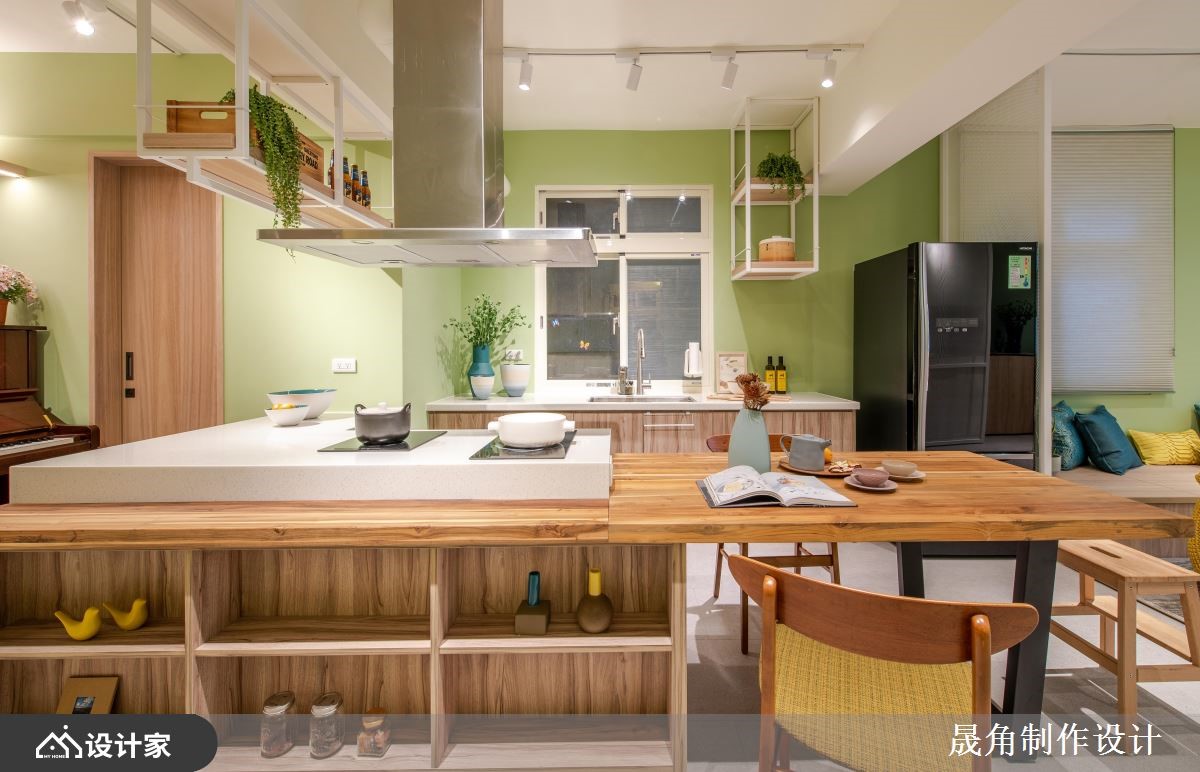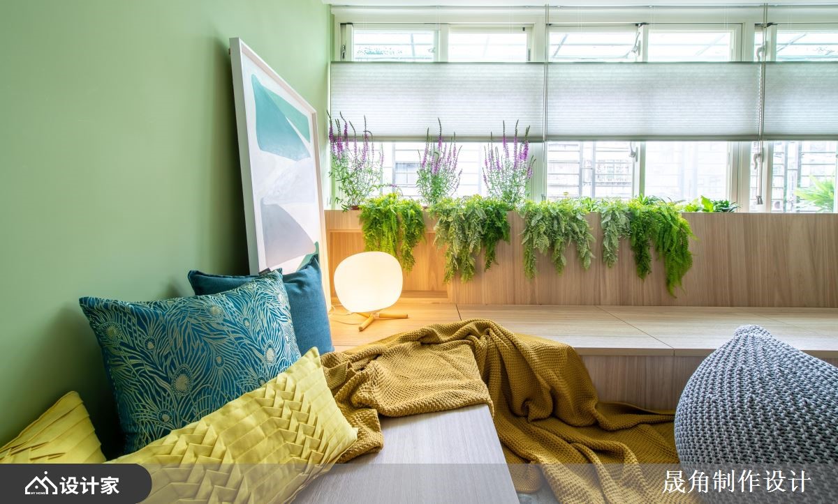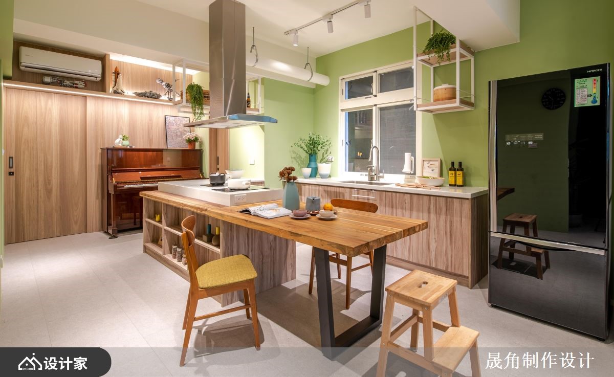 设计师透过混搭风为基底,在老屋空间打造一处充满绿意的室内花园,复制屋主在国外求学时的难忘回忆,让绿意与自然生活时时相伴,快跟着小编一起来看看吧!原始格局中,采光显得不足,因此创造一处具有穿透性和流动感的空间,让阳光可穿梭在室内各角落,运用 L 型飘窗设计取代传统沙发,斜靠背形成种植花草的地方,让坐卧空间大幅加大,同时创造出大量收纳机能;餐厅则视为全室中心,让客厅、主卧房、儿童房、更衣室、卫生间等形成环状型围绕,使餐厅与每个空间达成连结,而一字台面与 L 型中岛的组合,则取自日本料理长型餐台概念,增添互动情境;私领域,则将两间房间打通,同时保留两个房门作进出,让空间能够串连流通,使孩子拥有开心穿梭玩耍的场域;主卧采用空间合并的想法,形成主卧、主浴、更衣室的结合,这三者之间既可相互连联通亦可藉由滑门开闭,来创造出完全各自独立的生活区域!小编的最爱 卫生间部分,延续与自然融合的概念,选用水墨挥洒意象的花岗岩磁砖,流露自然随性的美感!