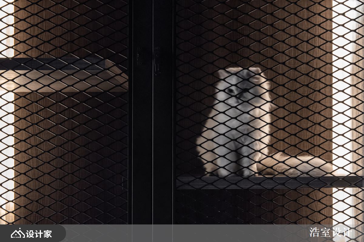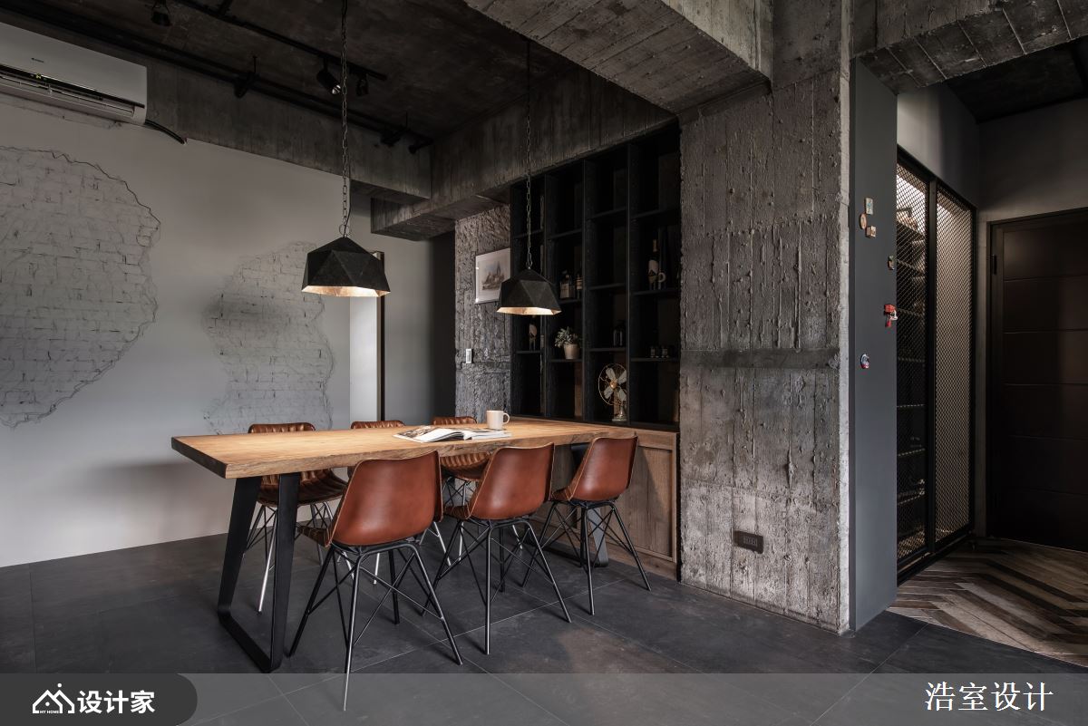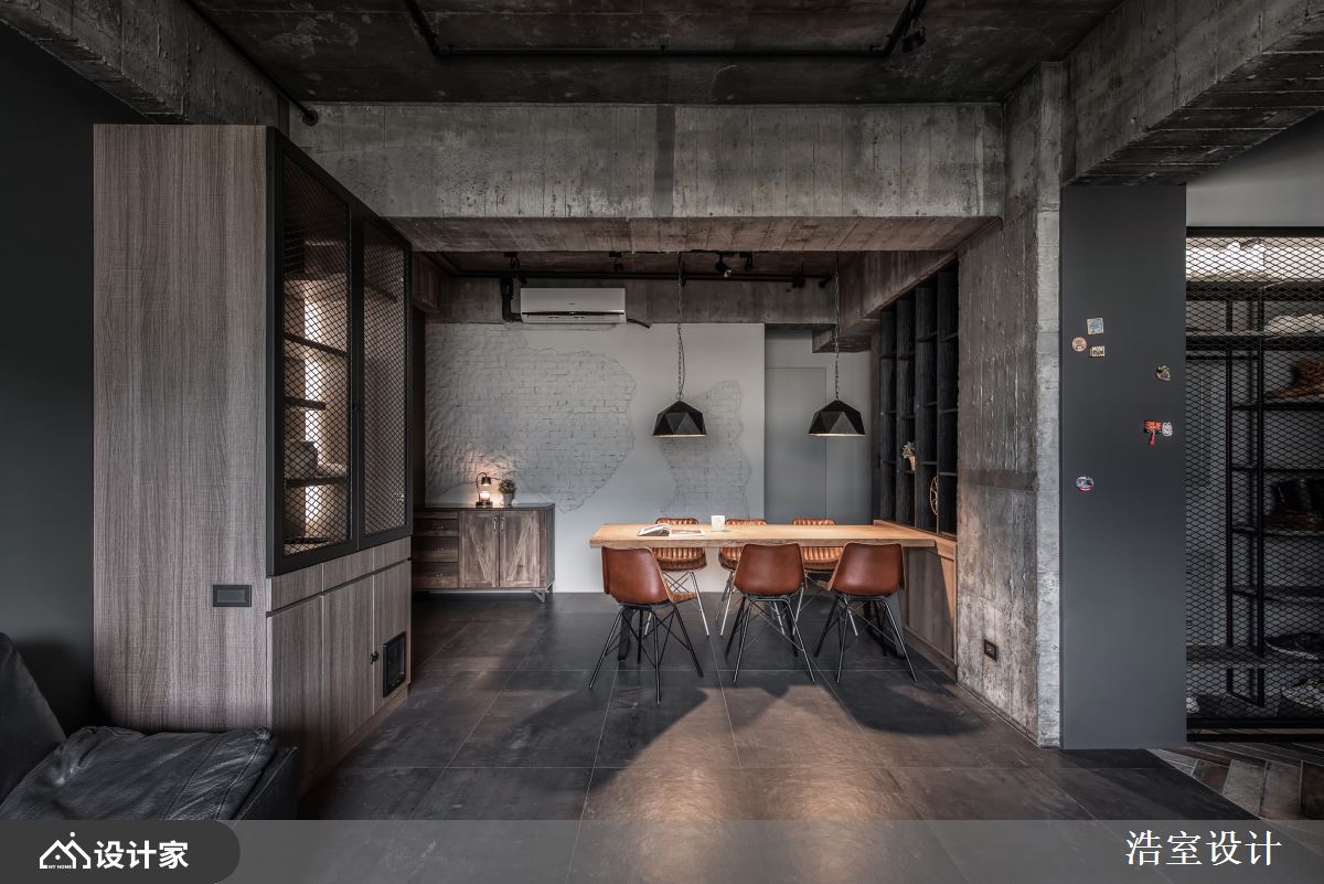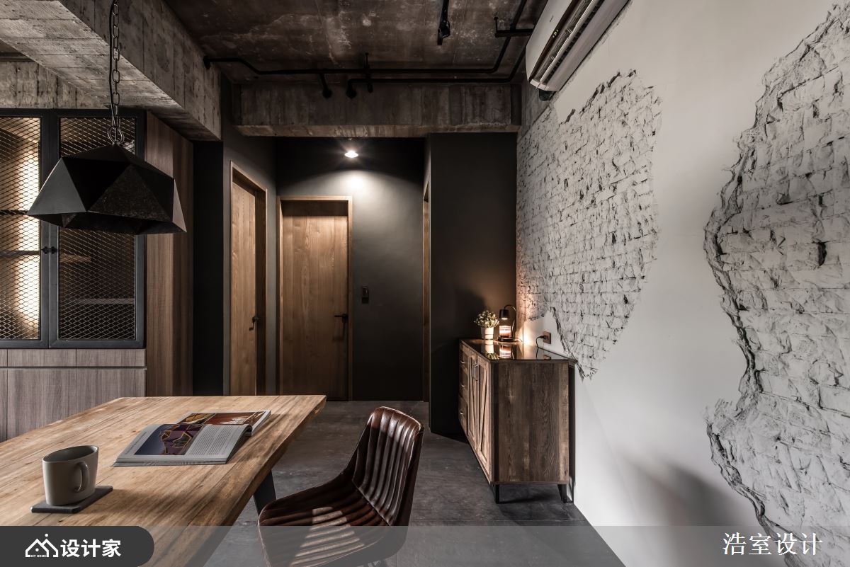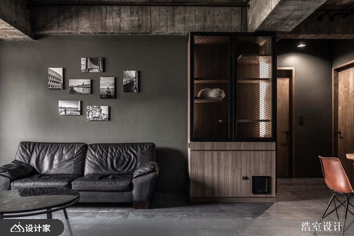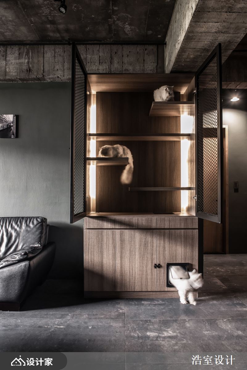 小编带你看好宅 设计师加入粗犷原始的灰泥板模纹理打造工业风居家,表露天然细腻的空间张力、诠释微醺粗犷感,同时挹注宠物生活机能,并另辟姐姐的卧室、预留孝亲房,让空间美形且符合生活使用,快跟着小编一起来看看吧! 玄关区域,刻意保留毛胚质感,展露粗旷况味,搭配刷旧感的木纹砖地坪,创造独树一帜的迎宾视野;格局上,则破除封闭的隔间思维,采用开放式手法擘划格局,塑造流畅的生活动线,同时大面开窗导引自然光,调和空间的深色基调;材质上,则刻意保留粗野的建材表情,或局部做出斑驳破坏感,搭配仿旧木质家具的点缀、棕色皮革软件的装饰,营造富有个性且具温度的居家场景;餐厅配置原木餐桌、焦糖色餐椅,以木质平衡冷冽调性,而灯光烘托也起到氛围加乘的作用;卧室加入了展示开放式层架,坐拥灵活的收纳弹性,让空间整体既符合所需,也诠释屋主的专属品味! 小编的最爱 针对宠物生活机能,因应猫咪喜爱独立、爬高与窝藏,保有尽量敞开无隔阂的空间感,且选用耐磨系数高的进口板材,形成猫咪的专属角落,并于底部做出独立通道,便于猫咪来去自如,搭被活用扩张网的穿透特性,保有主人、猫咪可保有亲密互动!