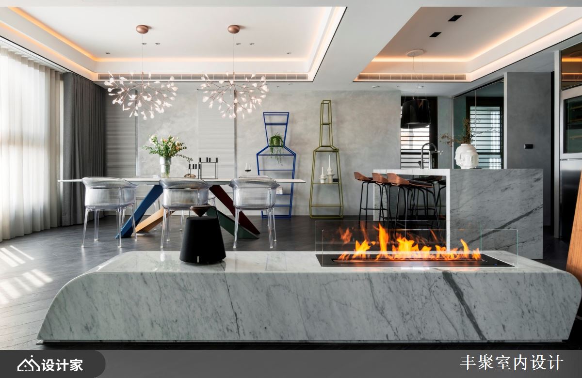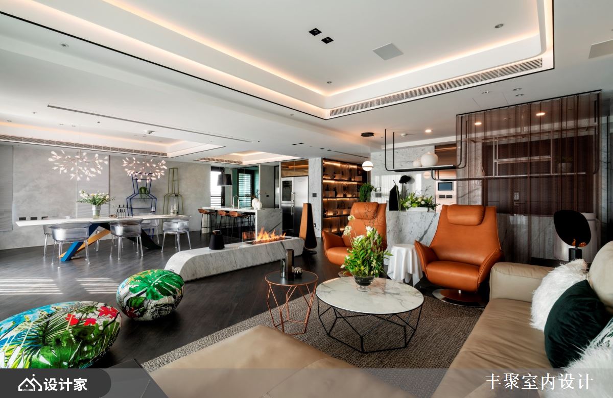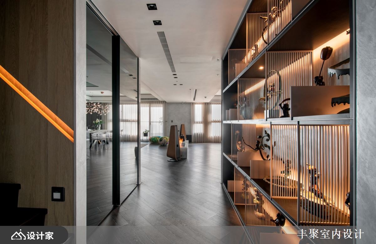 小编带你看好宅 现代风大户型,设计师因应屋主需求,将既有厨房拆除、改作内外厨,并增加中岛与开放餐厅,划出更开阔的空间感,且将男屋主的铜雕饰品纳入空间设计的一部分,同时,也替女主人打造唯美更衣室、舒适的泡汤空间,创造更上一层楼的生活情境,快跟着小编一起来看看吧! 透过格局的全面改造,擘划客厅、餐厅、厨房、中岛吧台的全开放式视野,让屋主可在尽情发挥厨艺的同时,也同步与客厅的客人们聊天互动,客厅部分,则舍弃制式的电视墙设定,采用升降投放影机与布幕设计,让空间规画更灵活,客餐之间的壁炉,除了形成界定作用之外、也添加温暖氛围,而天花板的立体层次,则将宅邸烘托得更加出色;软件部分,选以轻奢华质感定调,将进口家具与灯具搭配得恰如其分,搭配廊道摆放的展示柜,用以陈列屋主的铜雕饰品,充分诠释艺术品味;鉴于屋主喜欢在厨房烹饪,但又怕油烟影响生活质量,特意设计了内外厨,并摆置红酒柜、咖啡机等,让餐厨兼具多功能! 小编的最爱 主卧室卫生间特意拆除重作,加入屋主钟爱的 B&V 独立浴缸,还有可当化妆桌的洗手台面,全面打造精品级酒店生活!