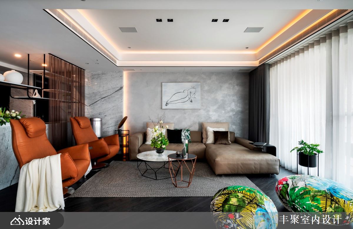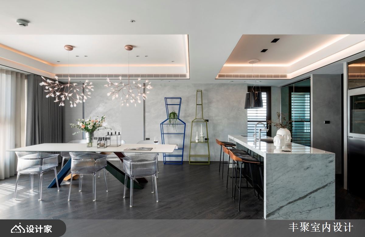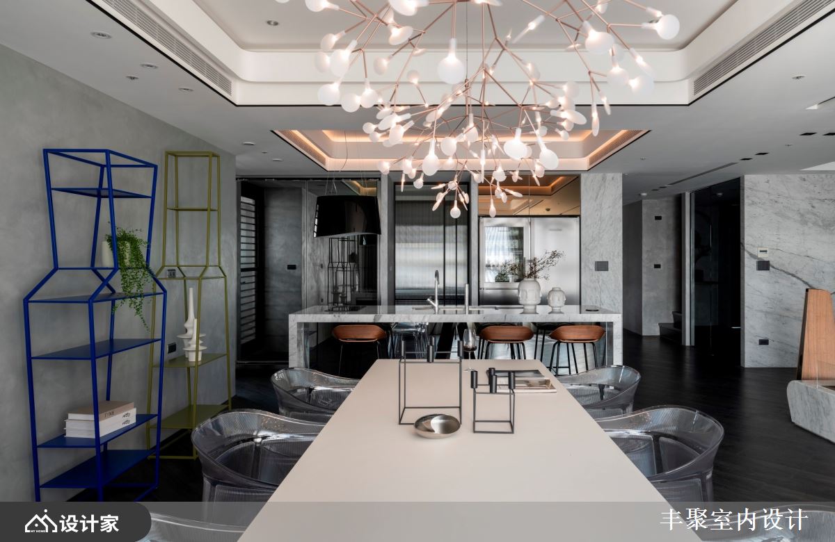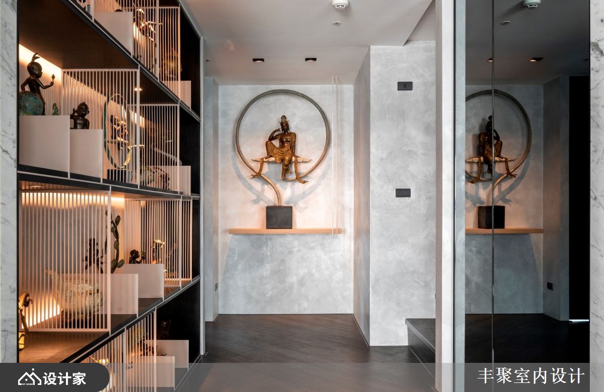 小编带你看好宅 现代风大户型,设计师因应屋主需求,将既有厨房拆除、改作内外厨,并增加中岛与开放餐厅,划出更开阔的空间感,且将男屋主的铜雕饰品纳入空间设计的一部分,同时,也替女主人打造唯美更衣室、舒适的泡汤空间,创造更上一层楼的生活情境,快跟着小编一起来看看吧! 透过格局的全面改造,擘划客厅、餐厅、厨房、中岛吧台的全开放式视野,让屋主可在尽情发挥厨艺的同时,也同步与客厅的客人们聊天互动,客厅部分,则舍弃制式的电视墙设定,采用升降投放影机与布幕设计,让空间规画更灵活,客餐之间的壁炉,除了形成界定作用之外、也添加温暖氛围,而天花板的立体层次,则将宅邸烘托得更加出色;软件部分,选以轻奢华质感定调,将进口家具与灯具搭配得恰如其分,搭配廊道摆放的展示柜,用以陈列屋主的铜雕饰品,充分诠释艺术品味;鉴于屋主喜欢在厨房烹饪,但又怕油烟影响生活质量,特意设计了内外厨,并摆置红酒柜、咖啡机等,让餐厨兼具多功能! 小编的最爱 主卧室卫生间特意拆除重作,加入屋主钟爱的 B&V 独立浴缸,还有可当化妆桌的洗手台面,全面打造精品级酒店生活!