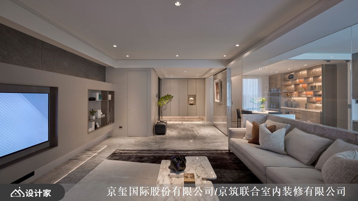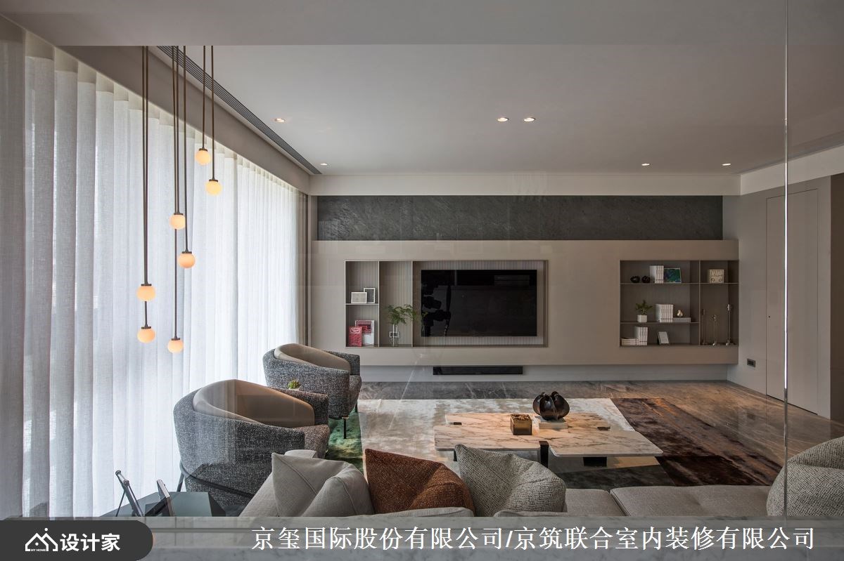 现代风大宅,设计师透过「绿意、艺术、生活」的设计理念,展现别树一帜的空间舒适感,搭配明亮的好采光、以及大理石材的精湛演绎,替屋主打造高质感的时尚大宅,快跟着小编一起来看看吧! 入口区域,将居者视觉导引至墙面的画作端景,以鲜明色彩佐上穿鞋椅矮凳,同时选用浅色大理石建构背景,透过独一无二的石纹肌理,增添住宅的艺术美感,令人有感走进私人艺廊;转进公领域,则引用简约线条、轻盈色调作铺陈,再把实用机能挹注于其中,让电视墙结合展示功能,藉由垂直水平线条的交错,交织简练的主墙画面,并援引窗外自然光线,于周边点缀偶然可见的植栽,在绿意、光线的互动之中,营造纾压生活感,而书房的通透隔间设定,则让空间感更为拓大,同时促成场域之间的美好交流;主卧床头刻意选用线条做装饰,并与灯光相互辉映,在垂直的律动中呈现精湛工艺! 小编的最爱 卫浴内,以大量石纹做延伸,转化为山川流水的痕迹,让空间更显典雅,并创造空间的开阔层次,让人可坐享舒适的洗涤情境!