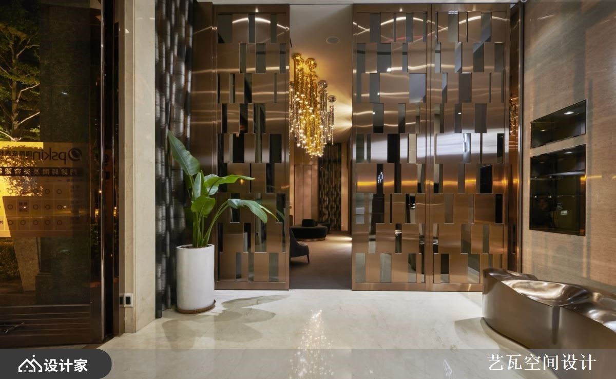 爱美,是人的天性,不只是如此,现在连医美空间都打破传统,以独特的装潢设计走出自身的美学之道,让空间与人相互对话,置身其中的人们更倍感尊宠。 此案空间裡,设计师结合现代感的线条以及奢华元素,交织出器度非凡的绝美风貌,并利用大量的米色调铺陈,营造出富有温度的室内环境。从大门踏进室内,右侧以白色调的大理石打造柜台,并以铁件造型框构出渐层视觉;接待大厅以大理石打造主视觉背板,LED 灯烘托品牌 LOGO,下方摆设金属质感的流线型座椅,展现轩昂大器;大理石牆旁以不规则镂空的金属质感门扇,平时可收放进入牆面,营造更开阔的公共领域,或是将门扇拉开,界定出外部柜台报到以及内部等候区;随着光线映照展现一抹流光的造型拉门,与天花板上以金属管状排列的灯饰相互辉映,调和出华丽的等候空间,更随着垂挂的华丽吊灯,成为空间裡美丽的路线导引,带着到来的人们前往诊间候诊处。 小编的最爱 整体室内透过牆面的造型设计、展示柜体的美学营造,以及角落的端景的酝酿,传递出富有人文艺术的质感空间。