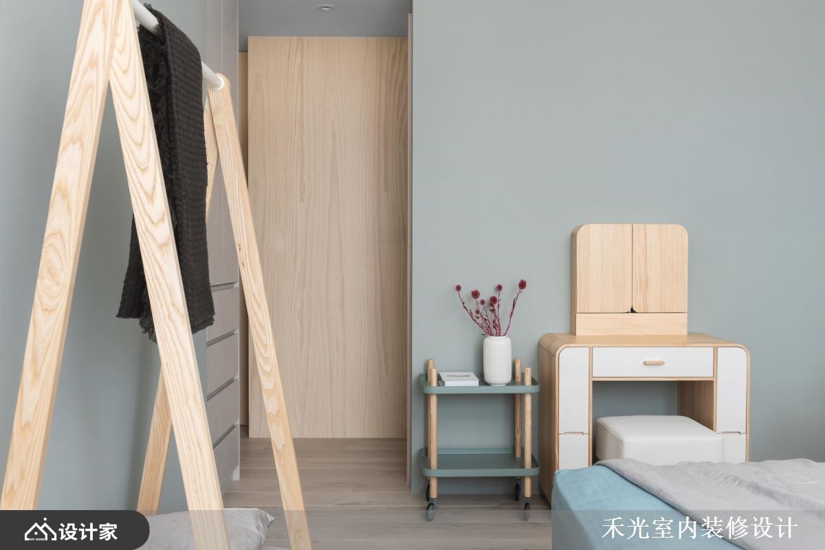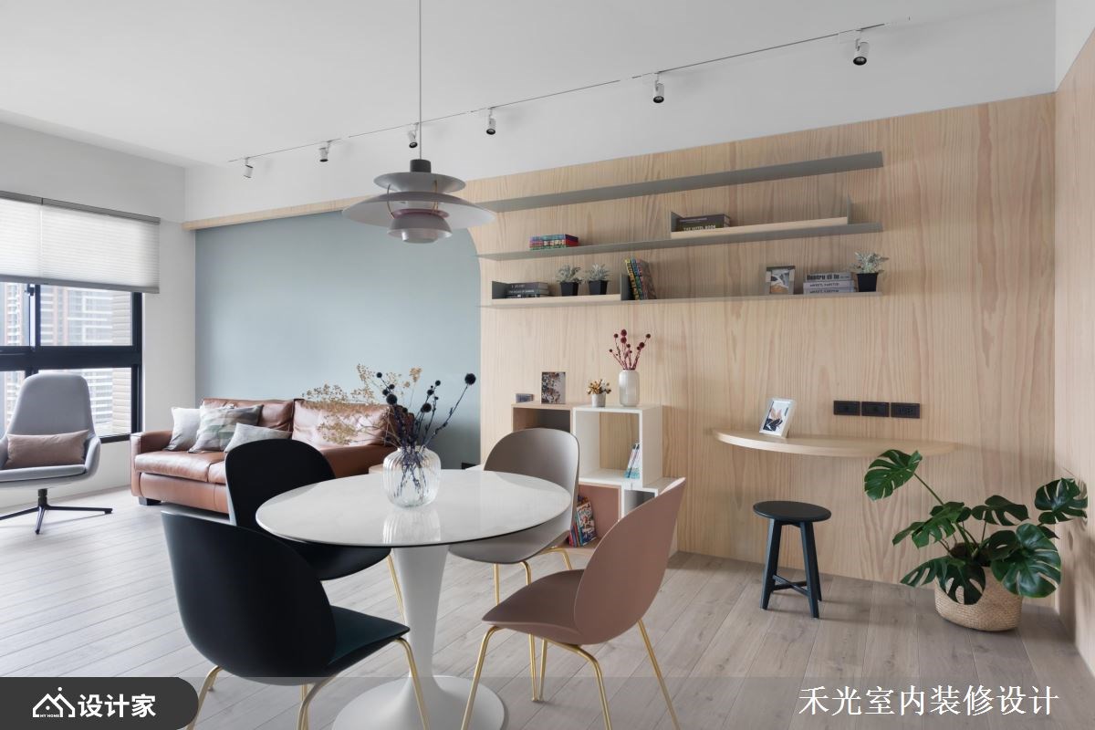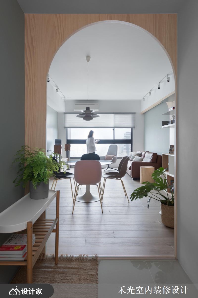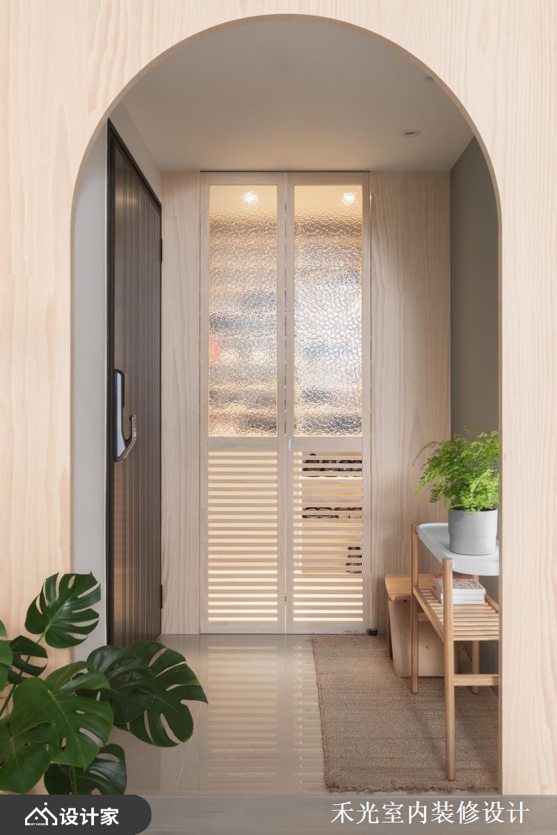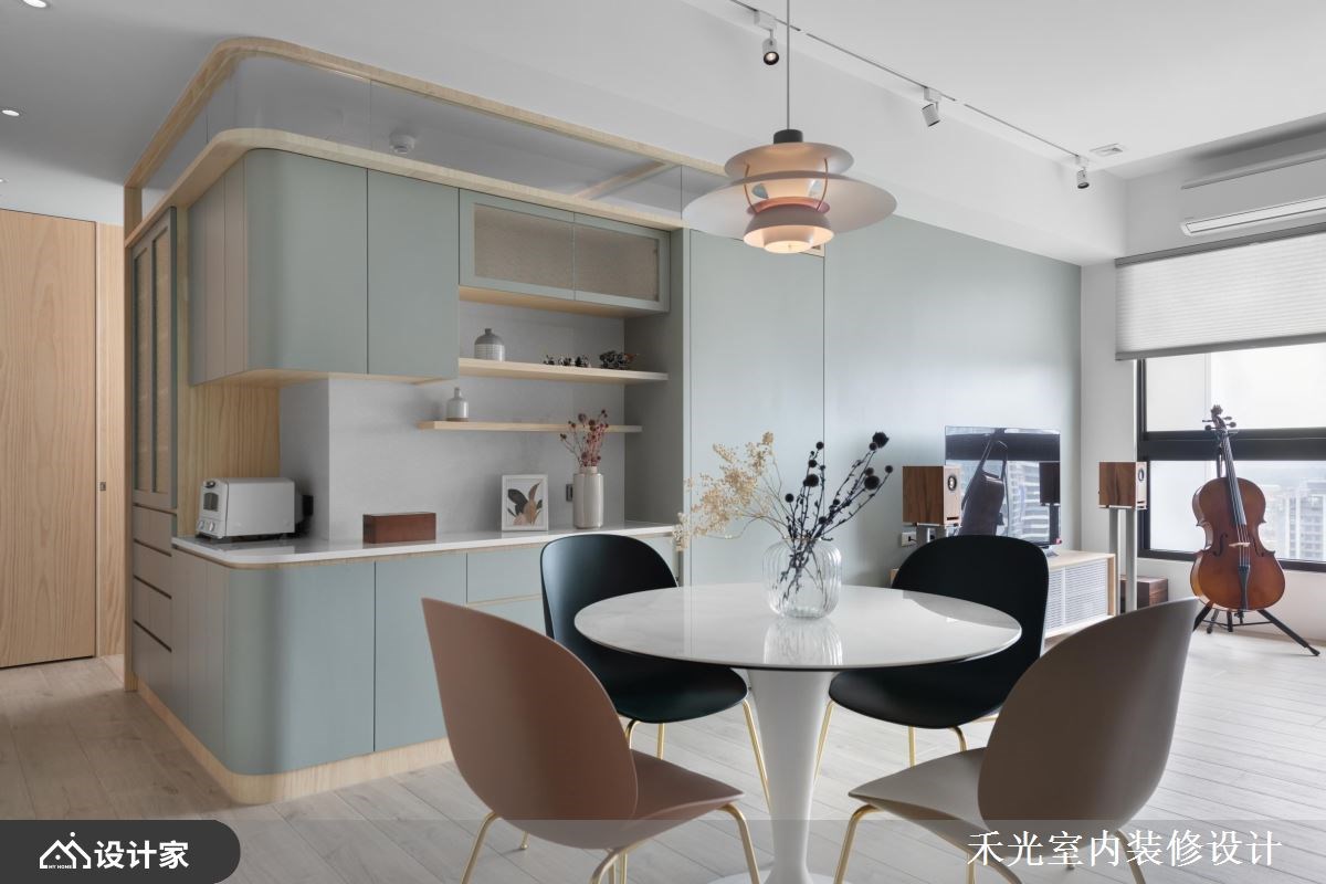 96平米混搭风亲子宅将大提琴的优美乐音,挹注进莫兰迪绿的家居空间中,且透过圆拱、木质的柔和搭配,以及系统柜与层板的机能配置,满足一家人对于生活的美好想象。 【拱门和鞋柜,开启亲子宅的序幕】 一进门,设计师以拱门造型分隔出落尘区的范围,为空间赋予可爱的活泼感,而左侧步入式鞋柜藉由花纹玻璃增加透亮度,以及透气的折门提升内外的空气流通。而圆形餐桌则成为室内动线的缓冲,也是一家人聚餐的最佳场域;一旁餐边柜运用弧形修饰边角,照顾孩子走动的安全,同时柜体跟卧室隐藏门、客厅电视墙作整合,形成视觉上的一致性。 客厅舍弃庞大的茶几,改用机动性较强的移动式家具,打破传统格局的制式框架,让亲子可以坐在超耐磨木地板上一同游戏,或是邀请亲友来聆听大提琴的小型演奏会,实现多采多姿的生活景象。而公领域的畸零空间则规划为简易的阅读区,上方层板可以摆放父母的书籍跟特色摆件,下方书架则能够收纳孩子的童书绘本,实现家里也能拥有小小图书馆的梦想。 小编的最爱 私领域延续公共空间的莫兰迪色系,以及温暖的木色调,无论是爸妈的主卧或是孩子的小天地,都规划满满的系统柜与机能家具,成功为一家四口营造既放松又便利的生活空间。