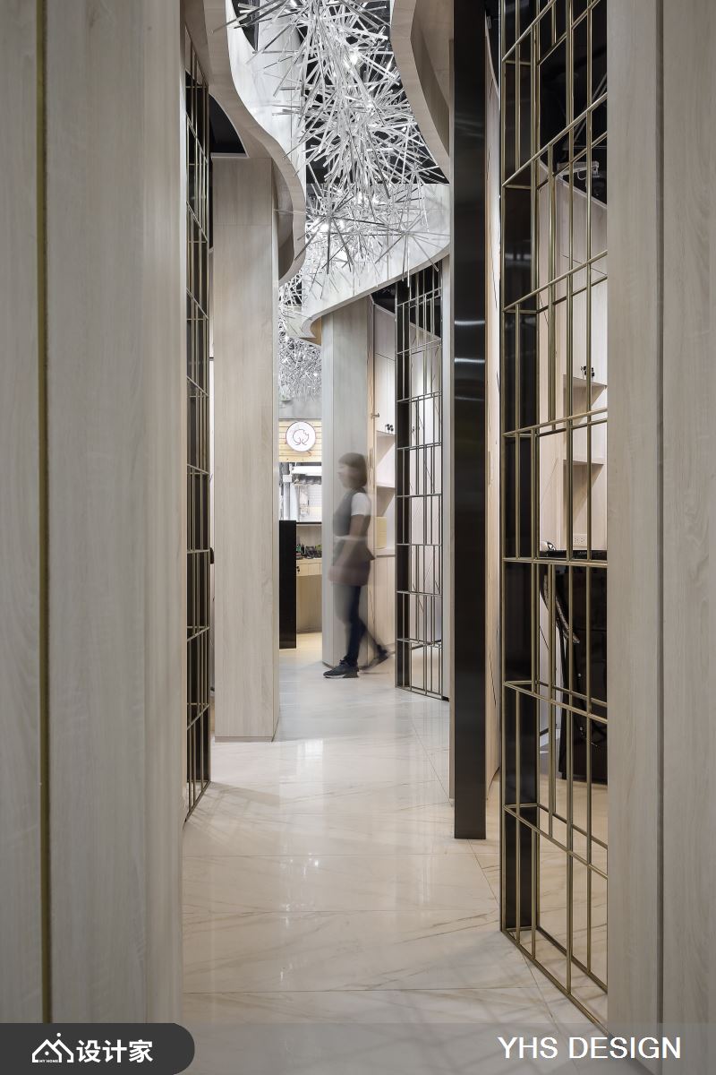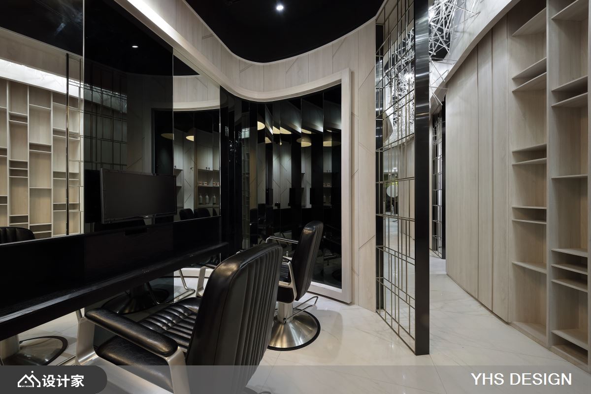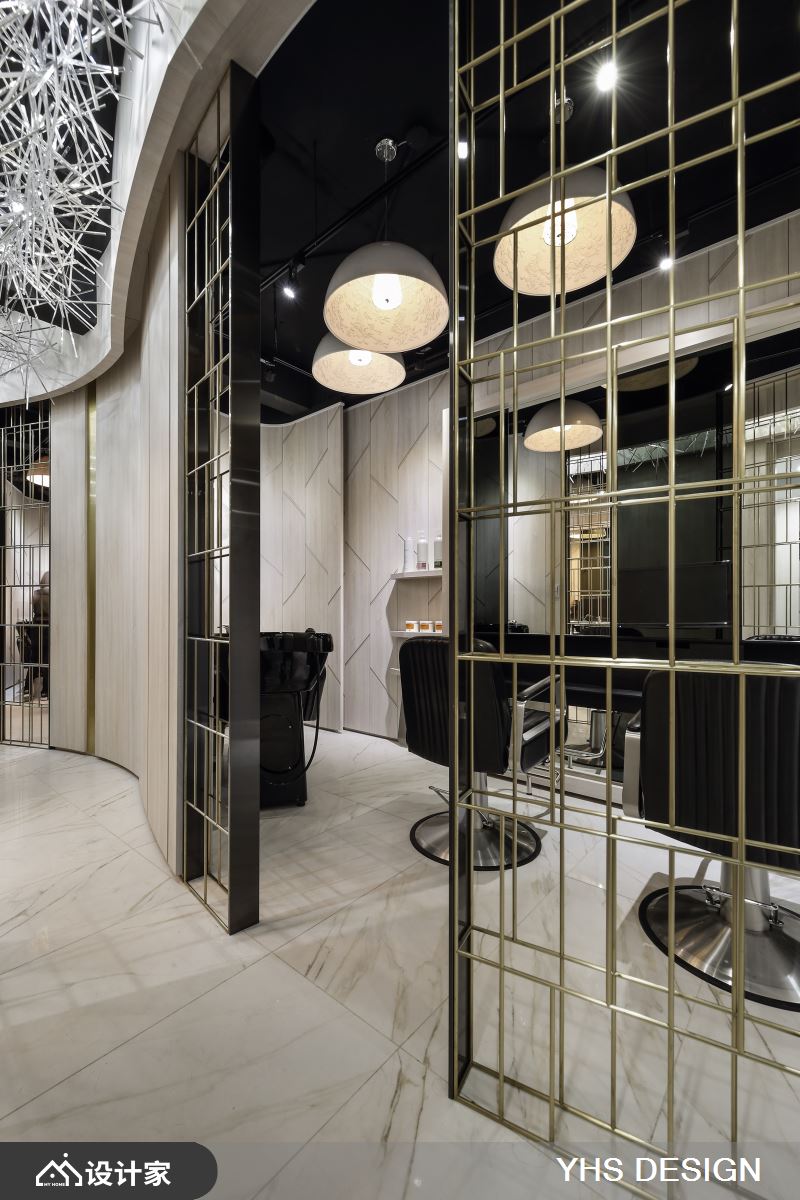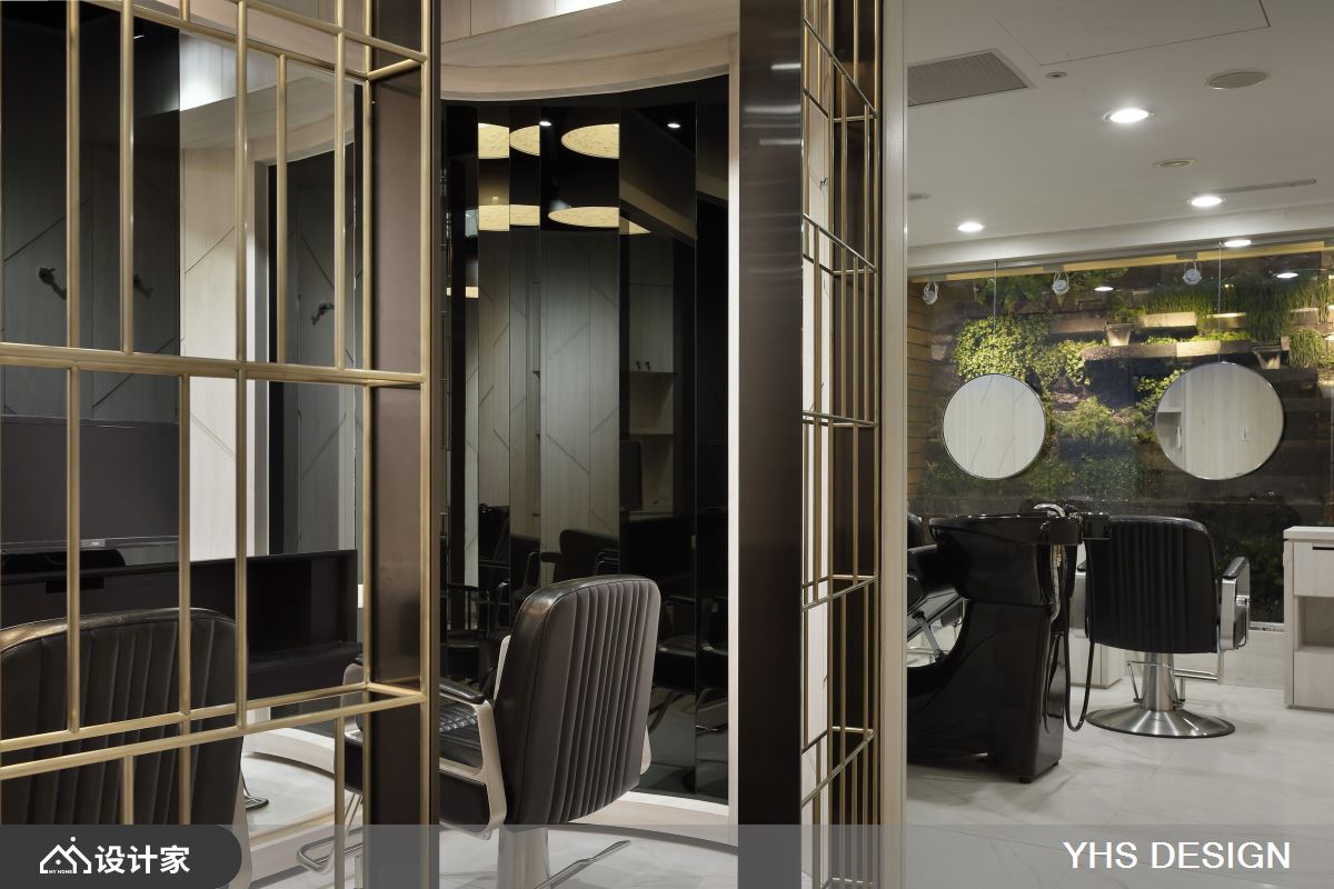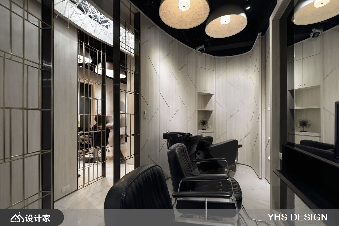 小编带你看好宅 集美发与美容为一体的空间,设计师引用「无形」的灵感概念,透过不突兀,不张扬的设计表现,潜移默化去塑造空间属性,让人可在烦扰的都会中、寻得放松之感,快跟着小编一起来看看吧! 设计师突破理发店的单一印象,让接待区与理发间加以区别,使用透明的压克力棒妆点天花板,平时低调地隐于顶部,当灯光点亮、光影折射天花板时,则形成精彩如银河般的风景,给予人轻巧的空气感印象;同时,用「圆弧」和「蛋形」划分理发空间,运用包厢式的规划,让每个小空间内都囊括一个冲洗台和两个理发台机能,而起伏的弧形墙面,则将机能巧妙隐于设计之中,藉由金属隔栅、木纹墙面虚实相生,把琐碎和驳杂幕盖于线条之内,使空间显得完整而流畅! 小编的最爱 设计师将空间做出延伸,透过绵延动线,顺势引导客人步入后方,产生一探深处究竟的乐趣;而从入口到底端,则打造一水景作为视觉尽头,借着绿意的渲染,营造自然风情与柔美生命力!