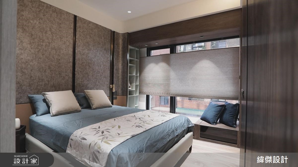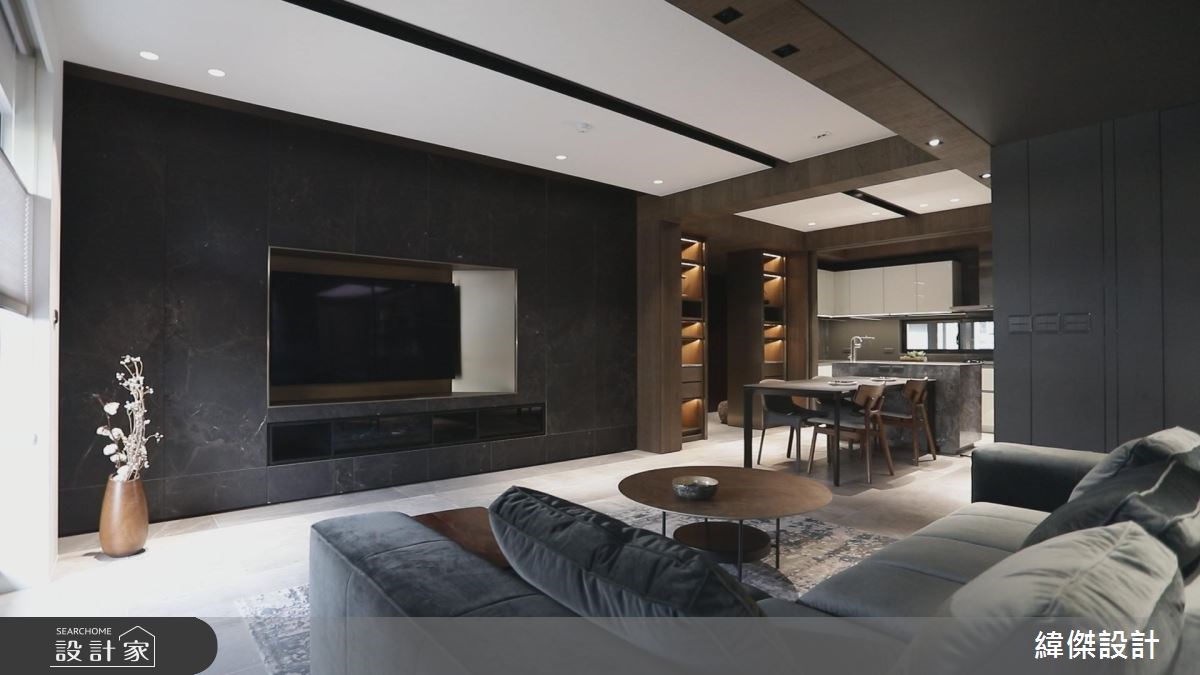 设计师以建筑学的专长出发,从客变时期就将阳光、空气、水的流动,注入 36 坪的现代风住宅,同时体察业主喜爱明亮的空间质感,选择深色系的大理石、薄岩砖等建材搭配光影变化,衬托出专属一家四口的放松稳定感。 【客厅向后退缩,营造大宅气度】 客厅电视墙透过深色薄岩板隐藏钢梁和收纳柜,中间运用仿镀钛金属板作斜面的框体,跳脱方正的制式束缚,创造丰富的三维效果。沙发背墙本来位于横梁之下,设计师巧妙地把墙面向后退缩,并运用深色框体包覆,把整体色调延展至餐厨空间,打造宛若165平米住宅的室内气度,让一家四口回到家能够轻松呼吸。 餐厅使用木质材构筑空间框架,梁下自然形成电器柜、收纳柜,而中间则规划T字型的中岛及餐桌,让亲子间可以边做菜边互动,且不影响动线的流畅度。设计师善用常被忽略的过道,平常可以自在走动,而当玻璃门拉起时又能成为独立书房,同时在书房跟琴房间还规划了固定窗,使阳光可以照亮每一个生活空间。 小编的最爱 主卧修饰原有钢骨结构,转化横梁压迫为高雅床头墙,墙面两侧的弧形曲线也减少边角的突兀感,让整体更加符合业主想要的休闲氛围。另外,设计师也刻意增加收纳柜的深度,与床的尺寸切齐,提升睡眠时的安心感。