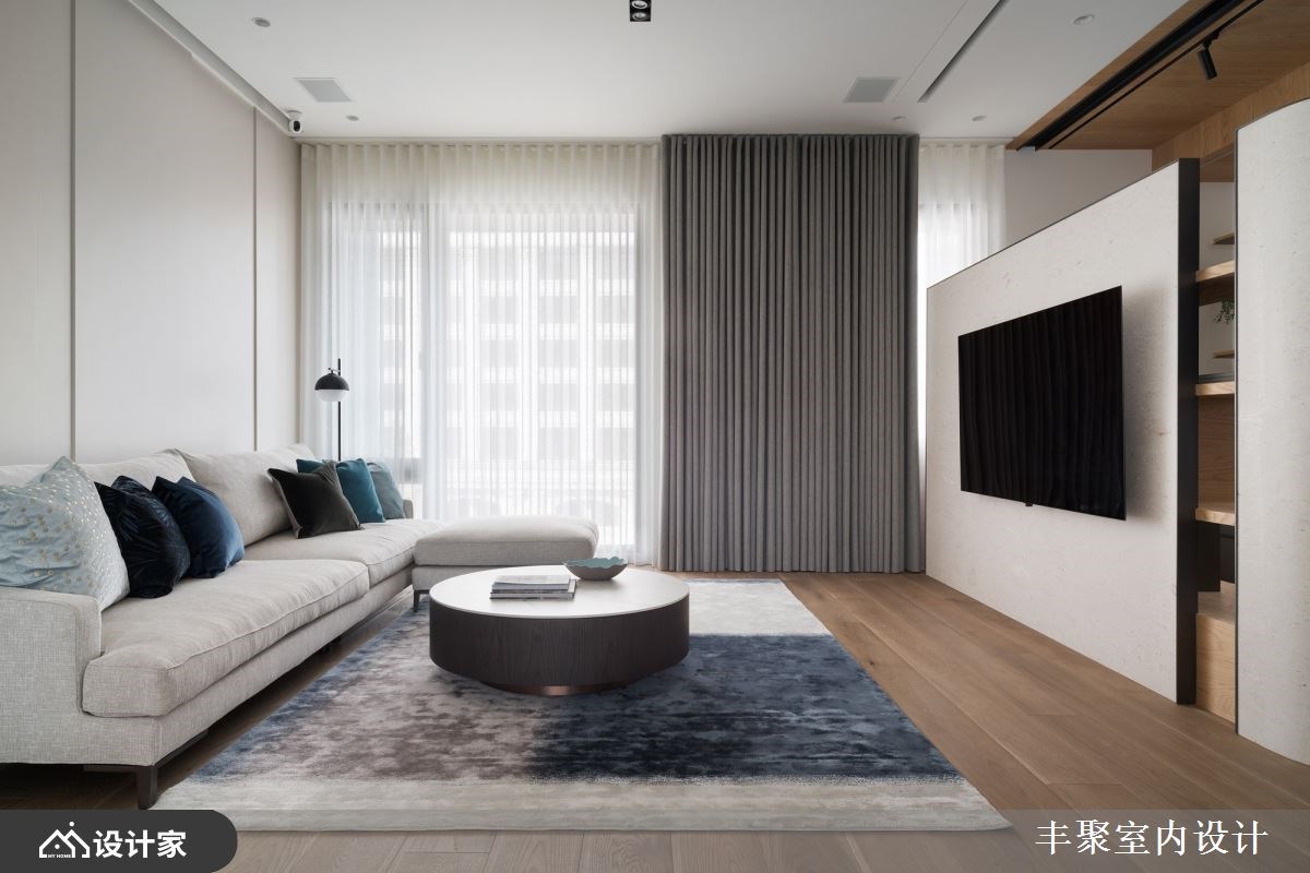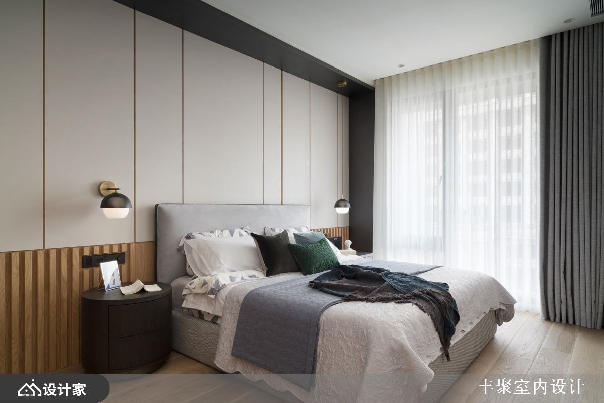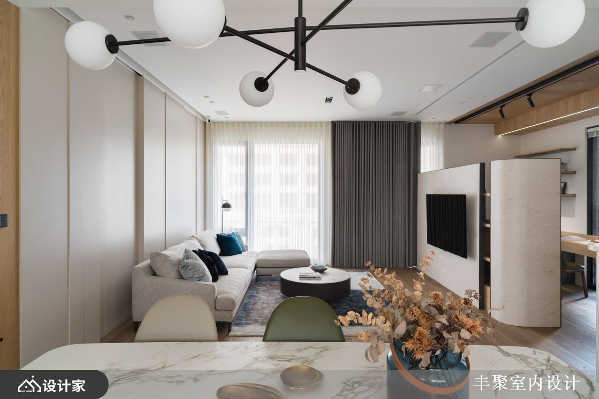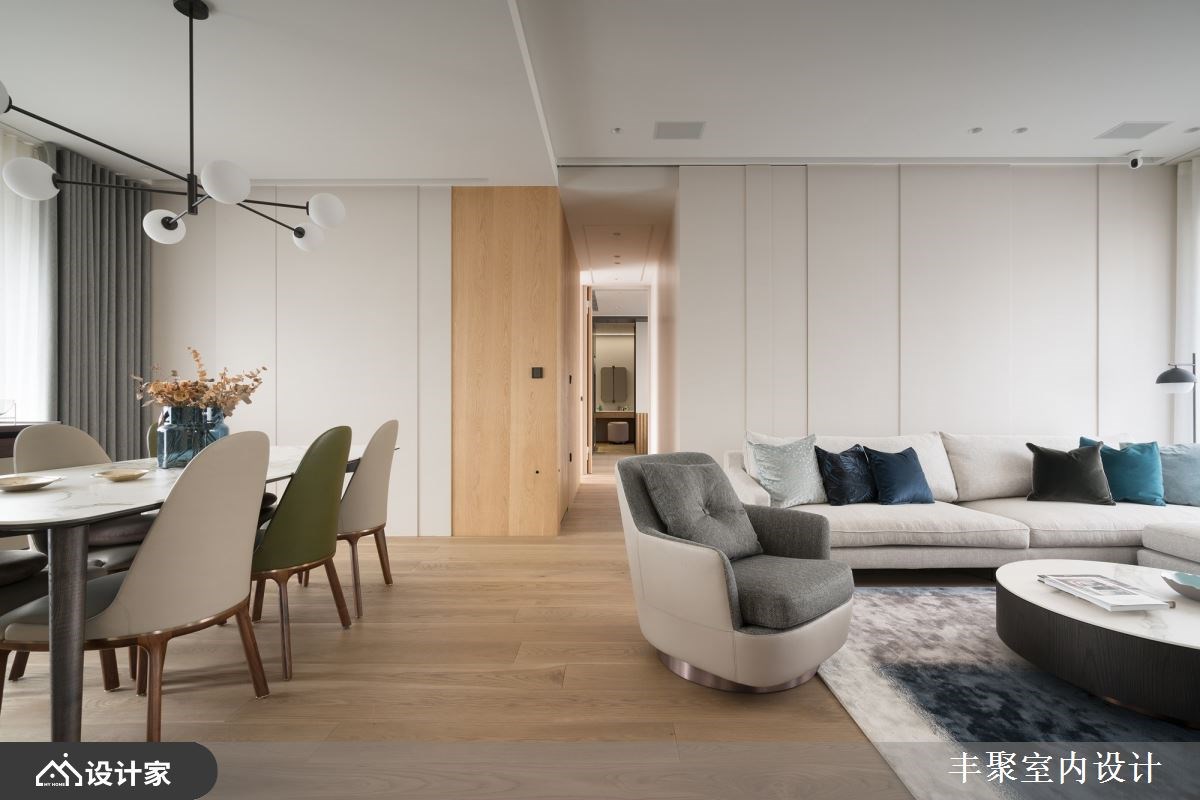 已经是第三间住宅交由丰聚室内设计操刀,一层一户的条件下,设计师将外玄关纳入规划,让一家四口的鞋履与杂物都收整于外部,释放室内收纳的压力,保留下完整41平方米的室内空间打造更舒适开阔的三房两厅。微调半毛胚屋格局,拆除卧房原始隔间并更改门口位置,同时优化客厅动线与采光,让采光落地窗有空间规划成阳光书房。重整后公领域更加完整,客餐厅与卧房区设计一道自动门,完美区分公私领域,也化解进门即见卧房的穿堂煞。 【设计与机能并行 赋予优质居住体验】 醉心于五星饭店的完备机能,又在日旅游的经验中对于日本居家都有地暖系统设备觉得贴心,因此设计师在海岛型木地板下全室铺设地暖,从客厅、卧房到卫生间,赤脚感受实木地板的暖传从脚底传到心里;两间卫生间也配有全自动马桶、电热毛巾架以及暖风机,打造最贴近人心的设计。 北欧风设计与柔和杏色包裹的空间形塑家人最向往的温馨氛围,精选德国精品开关面板、进口灯具以及定制家具堆砌出住宅的质感;儿童房也挑选比利时进口儿童床组,让孩子们能在最适合的空间里成长学习。除此之外,设计师替女屋主打造绝美的独立更衣间,订制的化妆台能让屋主大方展示收藏的香熏与彩妆用品,用室内设计宠爱辛苦的女性。 小编的最爱 为方便要准备料理又要照顾儿童的需求,设计师将厨房开口与操作台面位置重新配置,并将中岛吧台概念置入餐厨空间,透过局部篓空的设计手法玩转封闭式厨房的表情。视觉上女屋主在做菜时抬头就能看见用餐区,让料理者不会有被隔离的感觉,也方便照顾小孩招待亲友,传递菜肴也更加方便!