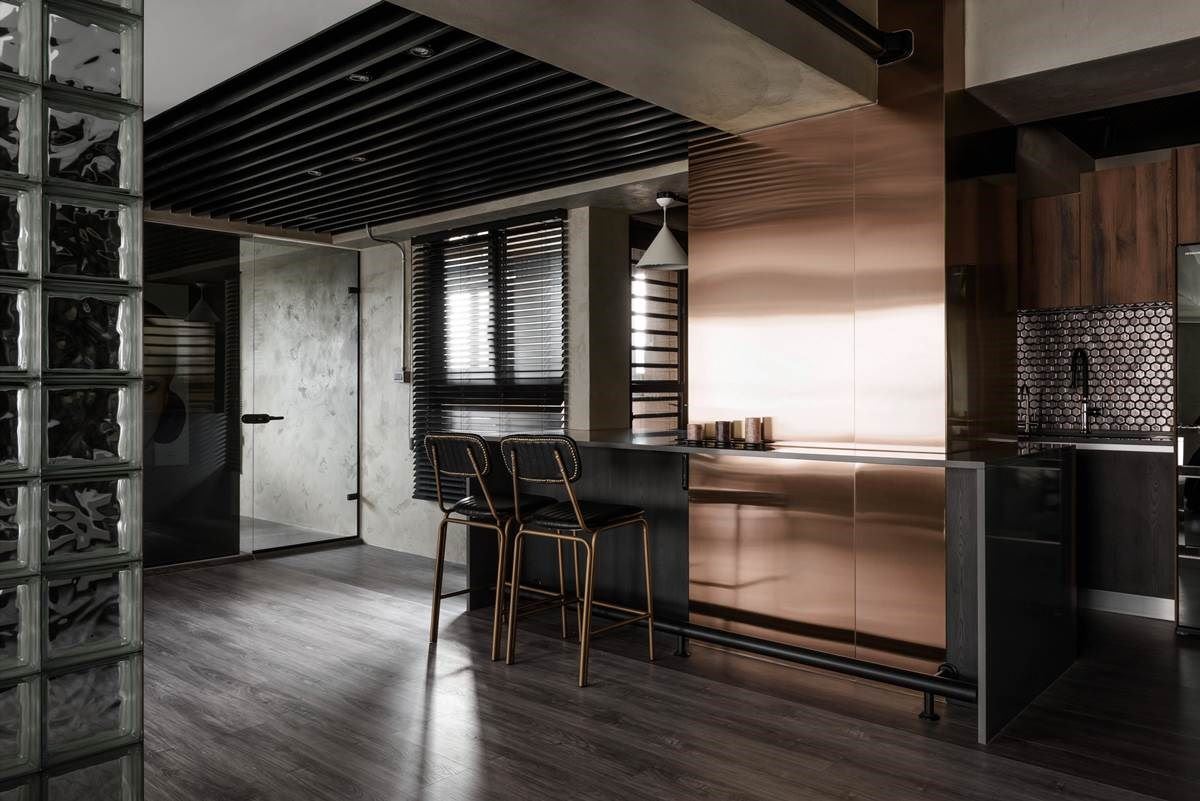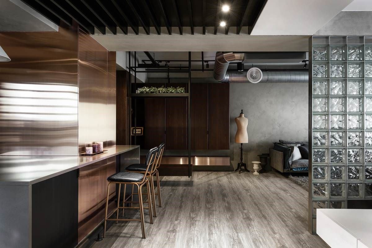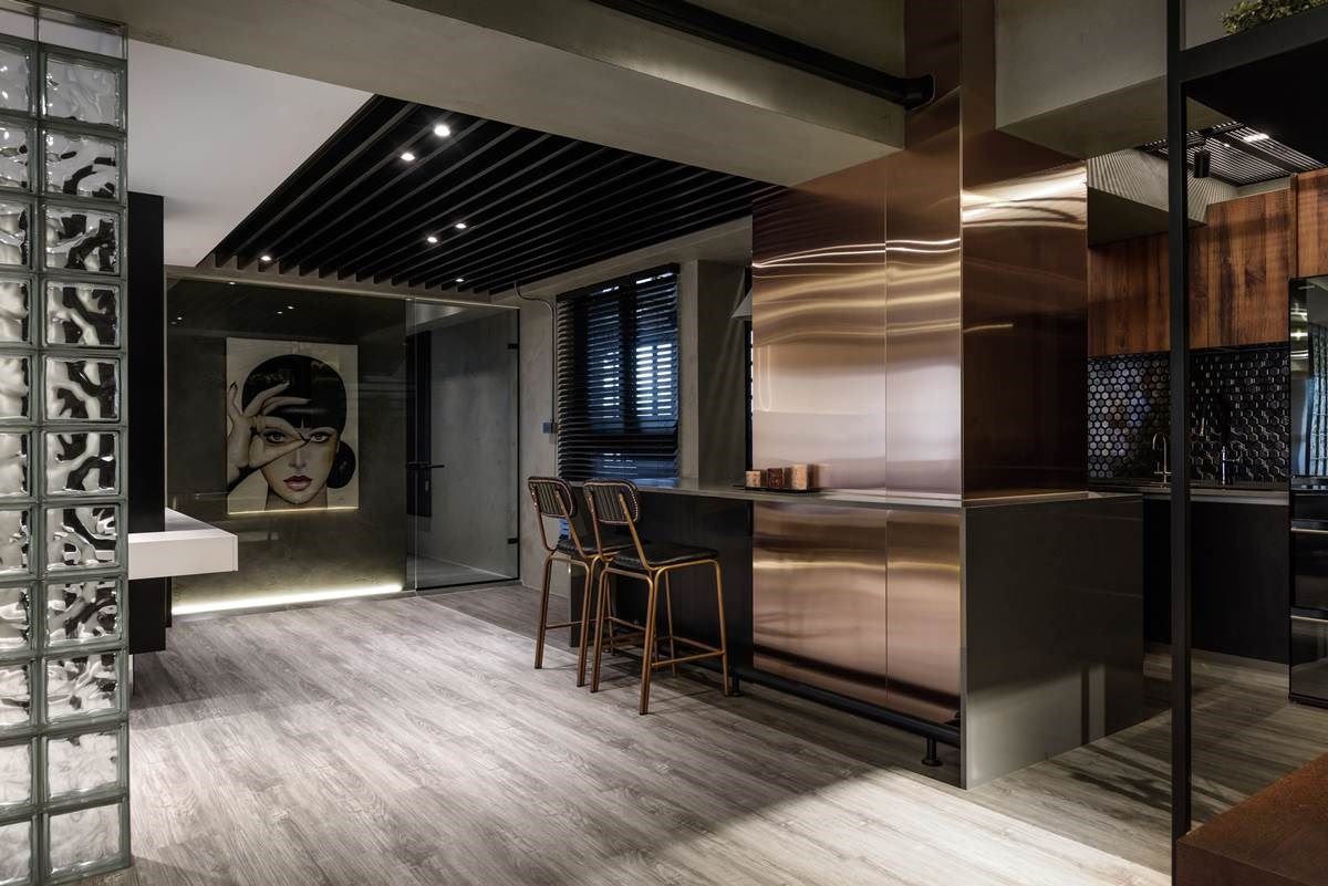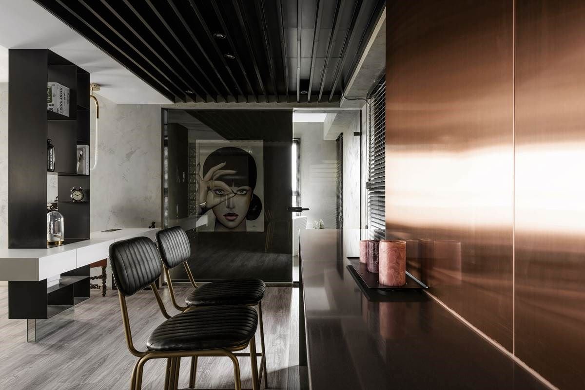 “当你去摹仿其他人的创意,你的作品再完美也只是第二,我只想当领先者。”法国传奇时尚设计师皮尔卡登曾如此说。对于不断尝试空间设计的浩室设计,不断追求美学灵感,了解屋主内在对家的需求,让情感与创意交织出独一无二的作品。 此案为 30 坪的单身宅,利用工业风色彩打造整体空间,揉合金色镀钛、不锈钢与手作涂料等材质,粗犷与细腻的特性之中,透过异材质的混搭术,搭佐人相画作的艺术美感,营造出具戏剧张力的风尚家屋。
