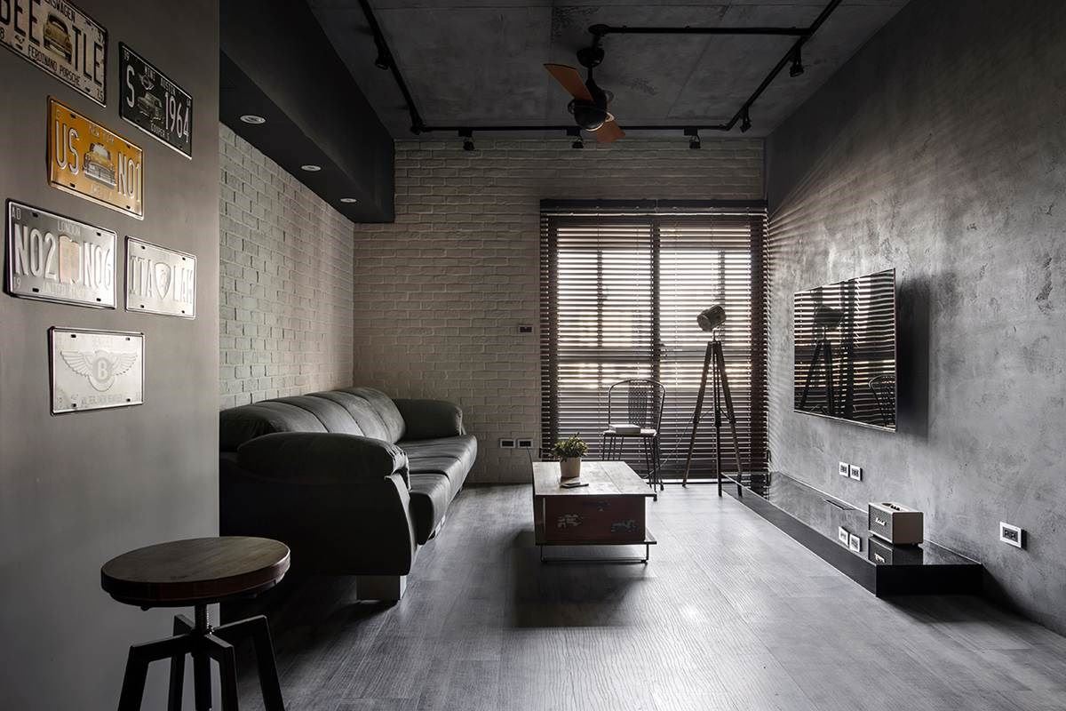 墙面是空间独特的表情,白色文化石衬出洁净气息,铁灰特殊涂料则铺设出无华的空间感,加上复古车牌的点缀,展现美式休闲的风貌,伴随自然光的洗礼下,丰盈居家场域。