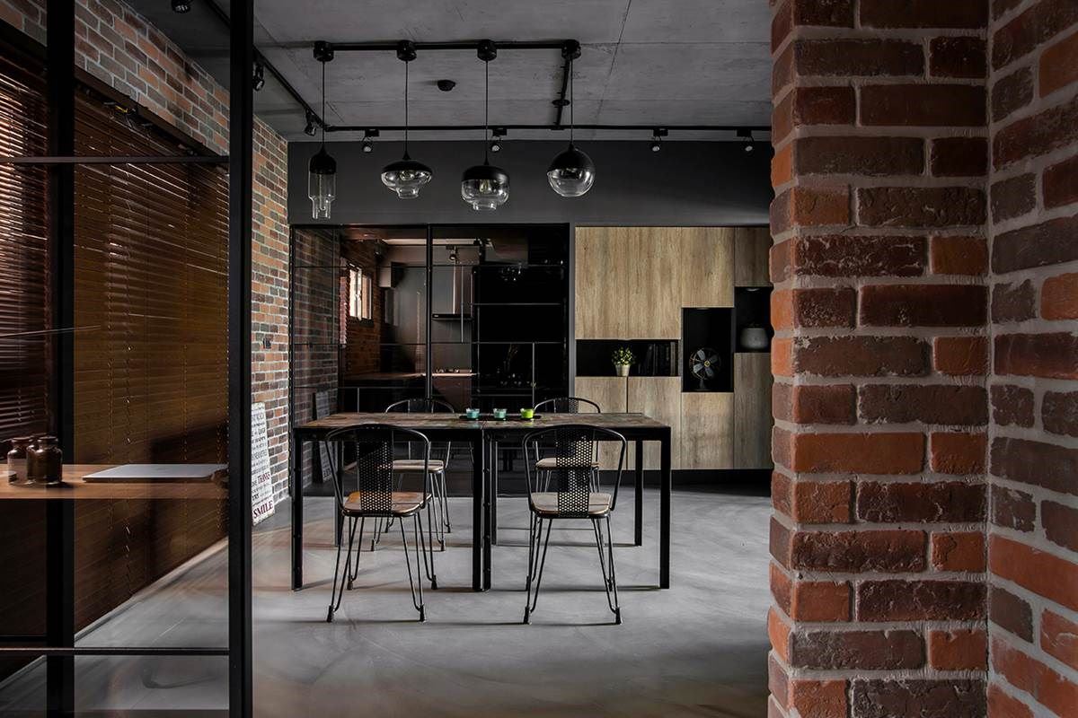 灰玻铁件拉门成了领域绝佳界定,穿透视野将空间的细腻美学尽收眼底,从深浅窑烧文化石的壁面烘托餐厅主题,铁件材质缀饰下,伴随吊灯的微醺亮度下,增添迷人的时尚氛围,到梯型展示柜体所形塑的视觉趣味,勾勒出具景深、故事性的欧美影集场域。