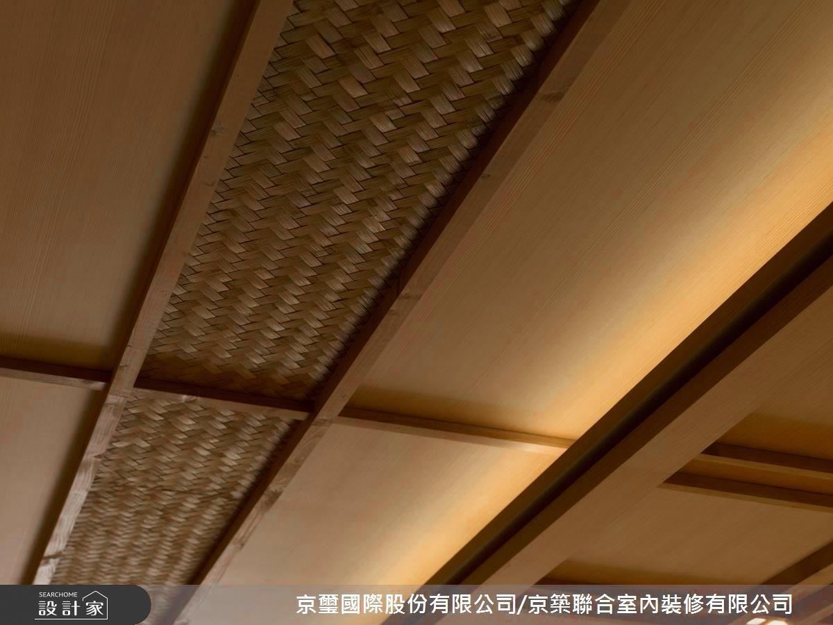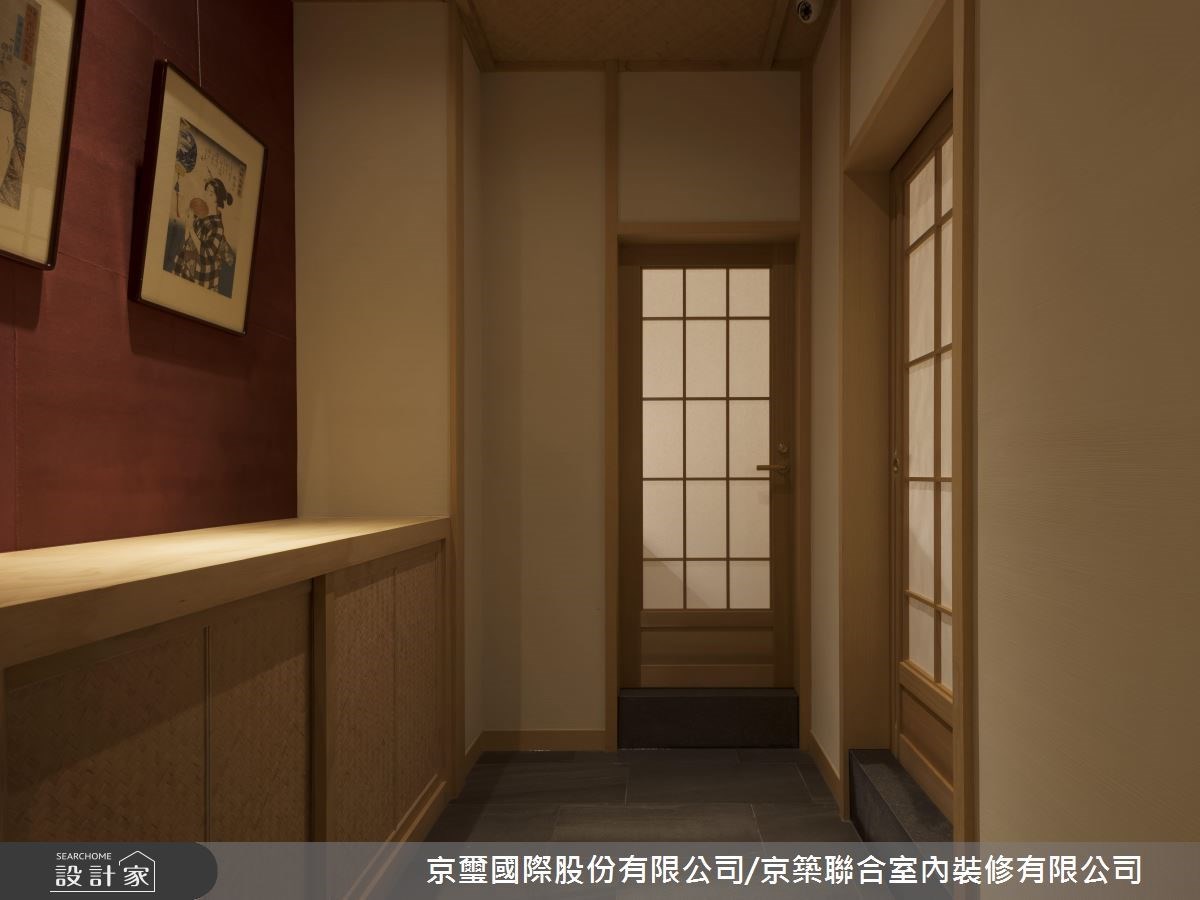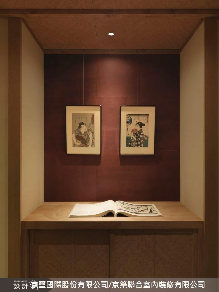 傍晚时分,天色渐渐暗了下来,台北街头这处 83 平米日式料亭入口,由「绵平织」暖红帘幕、「京都云龙面板」灯箱交织出温暖而低调的光氛,衬托着一旁木质门扇,迎来浓厚的传统和风料亭氛围,彷佛带着过路行人或前来享受美食的饕客,置身一回日本江户时代,体验韵味十足的怀旧风情。 推开木格栅门扇,满版的富士山艺术图象映入眼帘,为顾客献上第一道视觉飨宴。坐等美味佳肴时,细究这幅手工艺品,其精细的制作手法可追溯至日本飞鸟时代,由桧木与杉木等木片组合而成的几何图腾,完整勾勒富士山头雪白积雪样貌与云雾缭绕的自然风景,将艺术之美结合精致料理,带给饕客惊喜的日式用餐享受。ㄇ 字型的板前规划,打开现有坪数的视觉空间,让推开门的那刻起,即能将这幅富士山景画尽收眼底;比照传统日式屋檐打造的木结构天花板衬托着大幅艺术作品,则揉合了艺术与室内设计,奠定沉稳而壮阔的餐厅气氛。此外,开放式厨房理念,也拉近了顾客与料理长的距离,能轻松随兴地谈天,也能近距离欣赏师傅们的料理手艺。 小编的最爱 廊道上,手染蓝色丝拉夫布的垂幔、和纸墙上摆挂的浮世绘画作,蔓延着浓厚的日式风情,各领域彼此相互呼应,由外而内串起完整的江户时代景致。