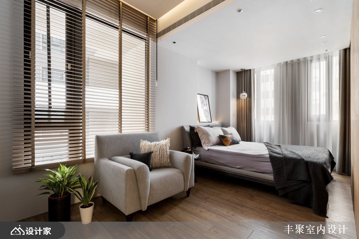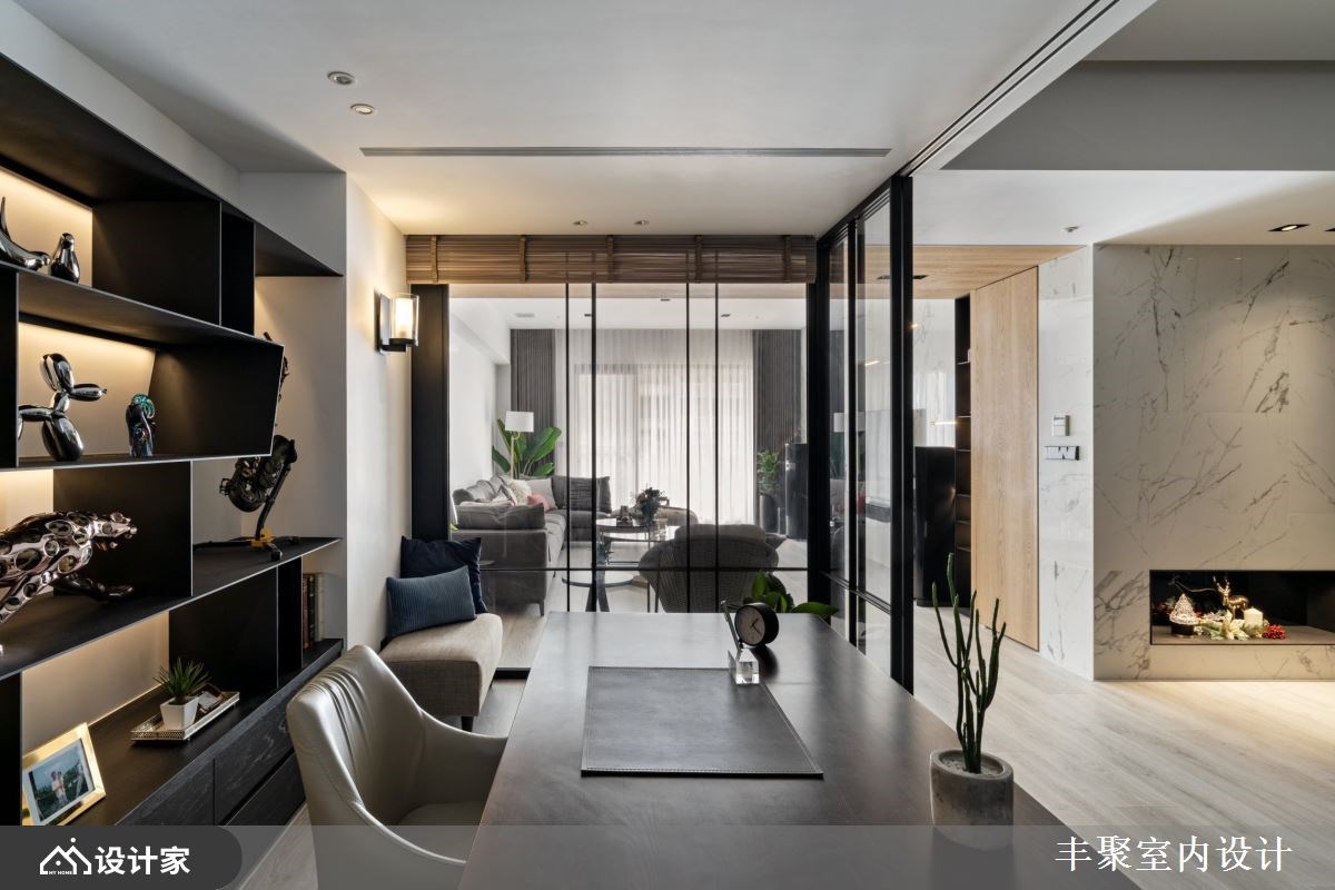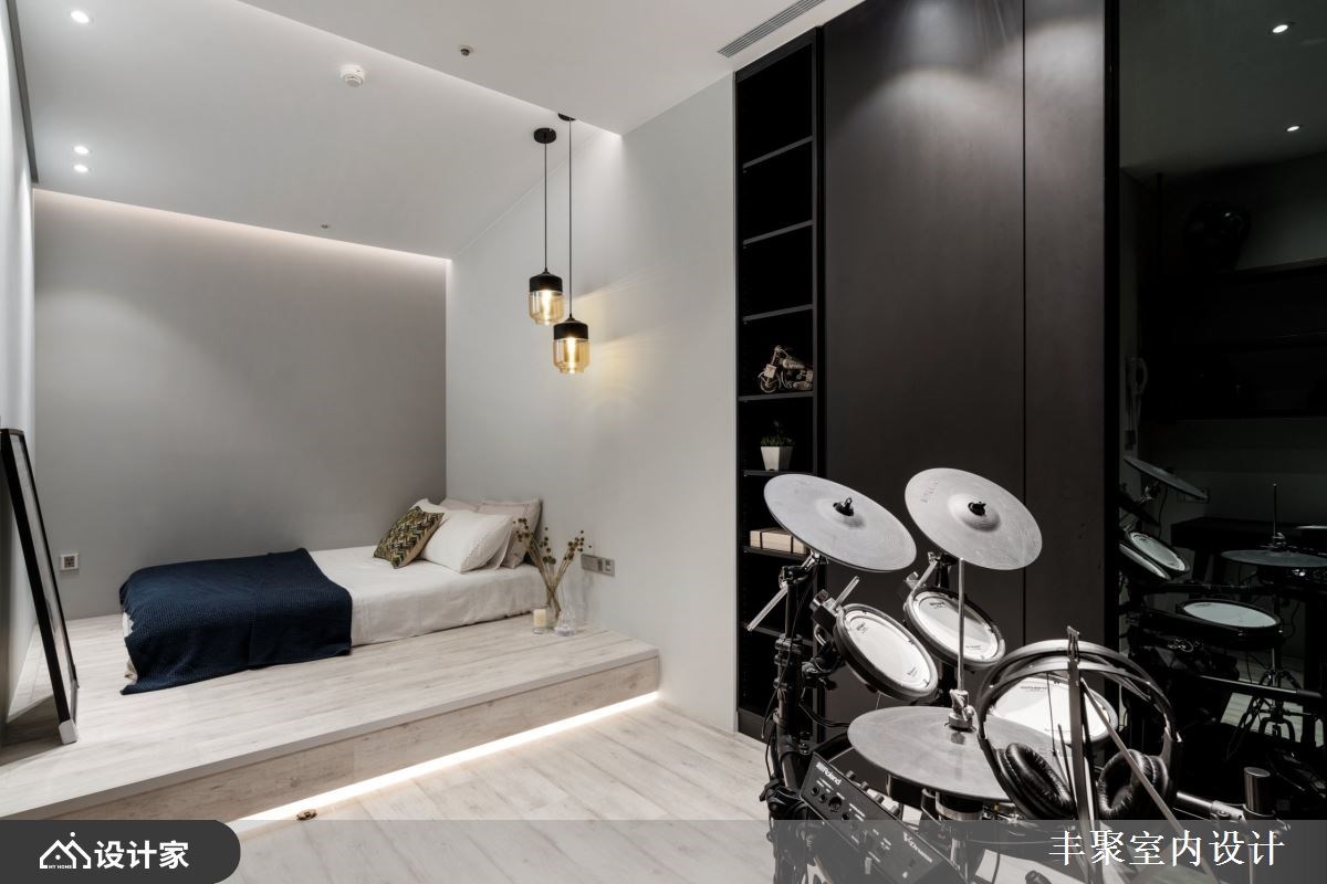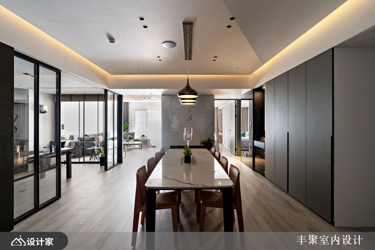 小编带你看好宅 从毛胚屋开始进行缜密的全室规划,67 平方米的豪宅里以流畅的动线与良好采光作为放松生活的基本框架,由开放式中岛厨房为放松舞台向外发散,辅以精致的建材与低调现代的设计细节,替下班后的放松生活带来为完美的即兴演出。 【用现代设计打造蓝调生活】 妥善的空间布局让宽敞的客厅依然能够照耀到自然光线,为保持心理需求的隐私性与视觉体验的通透感,借由轻隔间当作场域之间的分界。开放式厅区中由木皮包覆的大梁收整了吊隐式冷气出风口与维修孔,并顺应造型设计将电器柜与储藏空间结合,化繁复为简约,凸显宽敞空间带给屋主们的轻松与惬意。 建材上从磁砖、花砖到开关面板都挑选进口商品,让建材的质感衬托现代设计,也让身为建筑师的男屋主可以与同业好友在厅区相互交流设计灵感。五居室在门片内部加装隔音材料与隔音压条的双重加强,并辅以灯光增加视听情调,卸下豪宅过度奢华的不安感,不论在自己的居室或客餐厅都能享受蓝调设计的张力。 小编的最爱 把室内设计当作爵士来编曲,黑白灰的沉稳基调下利用木纹与金属设计当作生活节奏的切分音,中岛厨房嵌灯照明植入丰富的变化,四间居室也通过材质比例的分配营造专属的独奏片段,在独具个性的设计下感受到全室风格的和谐,让家人的互动自然生成。