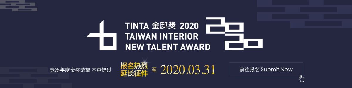 为因应报名征件反应热烈,TINTA 金邸奖即日起将展延报名截止日期至 2020 年 3 月 31 日( 二 )截止。欢迎 40 岁以下( 含 )优秀室内设计师,把握最后机会,一齐竞逐年度金奖荣耀。