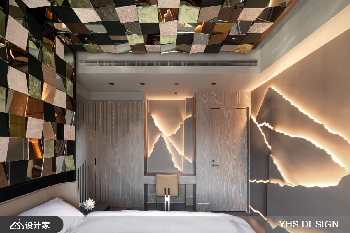 小编的最爱 此住宅特色为镜像的表现方式,镜面与多元媒材、光影深浅的交错中,堆叠出有如艺术般的视觉感受,不仅提升空间层次,在相互反射的镜象中,更存在一种连续性的波动。三间卧房的设计尤其将镜面创意發挥极致,先挑选出各自卧房主色系,并透过同色系建材搭以金属材料,照射出专属每个空间的光影美学,主卧更透过牆面凋刻工艺搭配间接光氛带入山水意象,其细腻手法与新颖创意订製出与众不同的私领域想像。