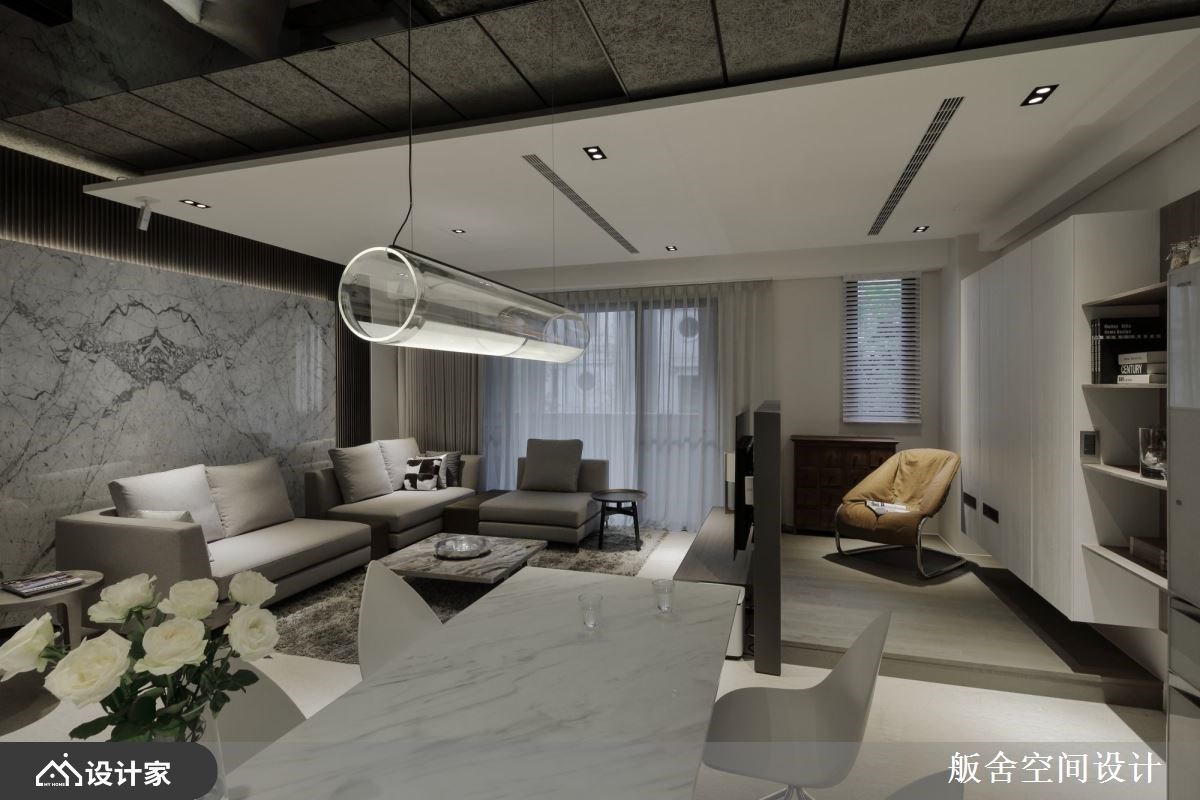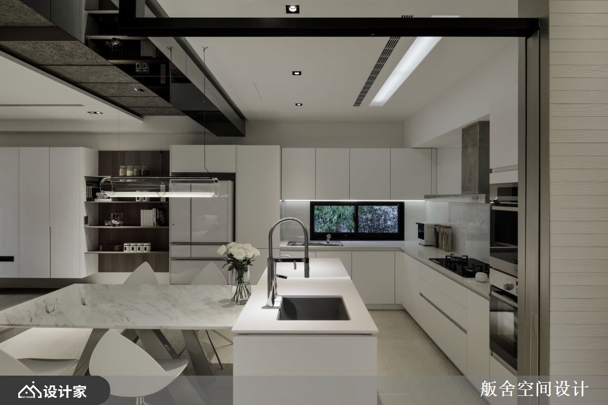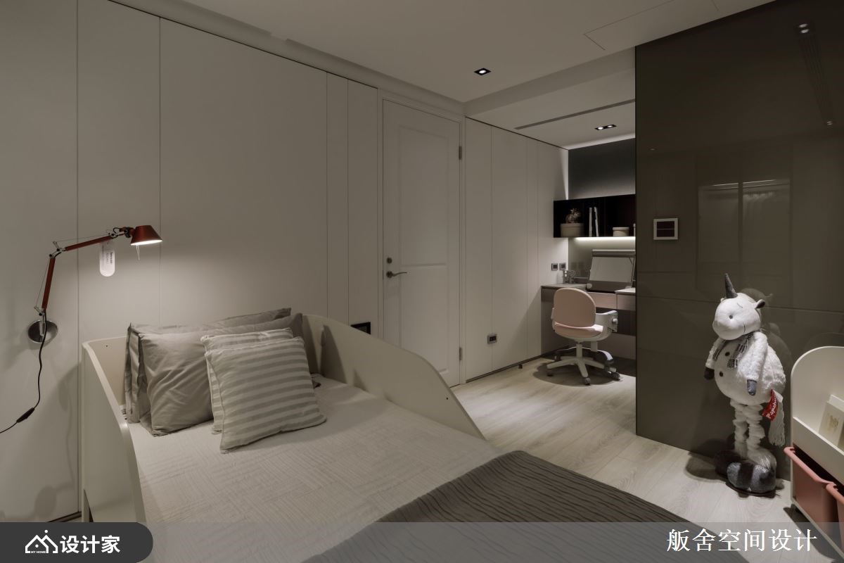 380平米的六层楼精品别墅,承载着一家四口的生活愿景,设计师透过白灰黑等低彩度色调作为空间主视觉,同时引入窗外的露台景观,细腻融合人文、自然的深度精髓,营造公私领域分明、气质时尚洗炼的豪宅风貌。 【玻璃推拉门,界定清晰动线】 途经一楼车库,脚步来到步入式鞋柜,灰阶的柜体表面定义精品别墅的视觉主轴,并贴心搭配仪容镜、穿鞋椅,让人卸下全身的疲惫与尘埃。拾级而上,开放式公领域张开双臂迎接晚归的人,餐厨空间的玻璃推拉门划分了清楚的生活动线,贯穿上方的横梁则选择灰镜装饰,与一旁天花板的喷漆美丝板,形成色系相似、建材相异的混搭感造型。 客厅电视墙采用意大利板岩砖妆点,半高的墙面设计区隔出后方的架高书房,而沙发背墙则选择白色大理石结合柔音板,创造层次丰富的端景纹理,使人的心境顿时沉淀下来。主卧室整合睡眠区、更衣间、卫浴空间,并以玻璃隔断作为机能区域的分野,配合充足的收纳柜为夫妻俩量身打造专属的休憩场域。 小编的最爱 男孩房延续灰阶的空间主轴,玻璃建材的电视墙划分出开放式更衣间,衬托居住者利落简练的生活态度。女孩房无论是收纳床架、一整面衣柜或是隐藏化妆镜的桌面,都满足了女儿的日常需求,在未来默默陪伴她一路成长。此外,顶层规划为多功能的瑜珈室,升降桌面提供空间更多的机能弹性,身在此处能感受光影变化、昼夜更迭,禅意油然而生。