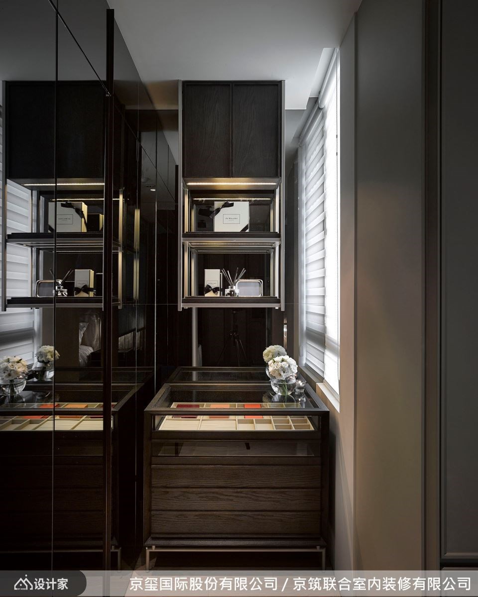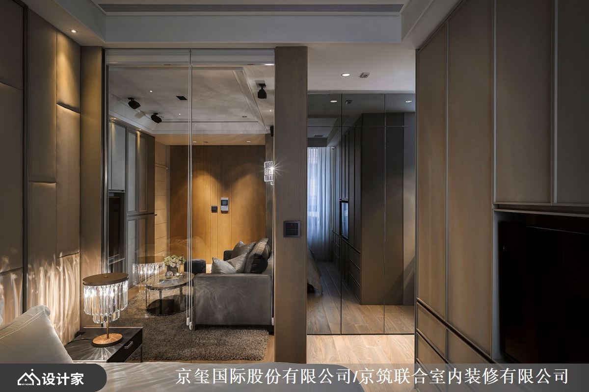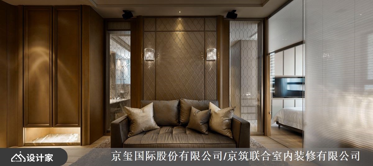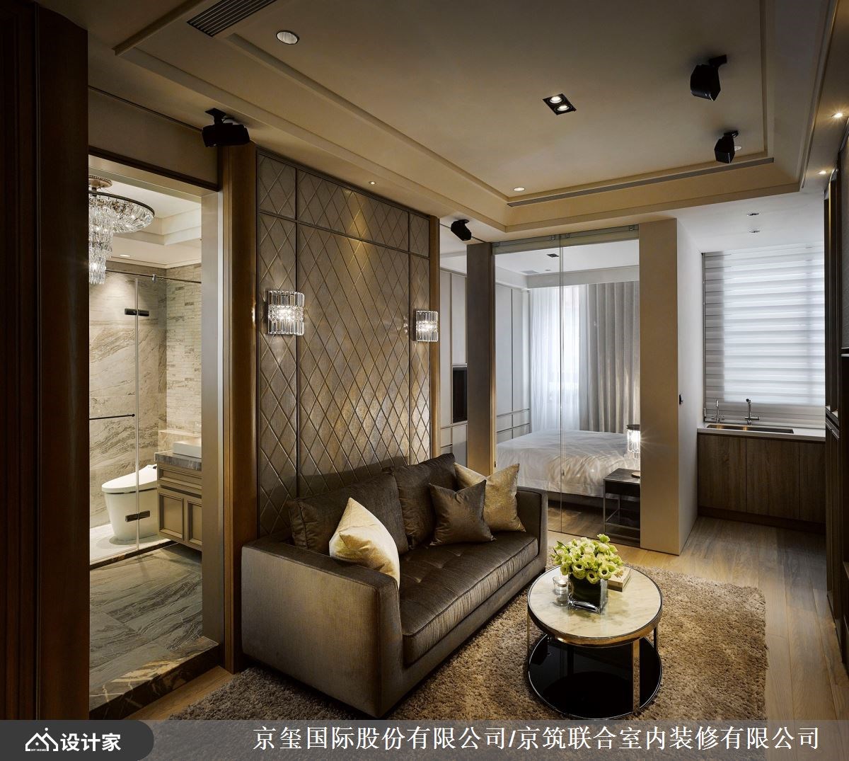 将时代的记忆与现代生活接轨,以上海租界时的古西洋风格为蓝本建构的 56平米小戶型,感受不到坪数带来压迫感,反而借由光影定调与开放式布局形塑优雅而宽敞的活动腹地。以金融贸易重镇“东方华尔街”的繁荣意象化为设计灵感,精准俐落的线条交织成几何图形建构出平面与立体空间;沙发背墙的菱格图案呼应着电视主墙的矩形阵列,让设计的语汇串连空间。室内梁柱、收纳与家具陈列皆依循线段比例诠释均衡美学;畸零空间被化整为零,在现代生活的步调里,植入时空与地域一步一景的设计节奏。 【以光的明暗谱写生活动线】 将生活机能做足却不做到过满的设计概念,能赋予空间与生活更全然的体验。 压低设计介质下,木地板铺陈客厅与餐厨区域凝聚开放式设计,浴厕借由大理石地坪转换,清楚明确地界定各个机能区域,优化厅区、厨房与居室等空间的关联,体现自由的生活维度。重塑空间比例与定调材质纹理后,空间内的配光即是点亮设计美学的关键。自然采光扮演着柔和空间的角色,而人工光源则勾勒出生活的轴线,玄关柜间接照明弱化柜体的重量感,壁灯消融了空间锐利的边界,水晶材质则为奢华繁荣的印象做了最好的隐喻。 小编的最爱 如同雕刻一座富含东西方历史精华的文物一般,低调奢华的韵味由垂直水平的隐形线条建构起空间的舒适感,石材、木质与玻璃三种主要材质搭配线条的切割建立起场域间的关系,玻璃穿透带着舒适的距离,而地材的延续与转换则暗喻动线布局。灯光配置的地点、造型与明暗不只是符合机能而生,还叙写空间的转场并引领生活步调,将地域与文化重整后诠释于空间,让居住者透过日常生活慢慢感受与体验。