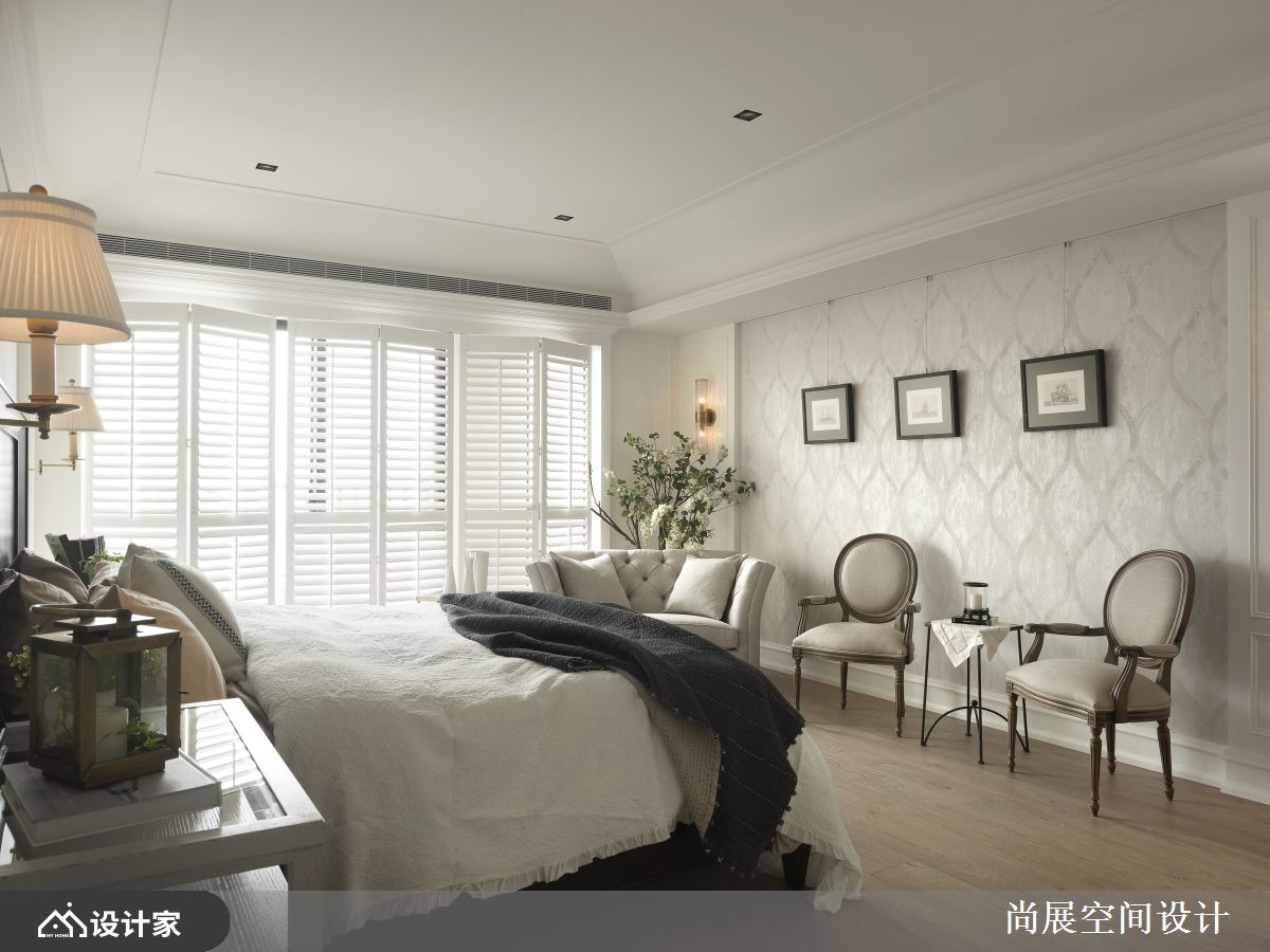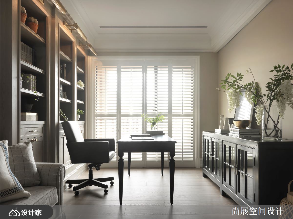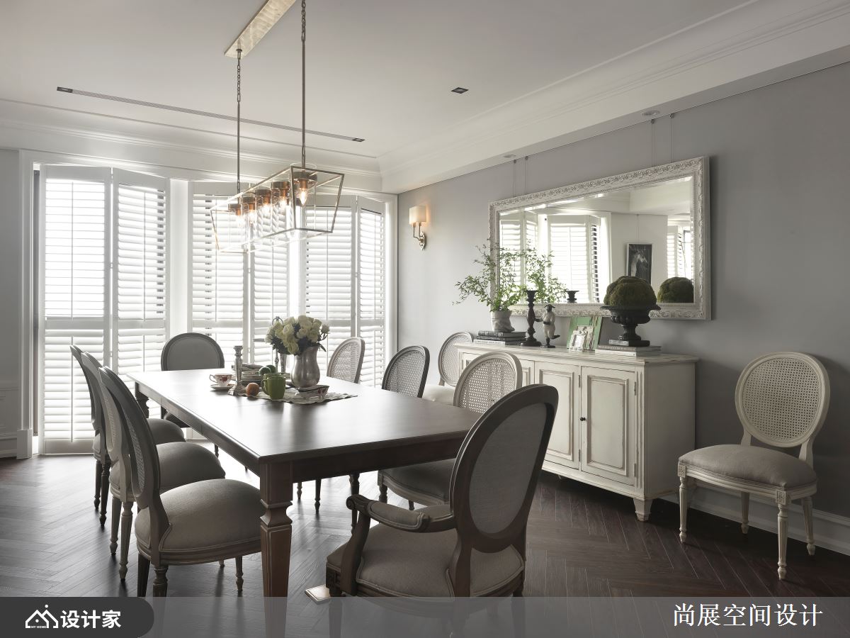 小编带你看好宅 三十年前移民加拿大的夫妻,待孩子长大成人后,决定迁徙回台享受下半场的退休生活,在参观尚展设计办公室与设计总监吴启民的自家宅邸后,由于欣赏其规划美式宅邸的美学与功力,在双方相同的美感共识之下,开启了这间美式古典大户型的设计起点,快跟着小编一起来看看吧! 入口玄关,透过篓空穿透的屏风促成光线、视线延伸流动,创造出美式庭园的模拟端景,并利用天花板与地坪材质差异,切割出隐形内外场域,交谊厅则呈现木屋式斜屋顶,一体成形衔接了电视墙,让交谊厅充满度假宅邸的美好氛围;色调上,采用美式古典的优雅白作为基底,家具多以浅米、杏色表现出层次感,选用 Ethan Allen 伊莎艾伦经典家具,打造出浓郁的美式风范,搭配坐东朝西方位,以百叶窗将美好光影引导入室。交谊厅、餐桌区则展现美式大户型的好客大方,对最重要的餐厨聚会区,摆放八人大餐桌做为中心,创造宾主尽欢的每一刻! 小编的最爱 主卧室营造出古典酒店的气度,以宽敞视野让心感到平静;次卧房则充满个人特色,墙面颜色、挑选的家具,都充分展现主人个性,无论是儿子房的清新抹茶绿、或女儿房的柔和浅鹅黄,皆洋溢着轻盈节奏!
