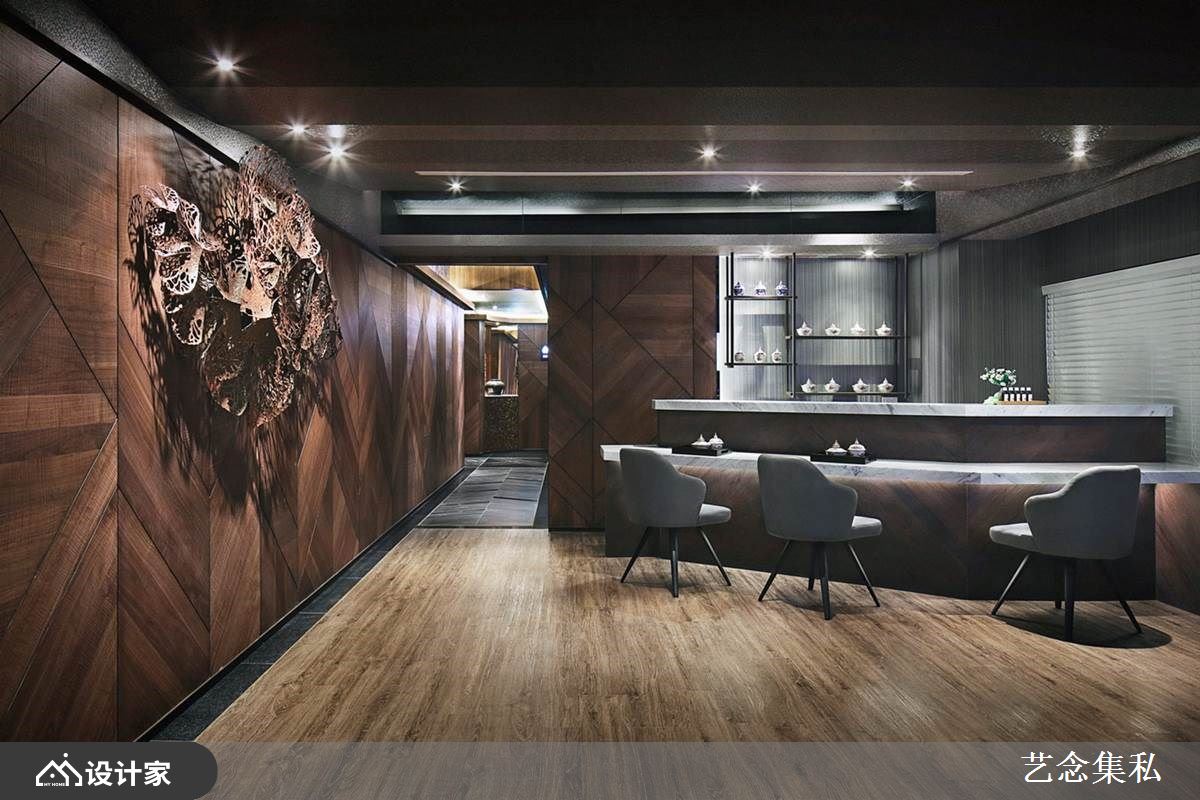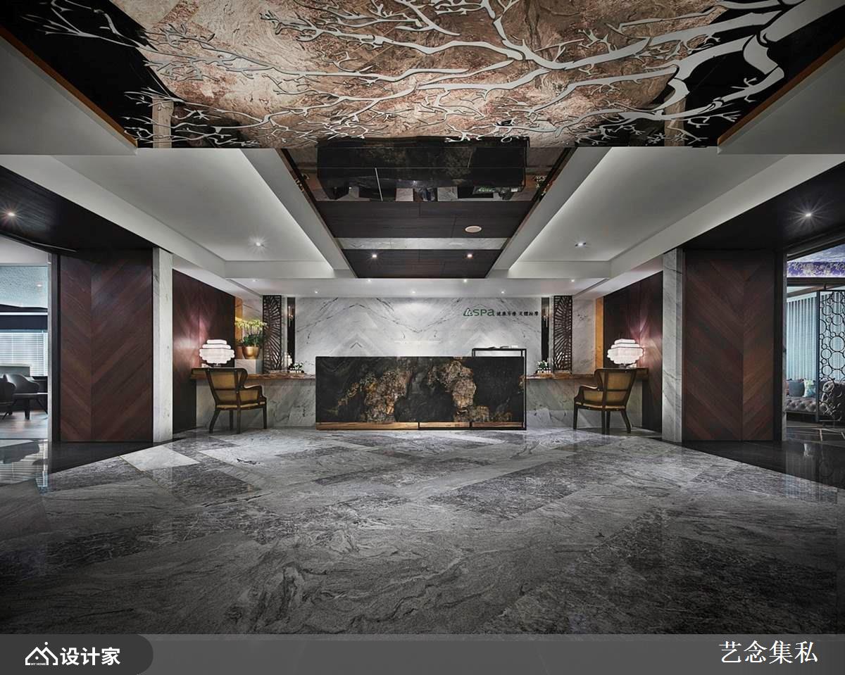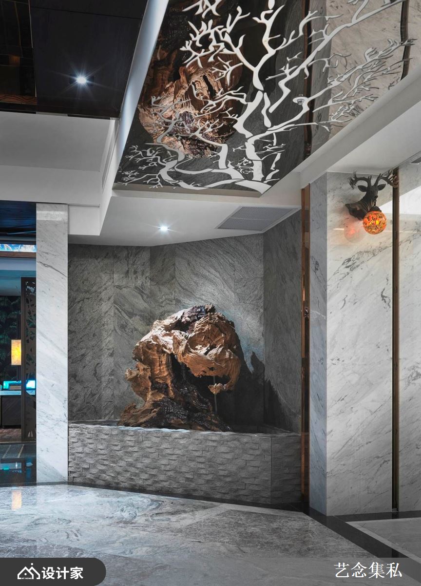 会所入口大厅两侧,运用自由奔放的奇岩枯木作为迎宾元素,呼应徜徉浪海的朴实怡情,与按摩会馆的形象十分契合。空间内部也藉由艺术摆饰与骨董品项加以点缀,提升空间的尊享感,让各角落处处拥端景,赋予更丰富的画面。