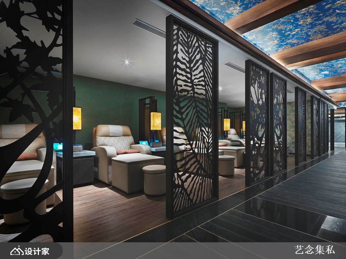 六星级 SPA 芳疗按摩会所 "森 SPA",挹注源自东方的磅礡情韵,藉由艺术陈列、灯光烘托及建材迭砌,揉入最真诚的人文精神,从接待柜台、足疗指压区到油压区等皆充满了立体感,使人感到惬意放松、流连忘返,在传统与当代的共生中,展现出既传统又流行的新式东方之美。