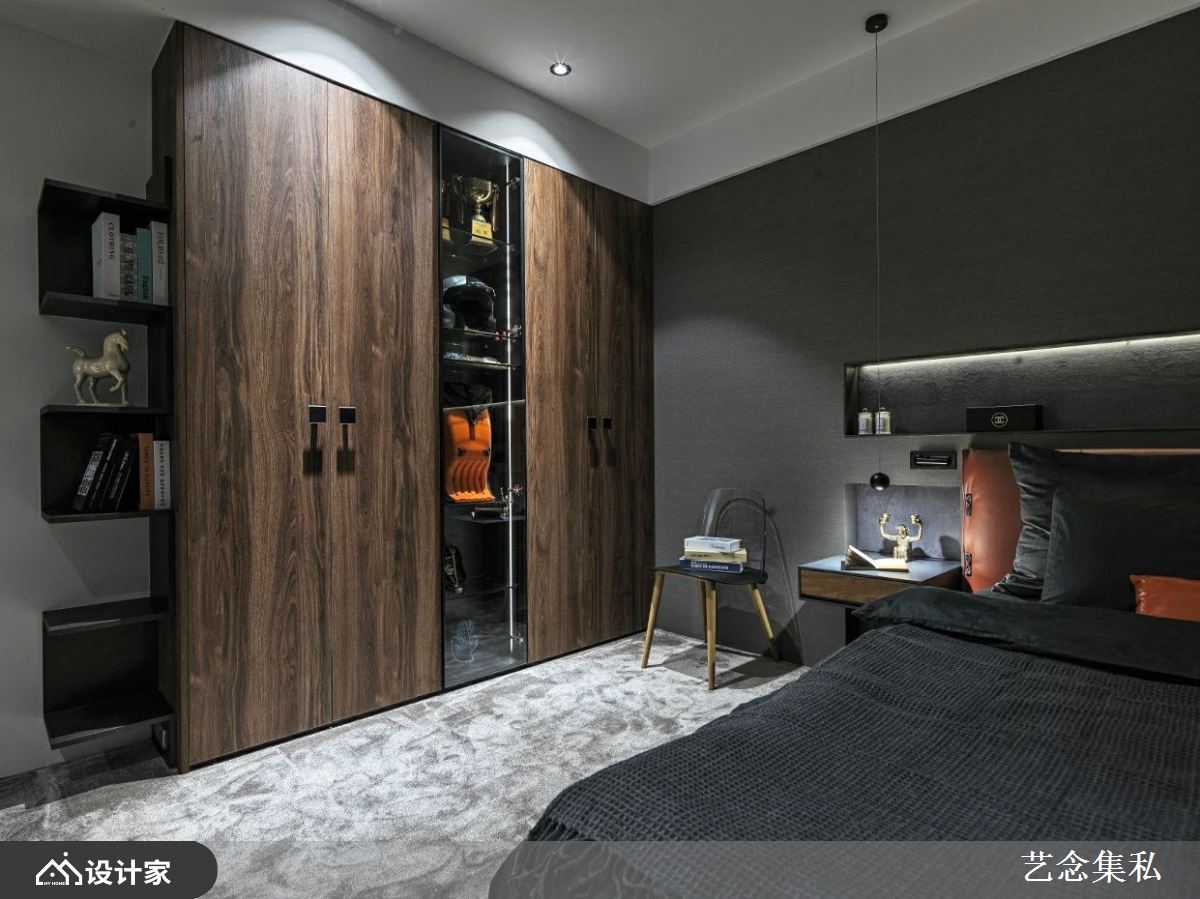 主卧房延续公领域的低彩度配色,再以亮橘做为陪衬,床头间接照明散发幽隐轻缓光源,让舒眠前的沉淀思绪更能进入状态。至于一旁的更衣室则有着绝美的绿意景观,搭配全屋除湿的规划,让高贵的服饰包品或皮革皮件皆能良好保存。其他卧房则以低调语汇辅以木质感搭配出暖润情谊,吊灯的唯美光线酝酿柔美睡前时光。