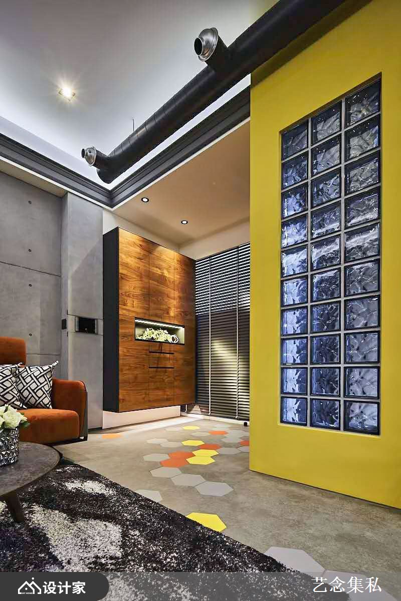 在颜色配置方面,鲜黄除了适合和大地色系做搭配,粉绿、橙橘、灰阶、暖木也能和缓衬托鲜黄的高彩度氛围,例如地面六角砖分别采用黄橘双色,卧房的窗帘也和翠绿菱形格纹墙纸共谱出柔美舒适的家居气息,让空间兼具色彩美学与质感情韵。