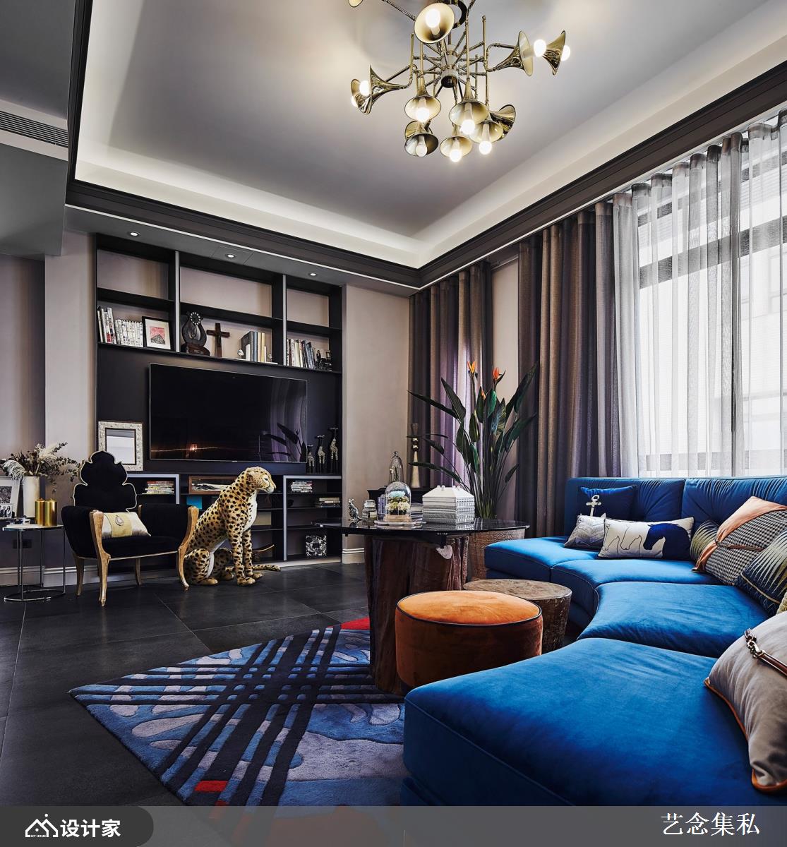 豪宅空间并非只有单一面貌,在豪阔奢华与低调内敛之间,艺念集私设计团队了解色彩之于室内设计的重要性,设计总监张绍华、黄千祝不受限于风格,在大胆尝试与豪宅生活品味之间,总能探索到最佳设计方案,一如客厅的靛紫色沙发,犹如夜幕低垂的天色,总在细腻之处让人惊艳色彩的创意与魅力。
