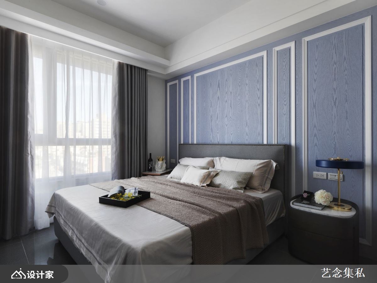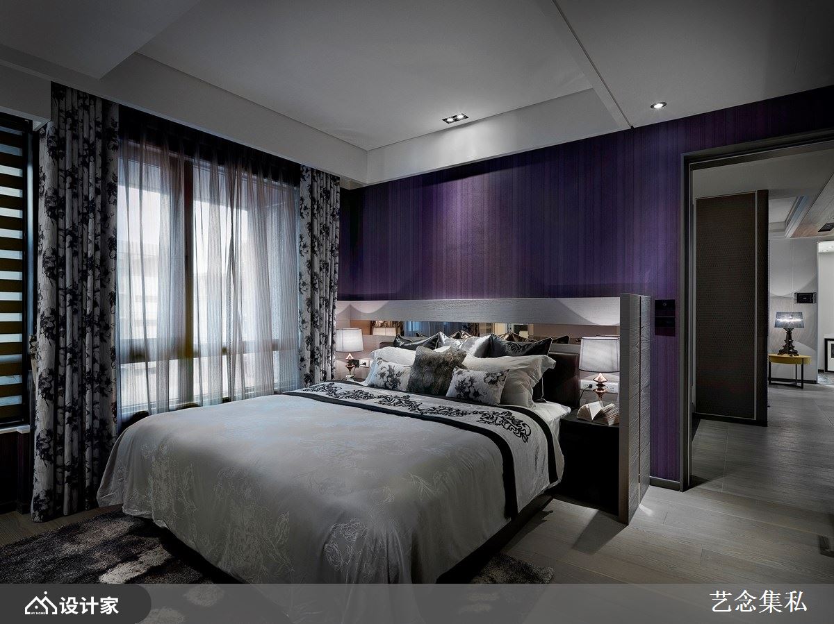 相较于蓝色较为广泛的应用,紫色能跃然于整体空间之中,因此适合作为主色系使用,应用于家居场域的话,一方面可以藉由不同材质衬托出紫色的独特性,二方面也能充分展现雍容典雅的个人风格质韵,像是丝质枕头套、床头绷布、双色拼接窗帘等。由于紫色自有其独特丰采,因此在色彩配置上,适合相同色阶营造同色系的视觉协调感,以浅色的丁香、藕色、荷色,能巧搭较为深调的黛紫、灰紫色调等。